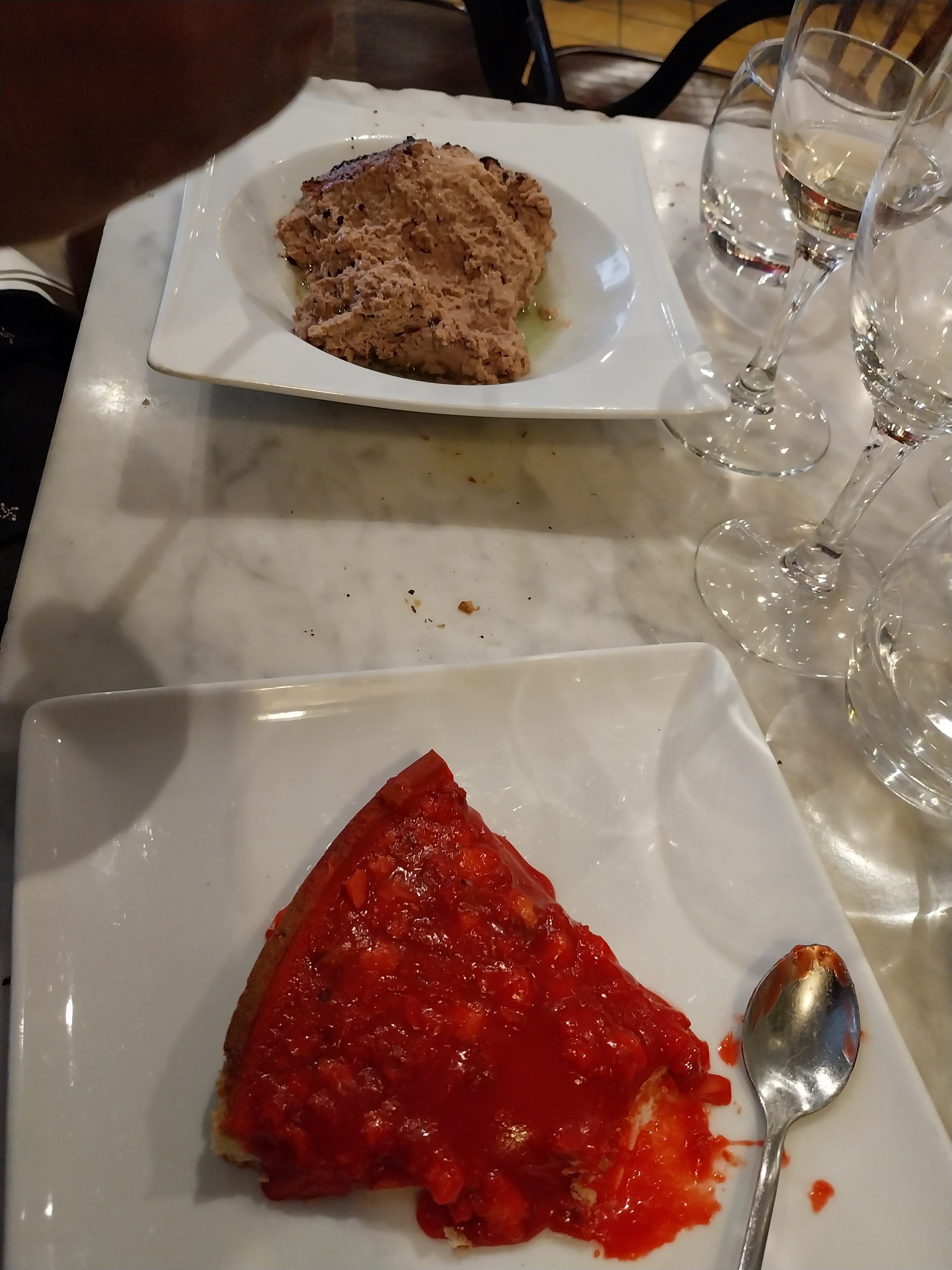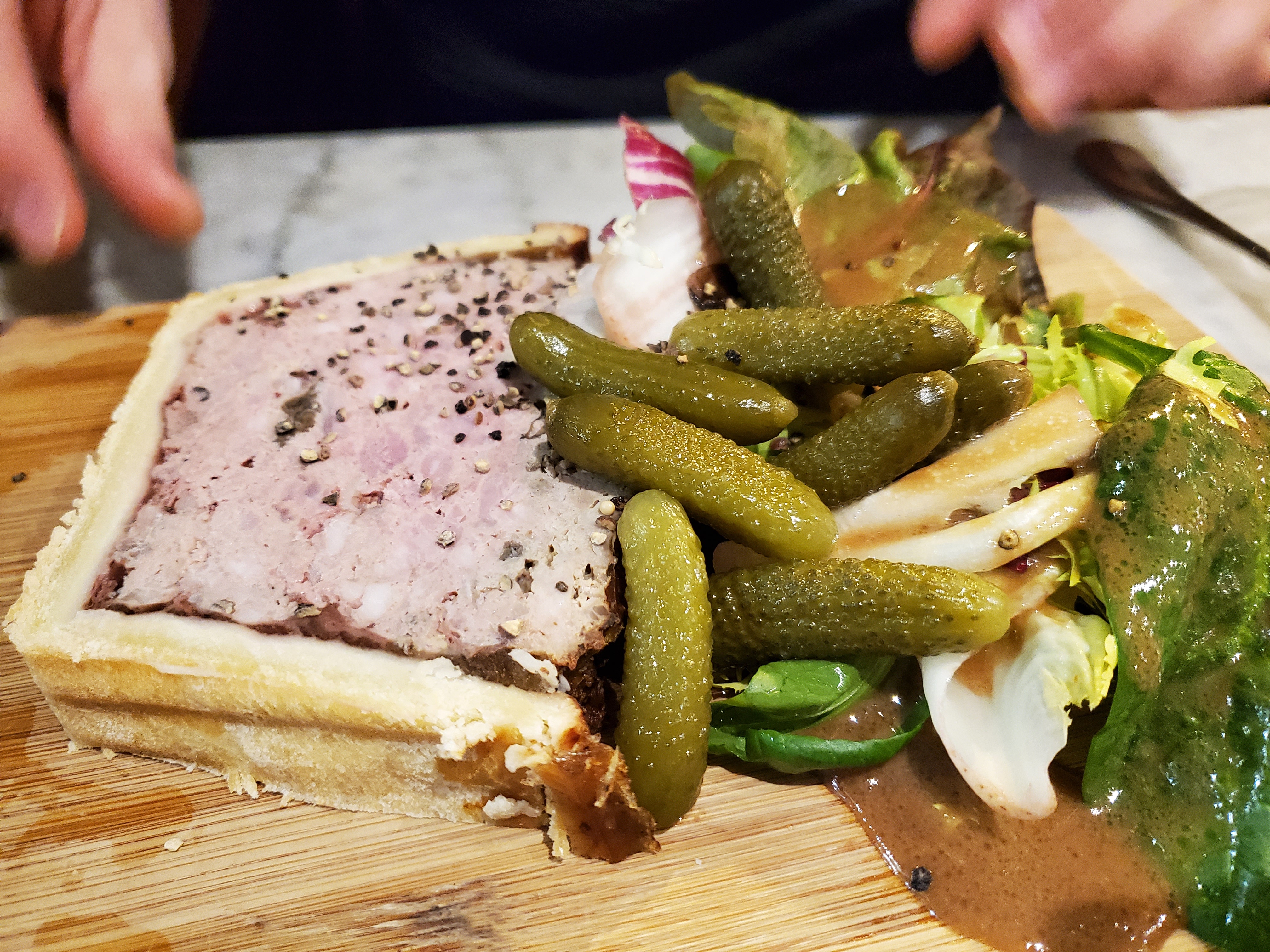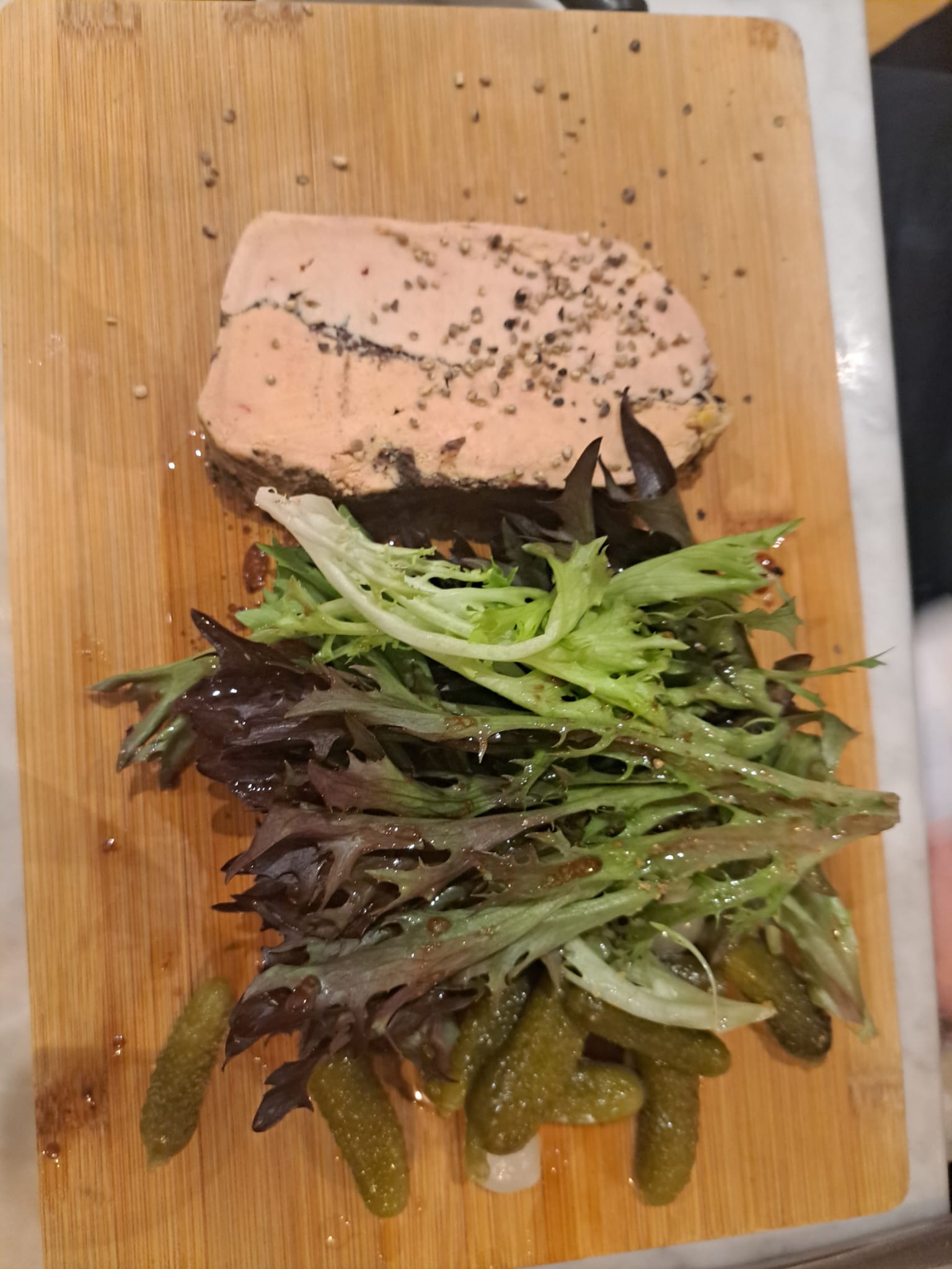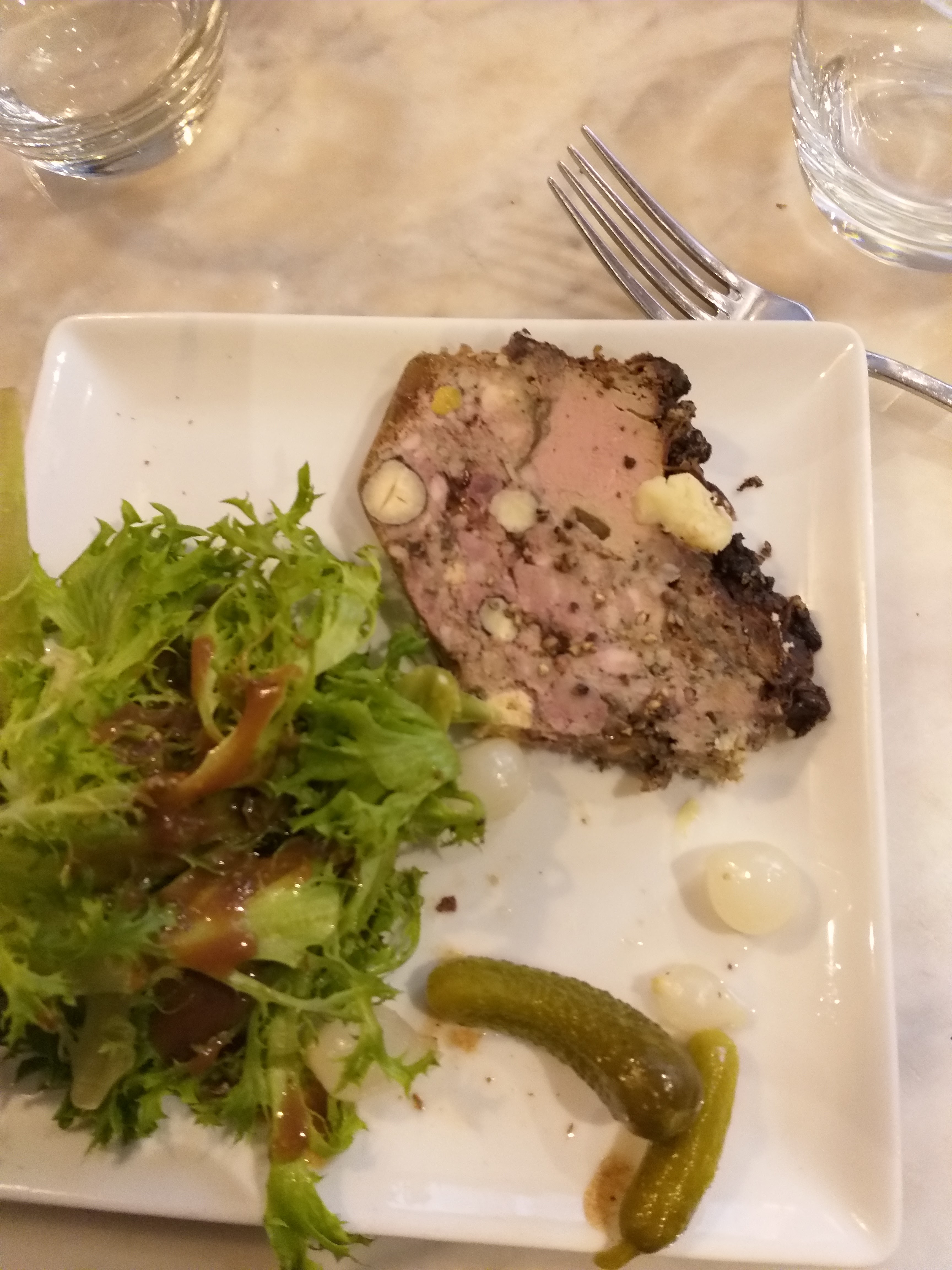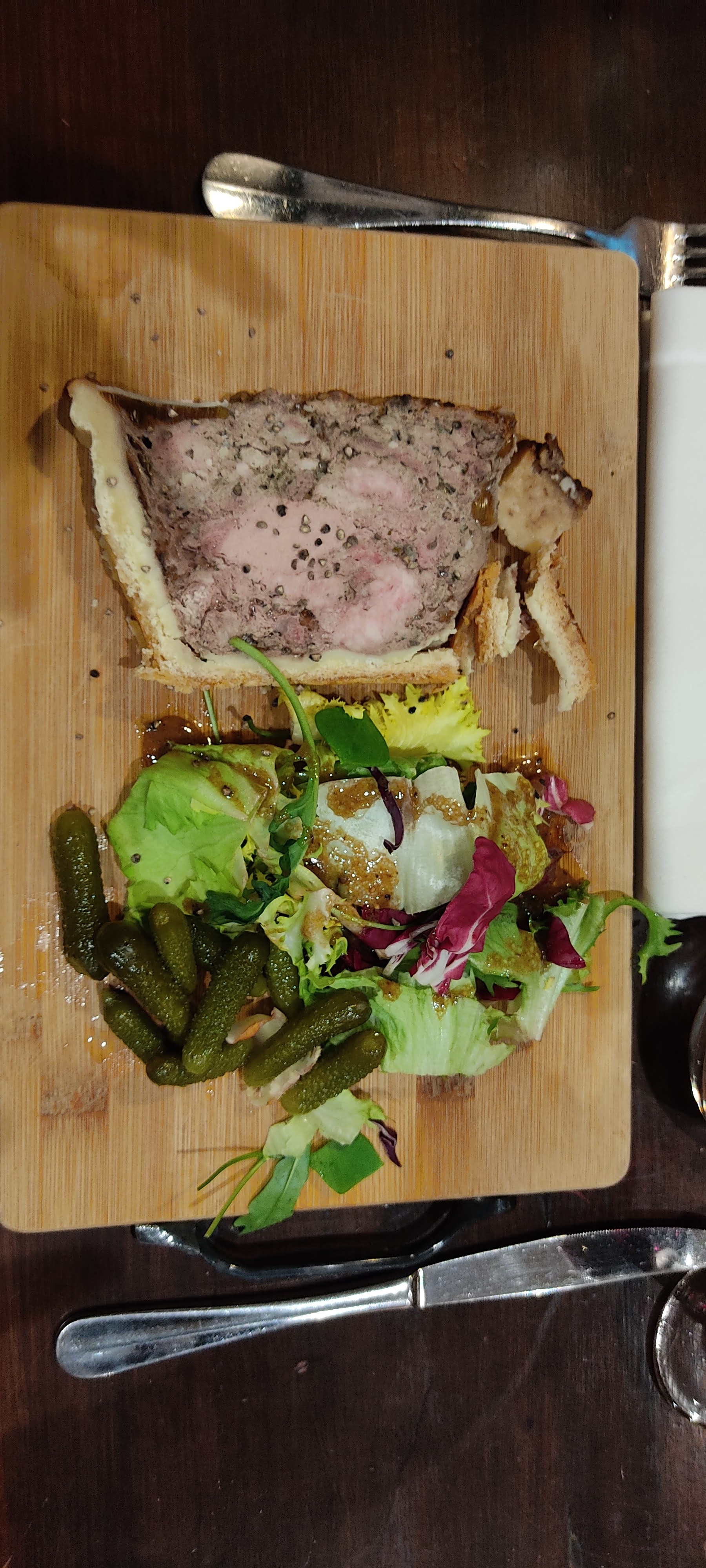 Nous n’avons pas apprécié que l’on nous impose de prendre 2 plats (une entrée ne suffisait pas, du jamais vu) et ainsi qu’une remarque inappropriée parce que nous avions un végétarien, un peu limite ! L’accueil n’était pas bienveillant mais Dieu merci la patronne s’est détendue petit à petit.. Un peu dommage …. Le pâté croûte était très bon
