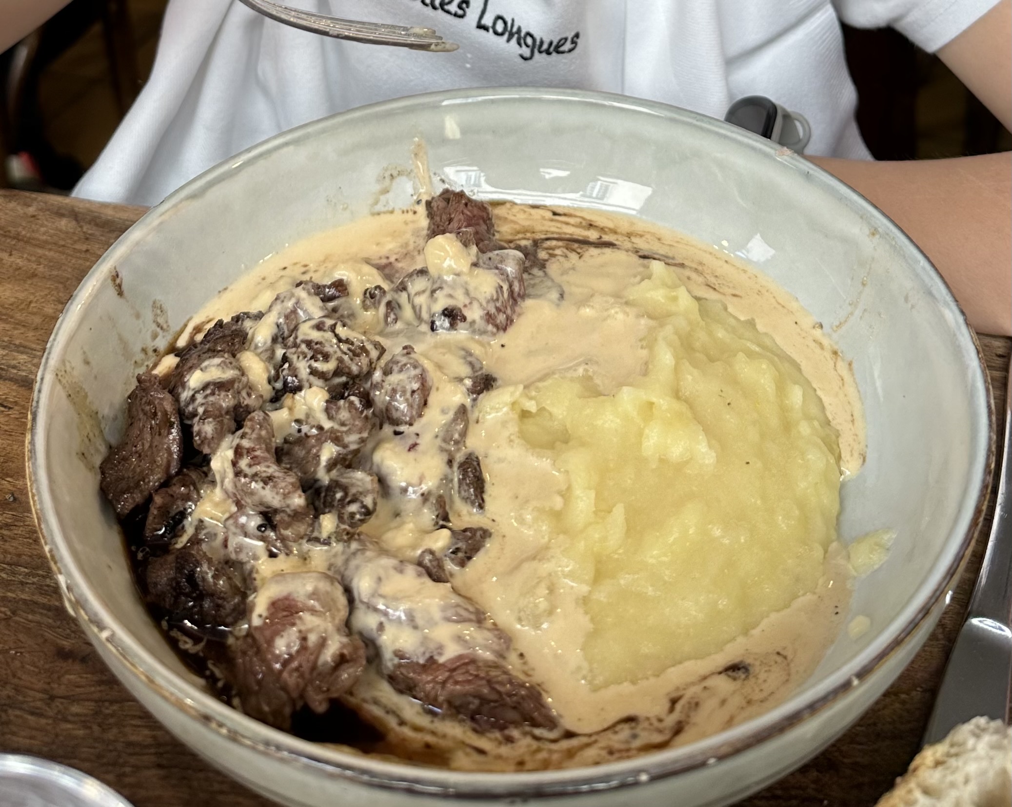 Le bouchon Lyonnais hors des sentiers battus (au delà des salades de miuseau et tabliers de sapeurs)... mais avec la même générosité ! Bien sûr, il y a le menu à 23€ qui est parfait , mais aujourd'hui, on a opté pour les ris de veau et rognons au Morille en plat ... NE PREVOYEZ PAS D'ENTRÉE ;-) ! parce que non seulement c'est super bon, mais en plus c'est vraiment généreux, et copieux, avec une montagne de morilles... le rêve! Allez)-y en gourmand affamé,ici on est là pour prendre du plaisir !