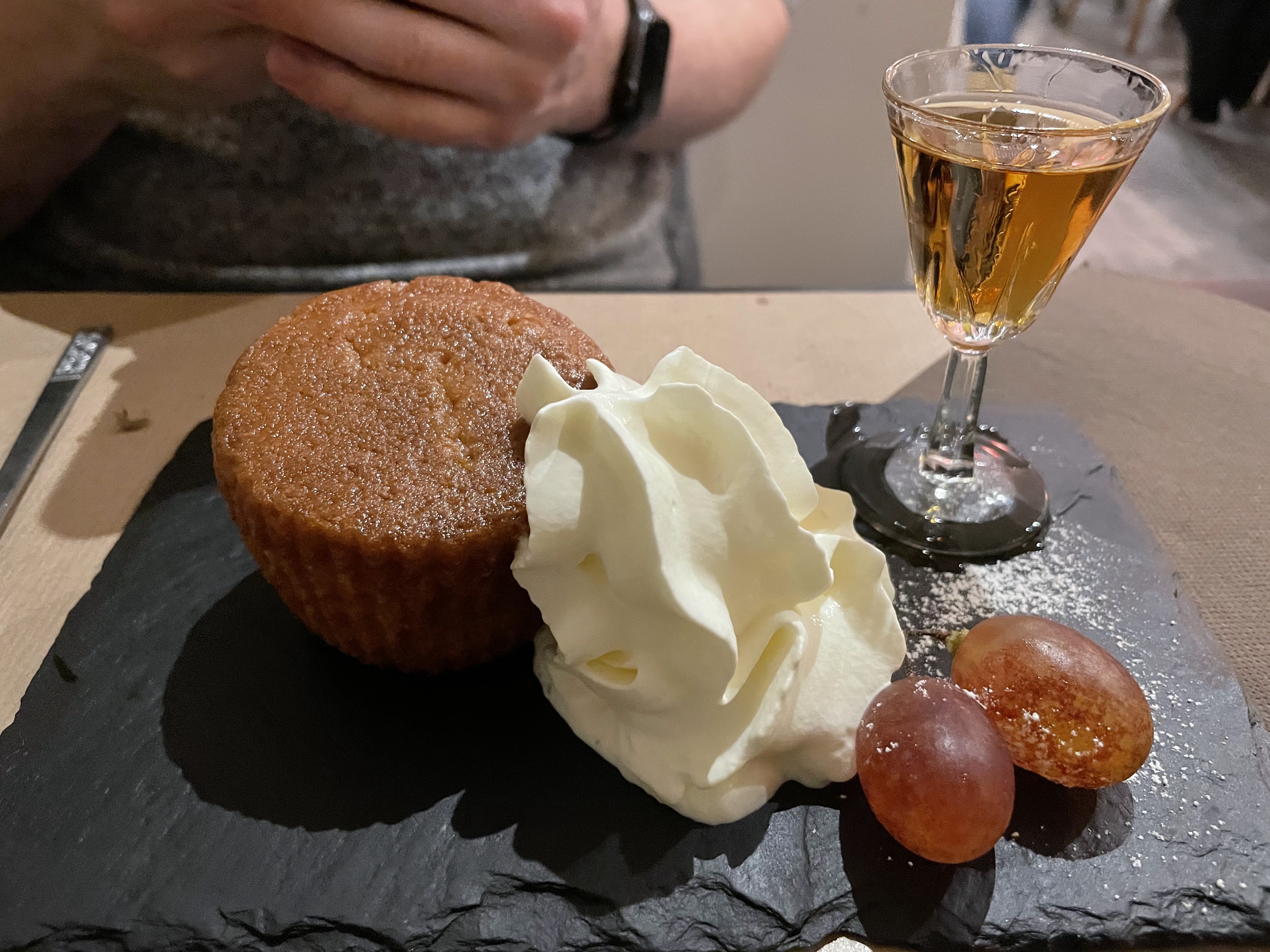 Vraiment l’un des meilleurs repas que j’ai eu en France. Il s'agissait d'une grillade maison de thon et d'espadon d'une fraîcheur spectaculaire, suivie d'une meringue parfaite avec une généreuse cuillerée de pâté aux marrons. Le gin tonic du bar voisin était primé.