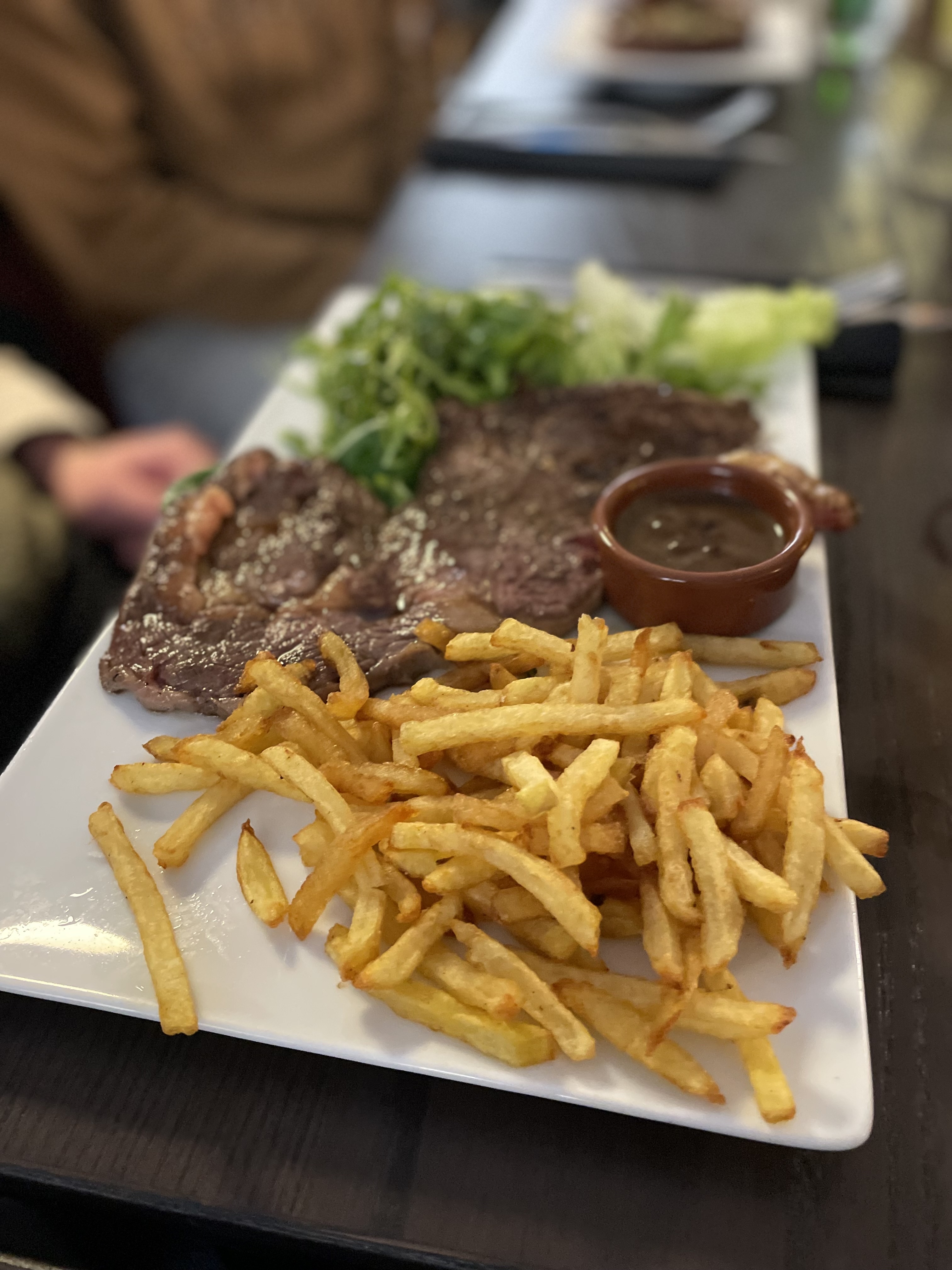 Très bon rapport qualité prix. Le poisson très bien cuisiné. La viande de qualité. Très bonnes frites. Moins fan sur les desserts.