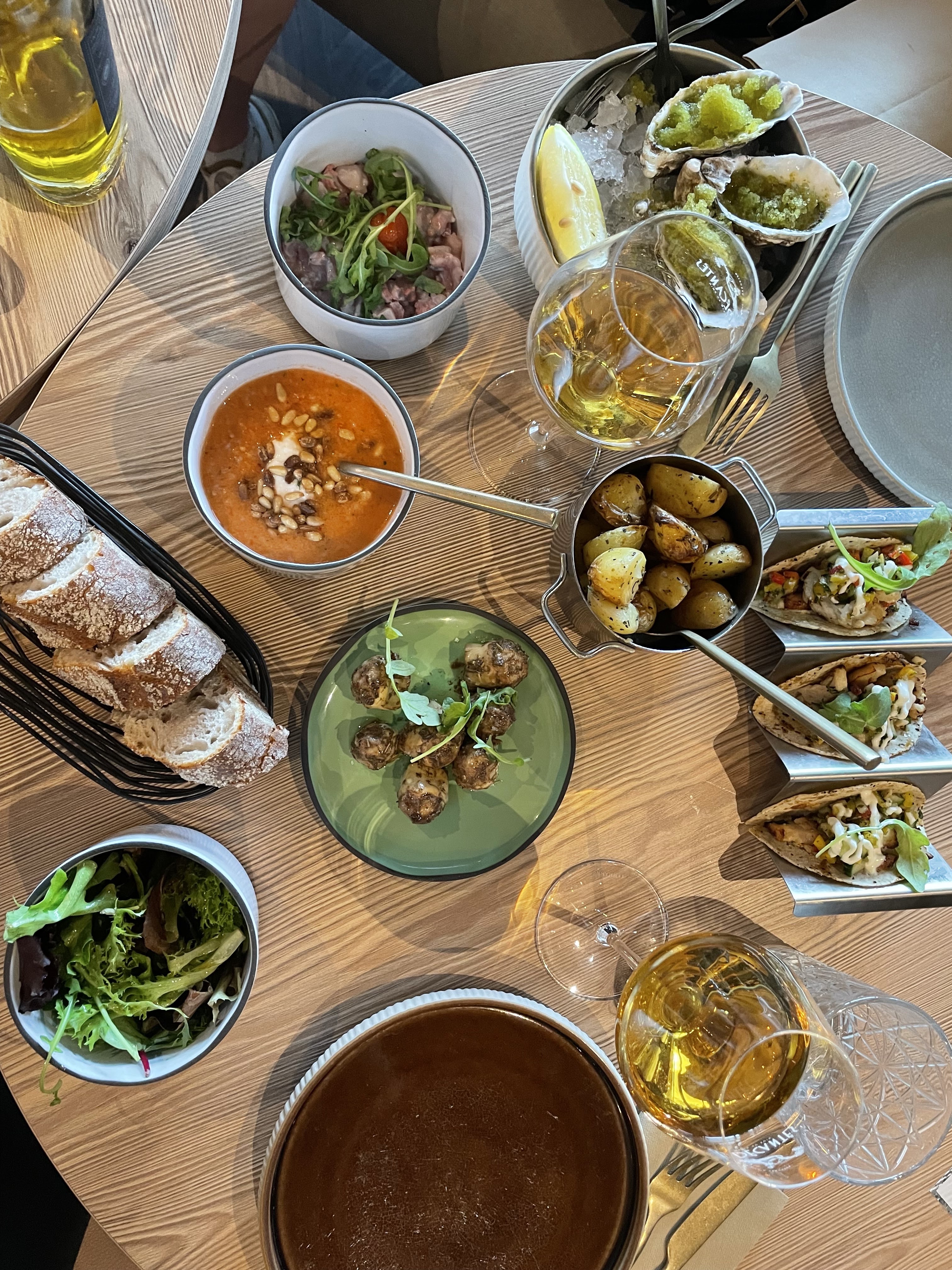 Joli lieu, bonnes tapas ! Parcontre 2 points négatifs : - les tables sont trop près les unes des autres, j’avais l’impression de dîner avec mes voisins. - Le service, j’ai eu l’impression d’être pousser à partir pour un éventuel 2e service plusieurs fois pendant le repas et après pour commander le dessert alors qu’il y avait plein de tables de libre et je n’ai pas vu le second service arriver… la personne était très jeune peut être seulement une maladresse.