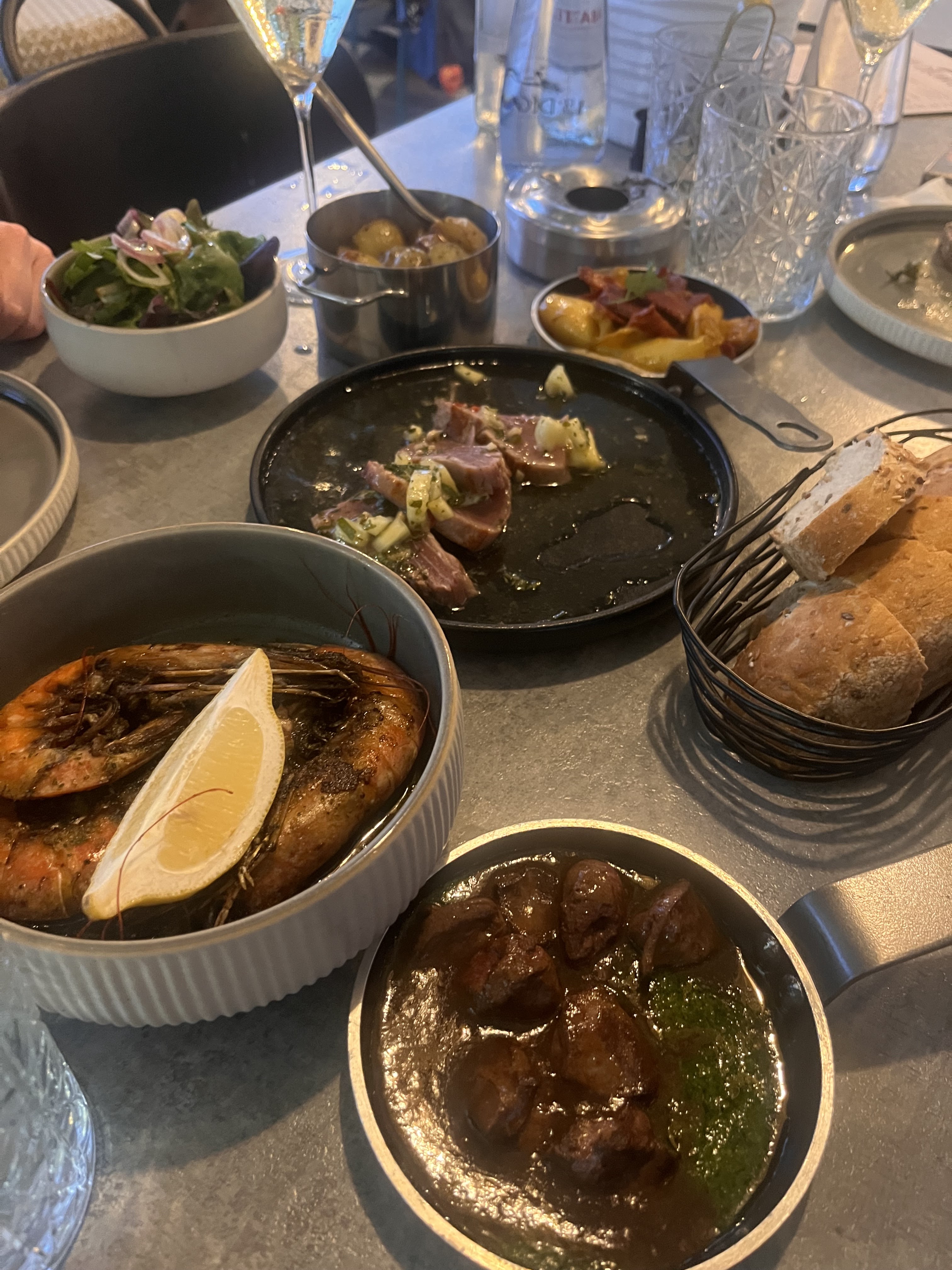 Nous avons passé un excellent dîner, essayé un tas de tapas/petits plats et ils étaient tous super ! Le service était efficace et sympathique, avec une excellente carte des vins.