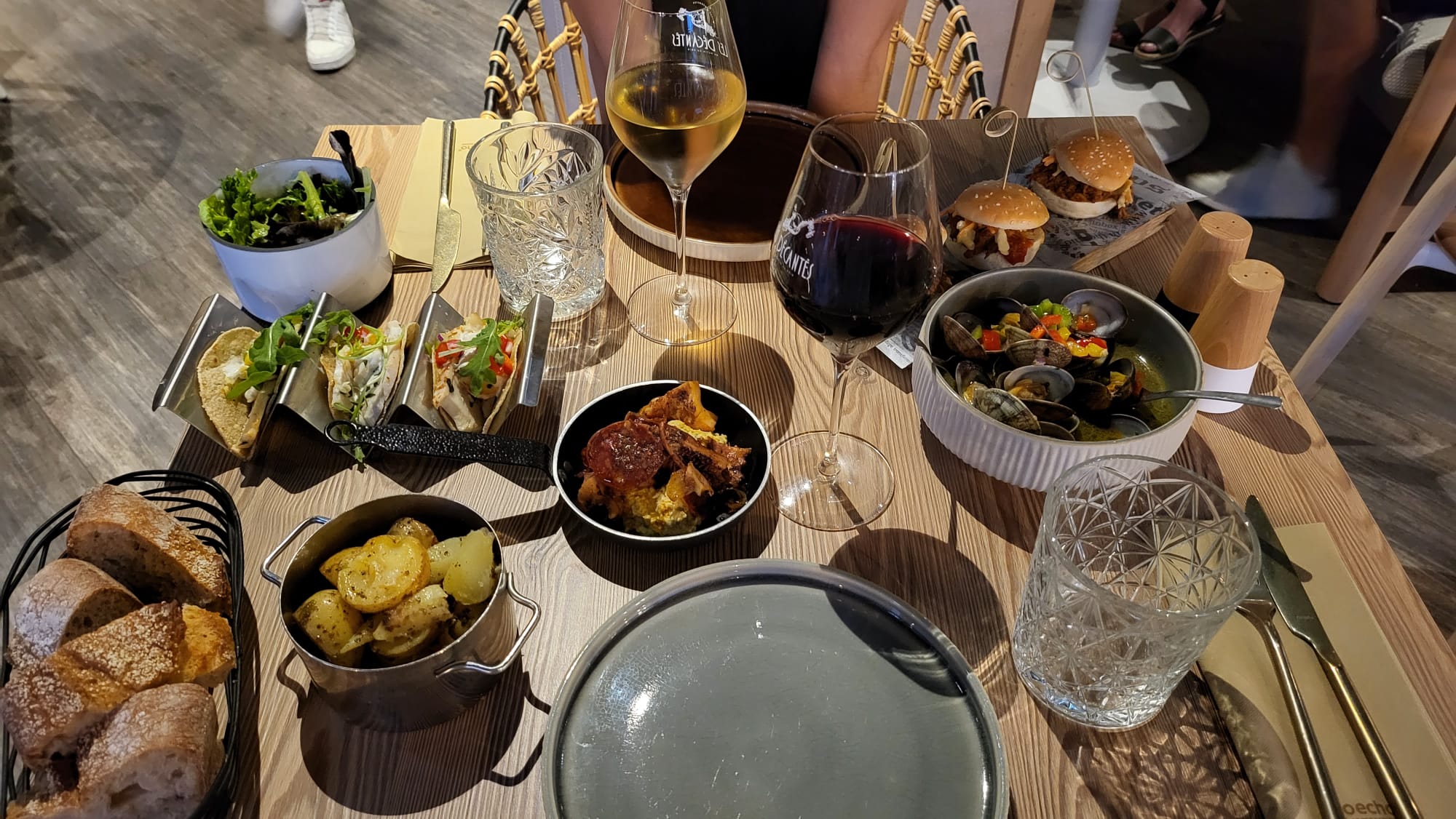 Une dernière soirée avant confinement au top chez Les Décantés ! Concept de plats à partager très convivial, tout est très bon et le personnel est aux petits soins. Et en prime une dégustation offerte de Grands Vins de Bordeaux très appréciable. Je recommande sans hésiter !