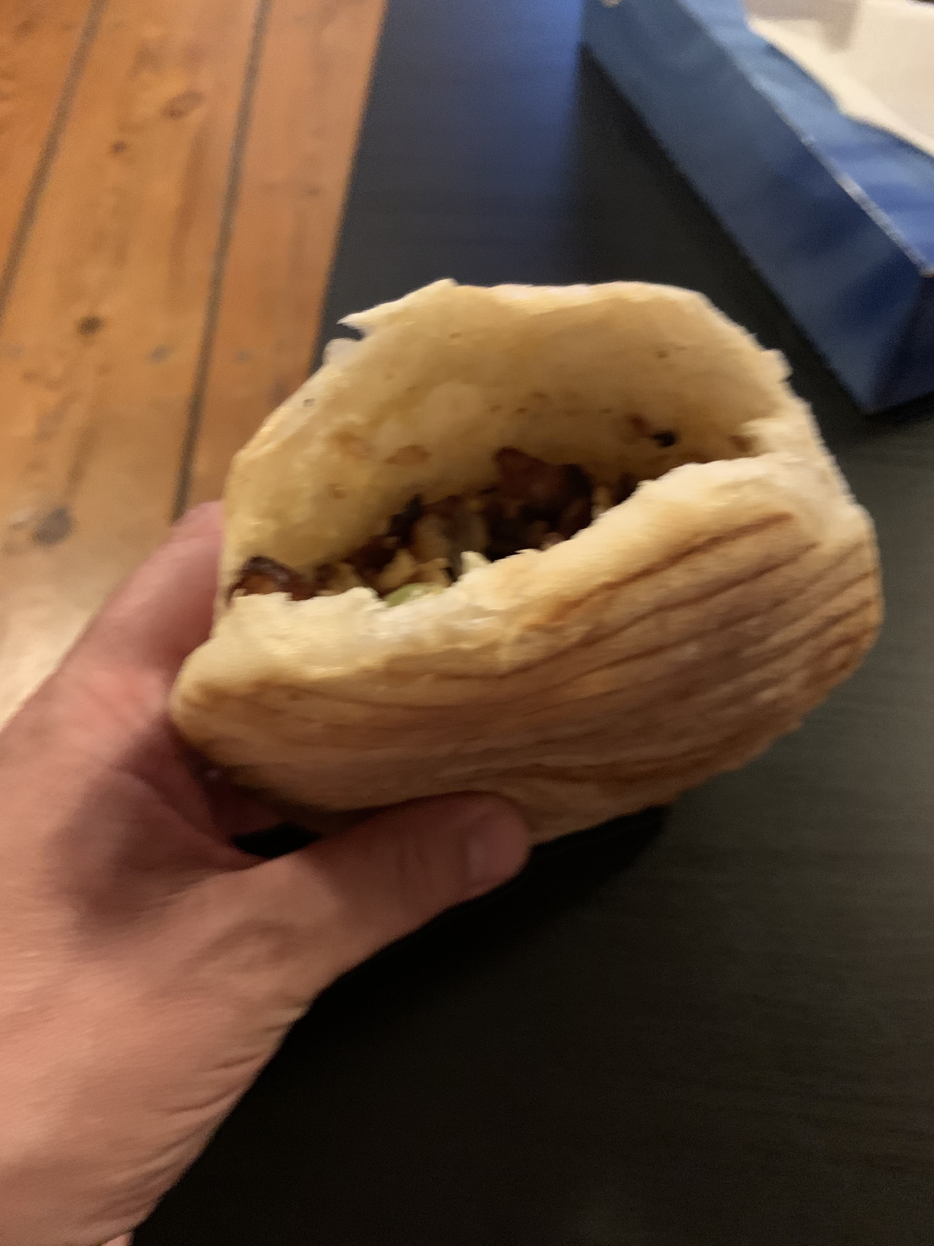 On m'a demandé les sauces mais y'en a pas, de même pour les frites, inexistantes. Le tacos le plus anémique de toute ma life.
