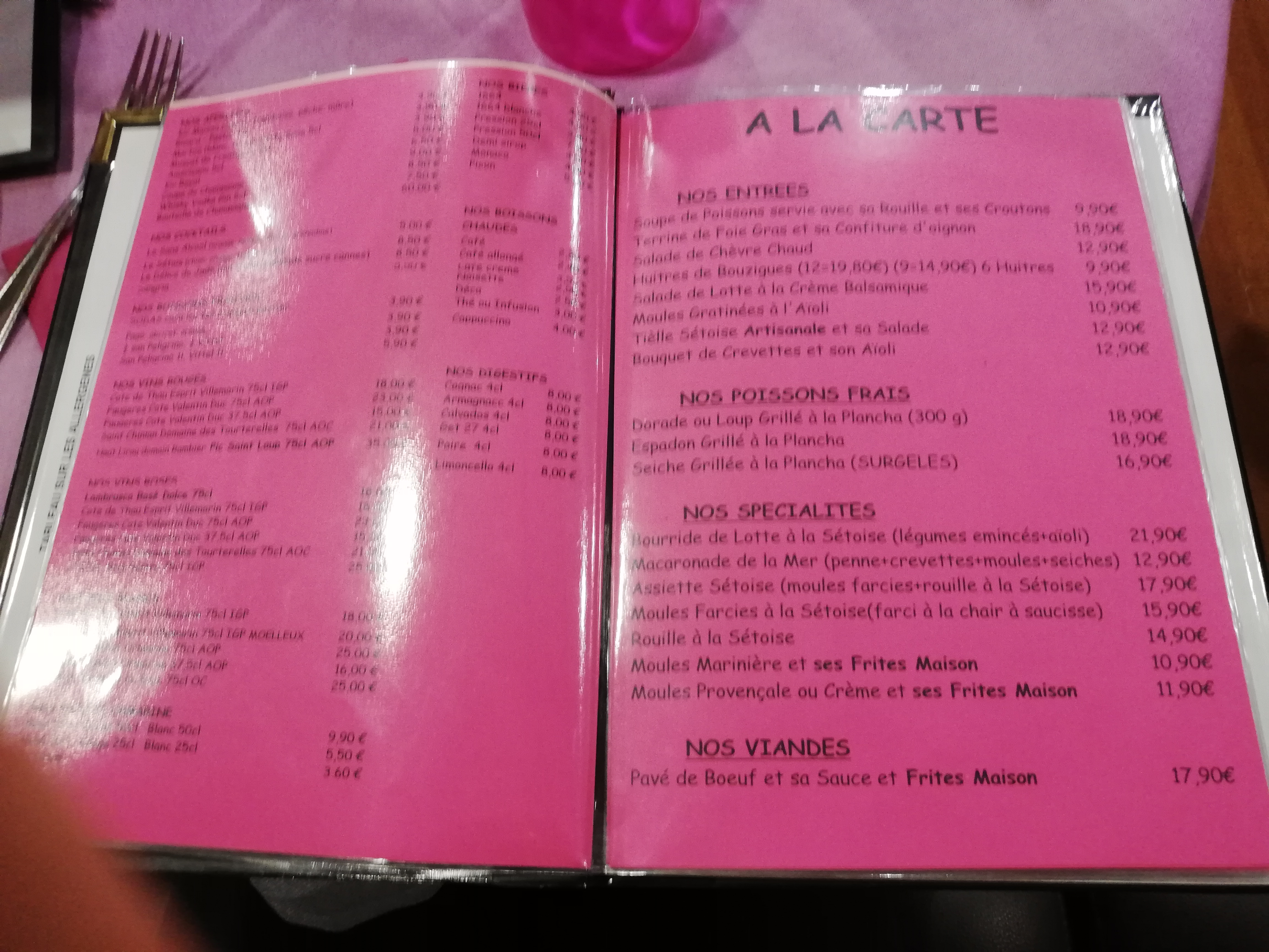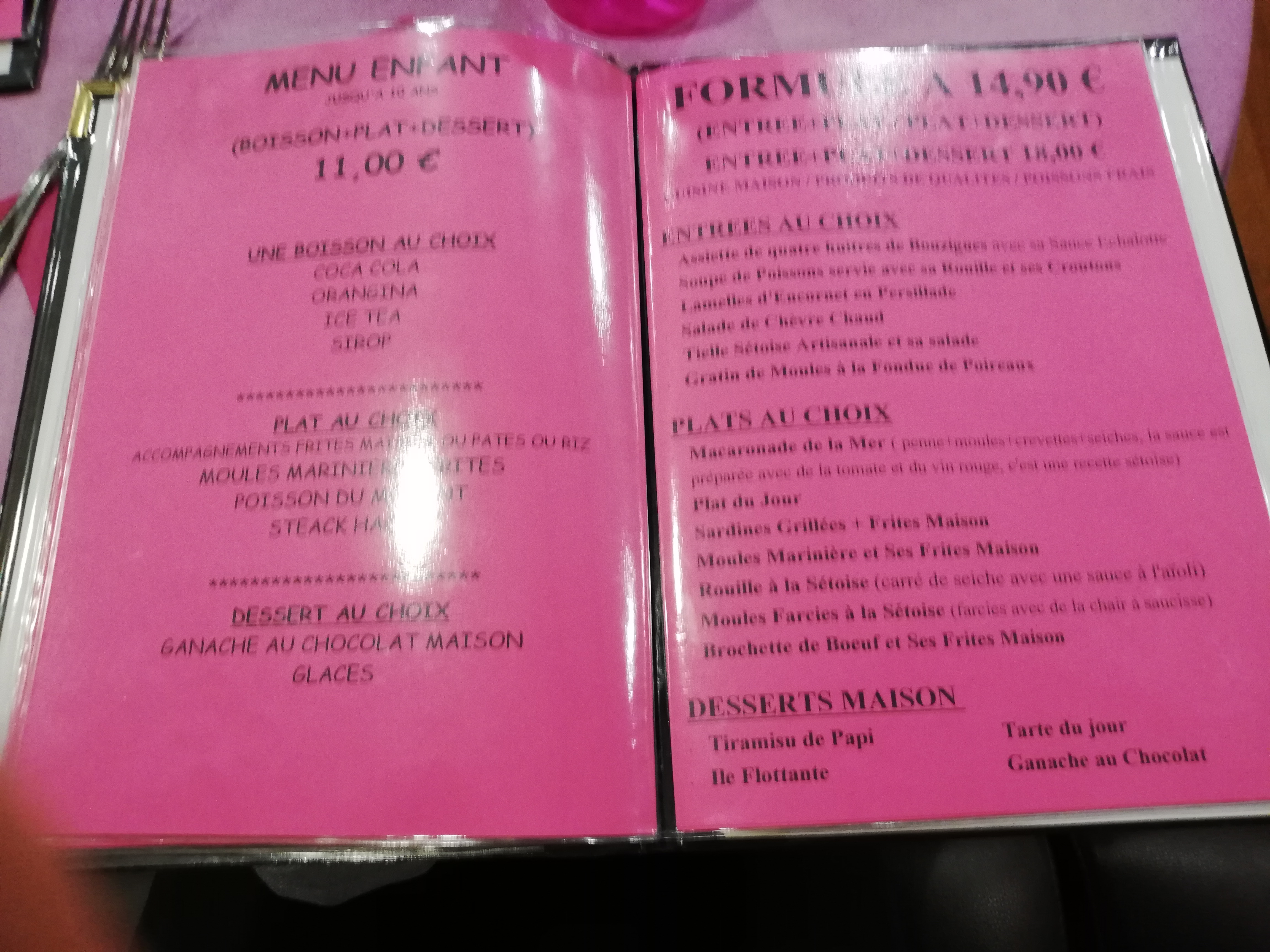 Super accueil...petite carte donc bon signe produit frais plats maison et quelques spécialités setoise avec un super rapport qualité prix dont un menu à 15e90....