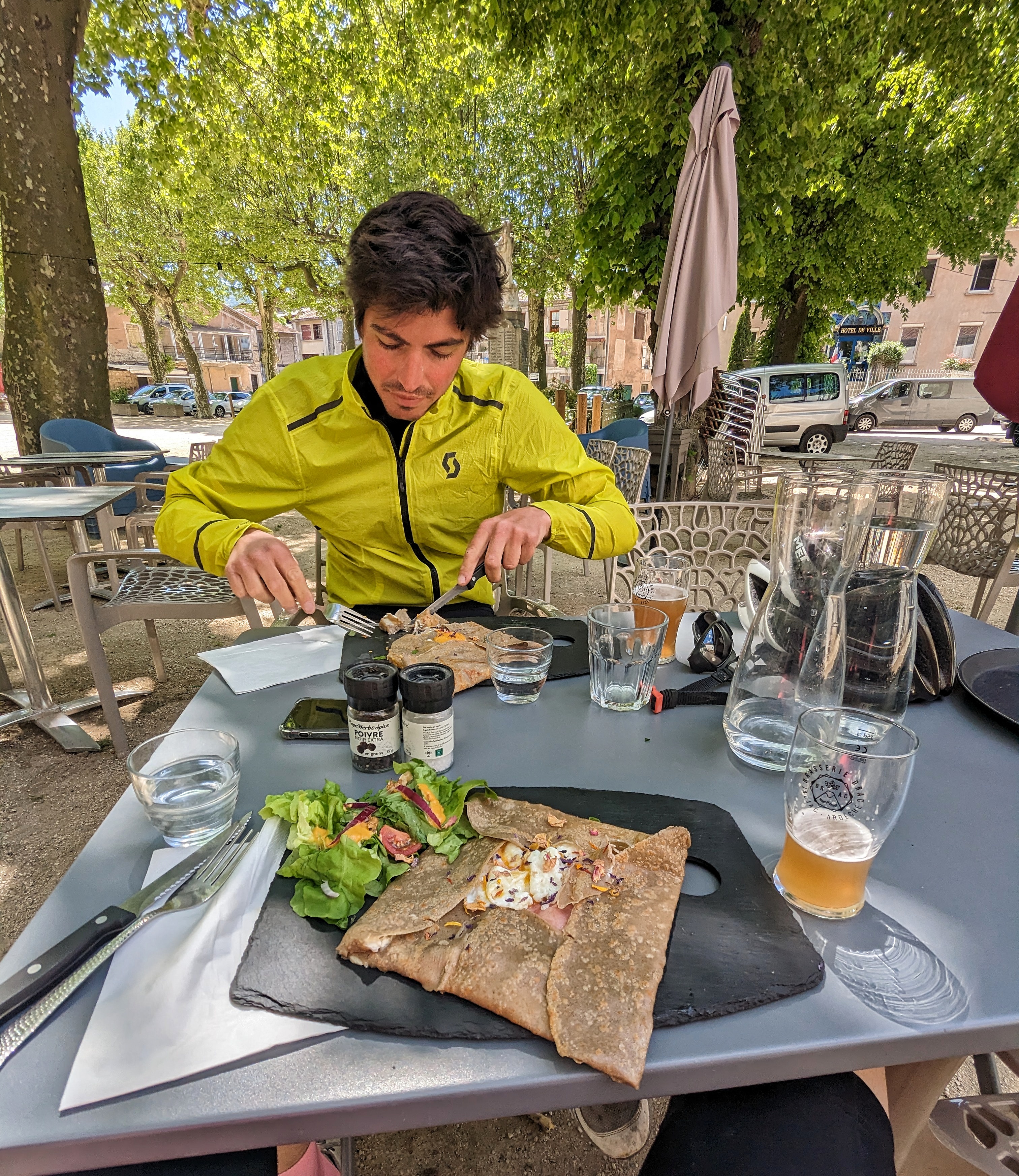 Déception totale. Salade pourrie servie avec la crêpe. Remarque à la serveuse qui me reprends mon assiette et change la salade et me ramène ma crêpe plus très chaude du coup. Même pas du vrai fromage de chèvre !!! La crêpe de mon compagnon trop salée !! Le patron ne s'excuse même pas. Je déconseille. Mangez ailleurs sur Jaujac,les concurrents sont excellents