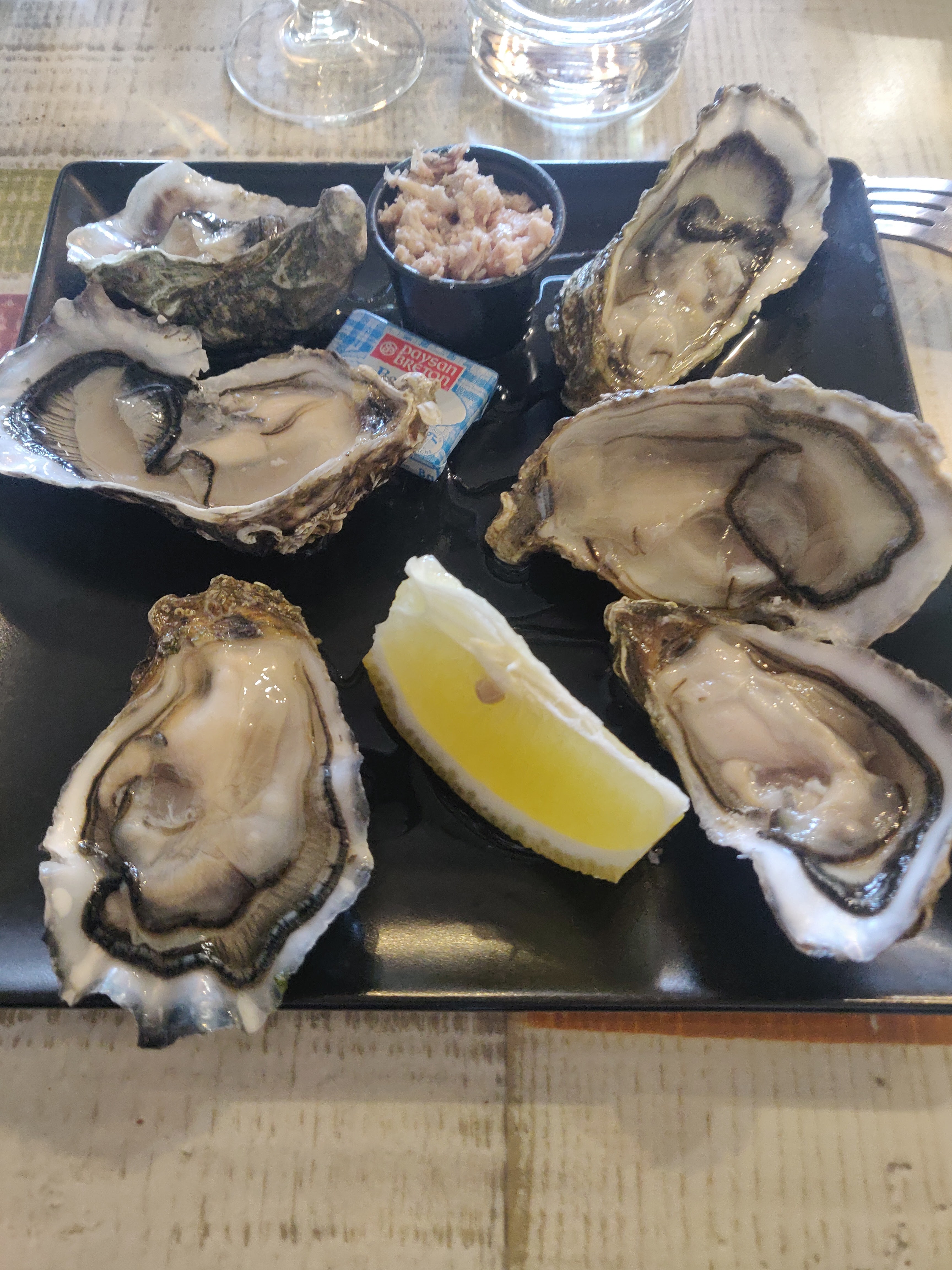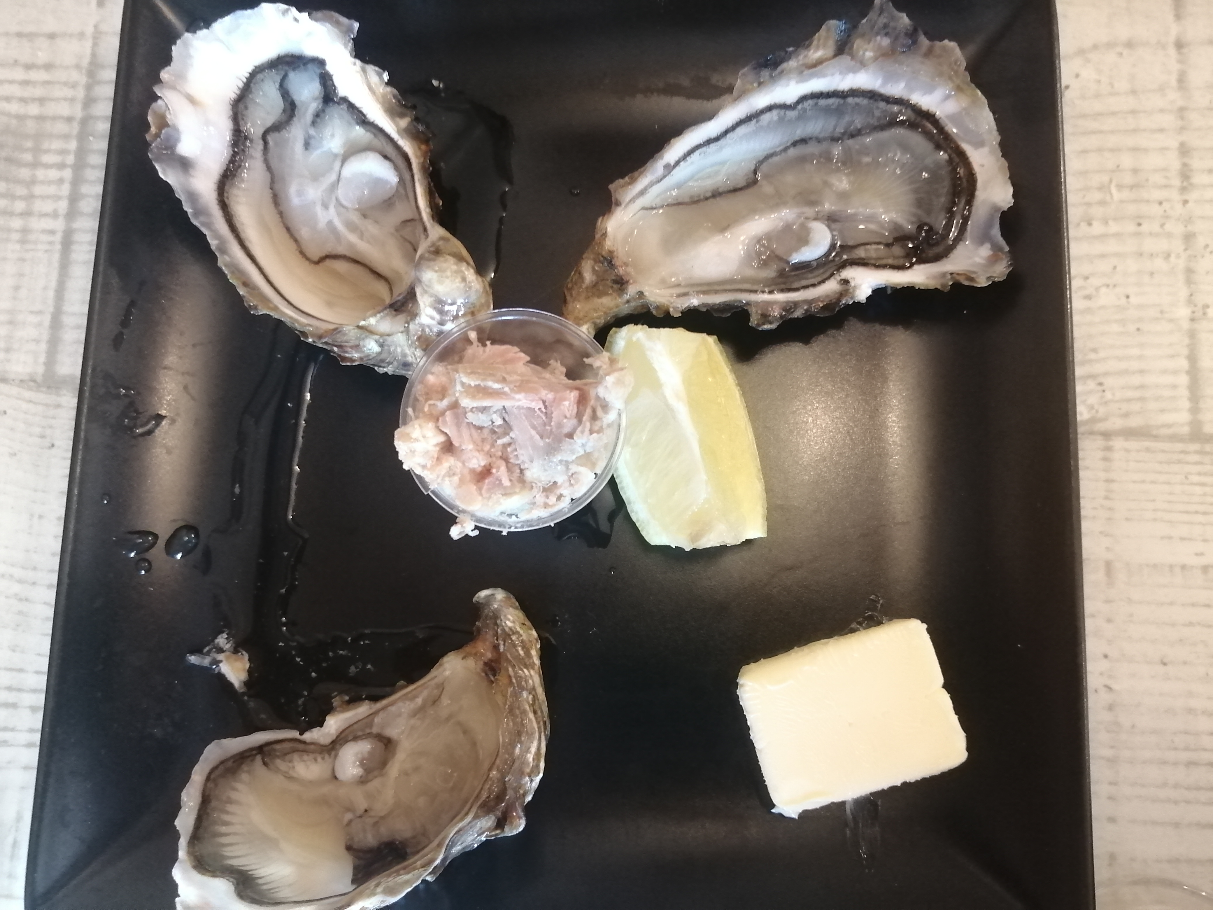 Dégustation d'huîtres 💞 et gaufre à la farine de riz et à la maïzena un régal ☕🥂🍽️🍷 lieu à conseiller++ pour l'accueil et la sympathie 😃😊
