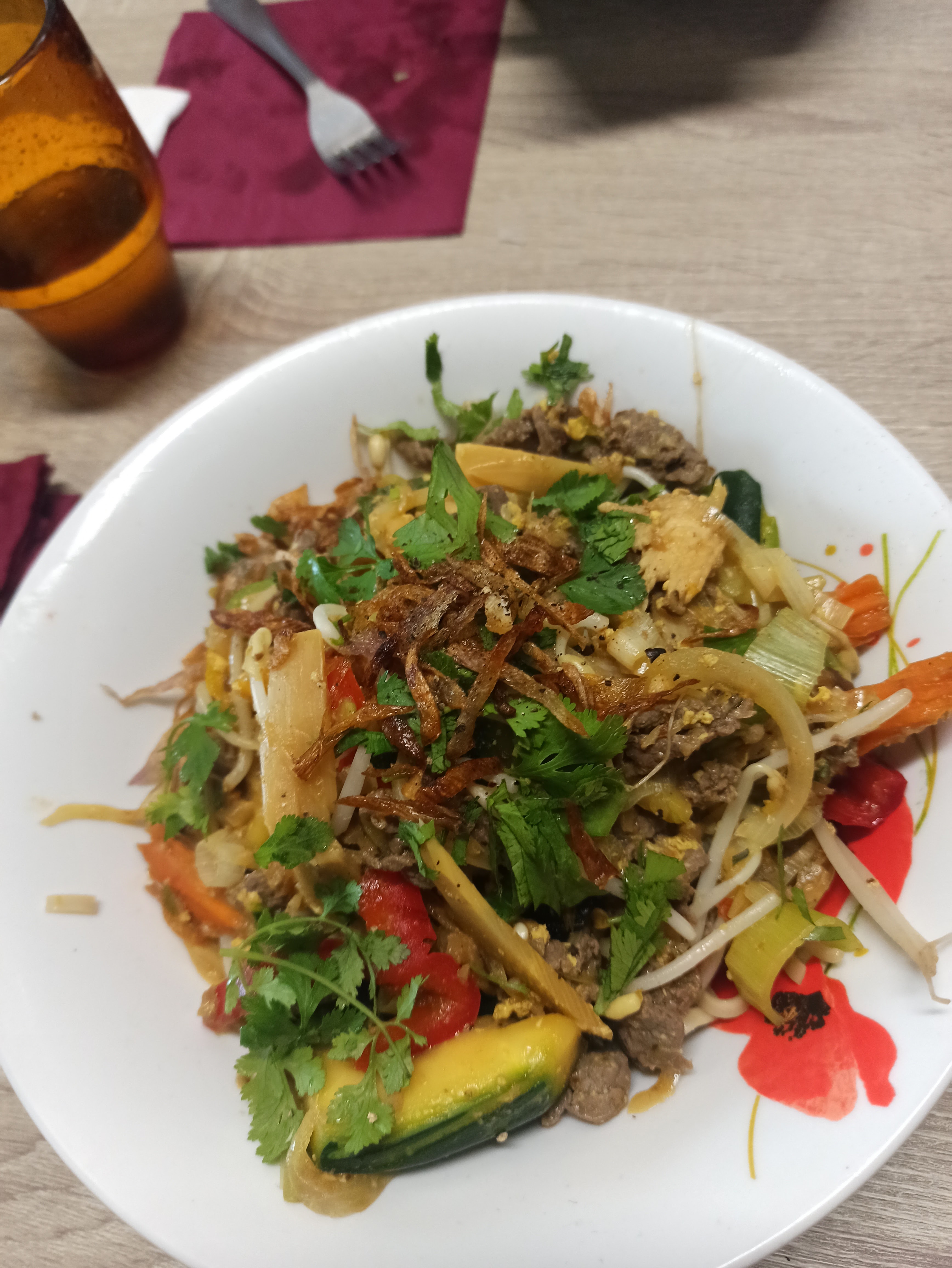 Tout était excellent : nous avons pris en entrée pleins de choses à partager comme des rouleaux de printemps et des samoussas aux boeufs puis un bo-bun poulet, un bo-bun boeuf, un bo-bun crevette et des nouilles thaï aux boeufs. Je recommande ! Avec les boissons, nous en avons eu pour 78 € pour 4 personnes ! Les prix sont vraiment raisonnables !