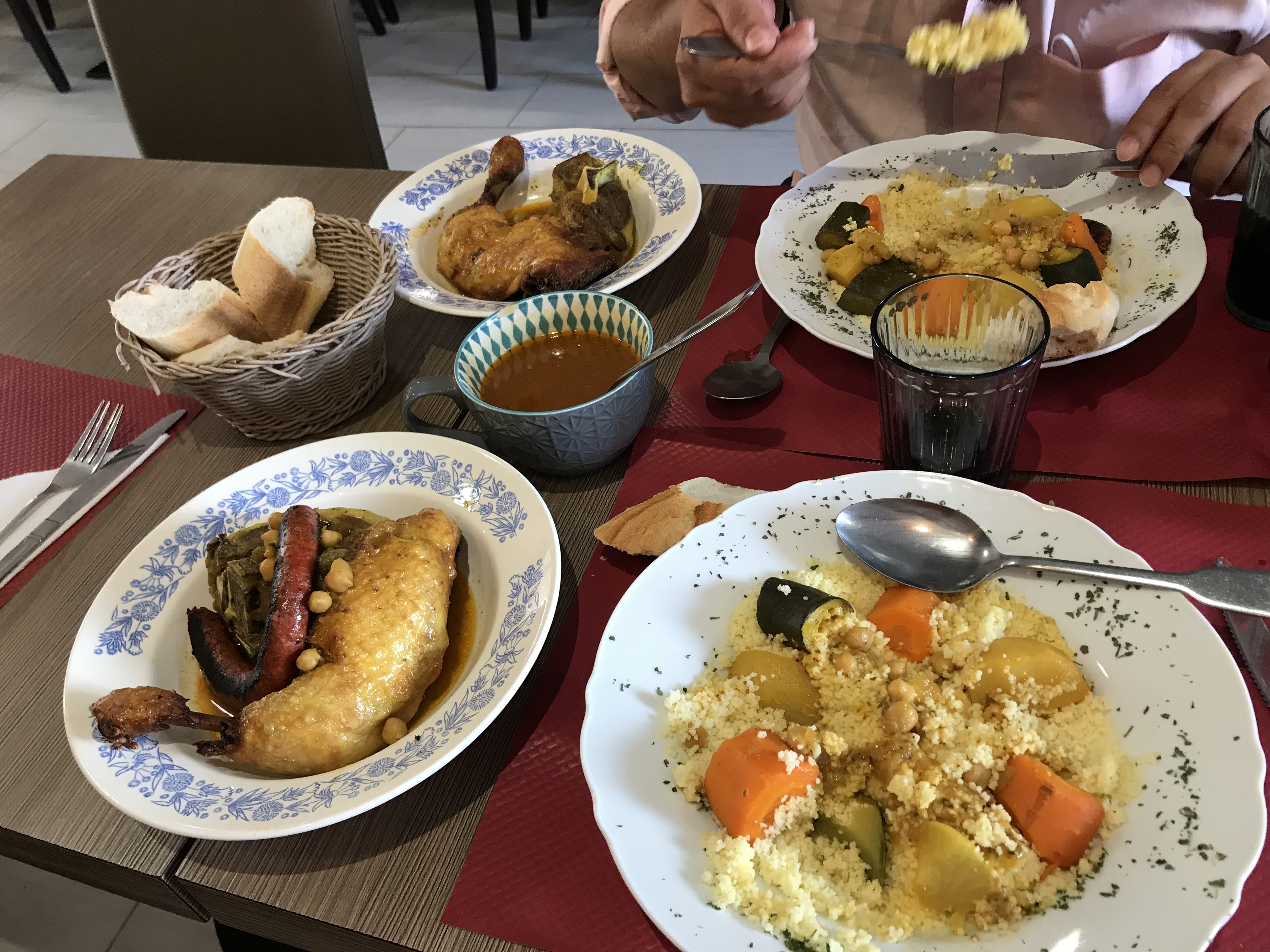 Après une salade, fait maison j'y ai savouré un délicieux couscous et un délicieux thé a la menthe. J'y mange parfois lorsque je suis dans la région, c'est un restaurant chaleureux, sans fioritures ! Viandes ou poissons, les produits proposés à la cuisson sont en vitrine réfrigérée. Je vous le recommande !