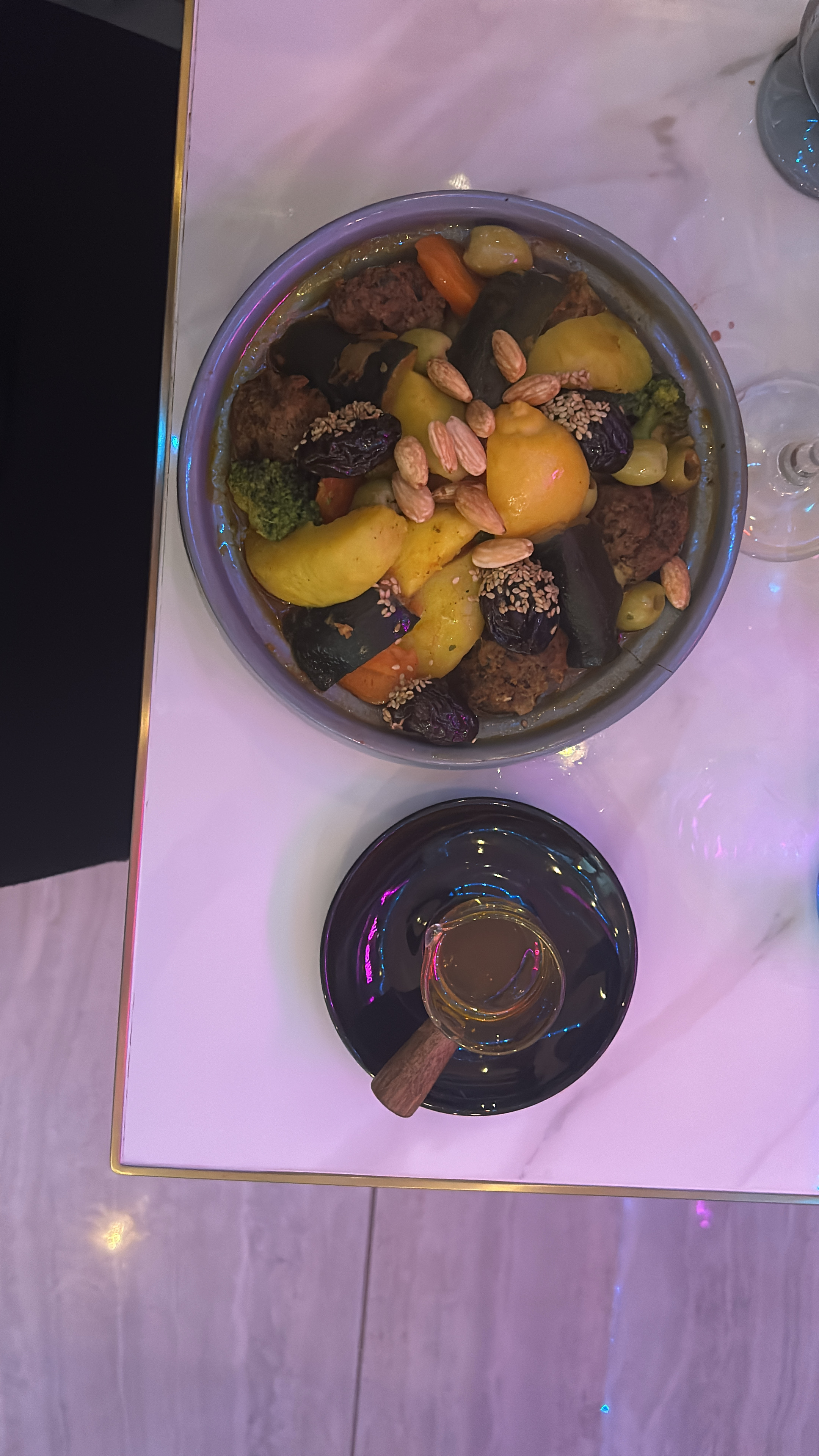 Après 2 repas je suis conquis -tajin prune séchée d’agneau + soupe marocaine -couscous L’accueil est trés chaleureux et la décoration est superbe. Je recommande les yeux fermés À bientôt pour découvrir de nouveau plat de votre carte
