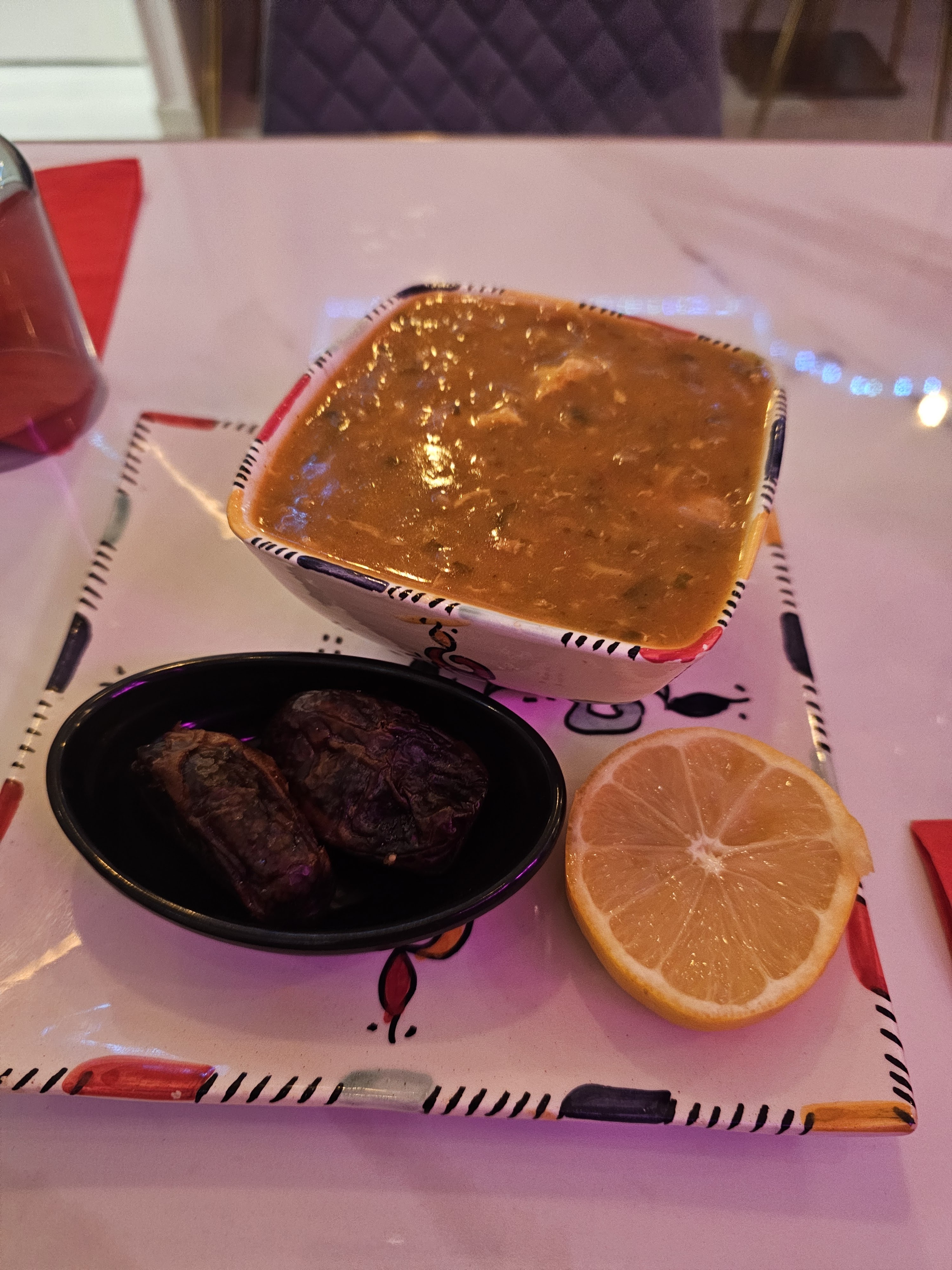 Vous pouvez y aller les yeux fermés ! A la recherche de restaurants qui font de la cuisine authentique du Maroc, j'étais de passage devant ce nouveau restaurant proche de chez moi. Curieuse de connaître la composition de la carte, je suis rentré et j'ai été accueillie chaleureusement par la gérante qui m'a gentiment proposé une dégustation de hrira avec chebakia. La soupe (ma préférée), est riche et très gouteuse. Elle est servie avec dates, citron et une chebakia (gâteau enrobé de miel et de graines de sésame) qui est très bonne et qui vient directement du pays. La décoration vous fait sentir comme au pays !!! 😍🤩😍🤩 C'est sûre je reviendrai avec mes proches