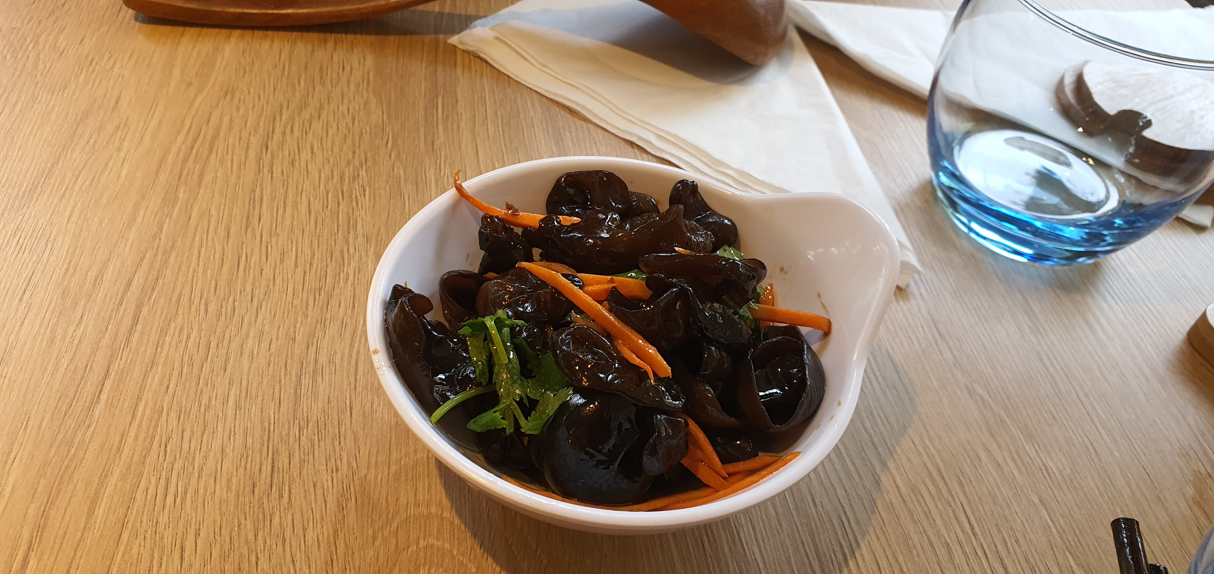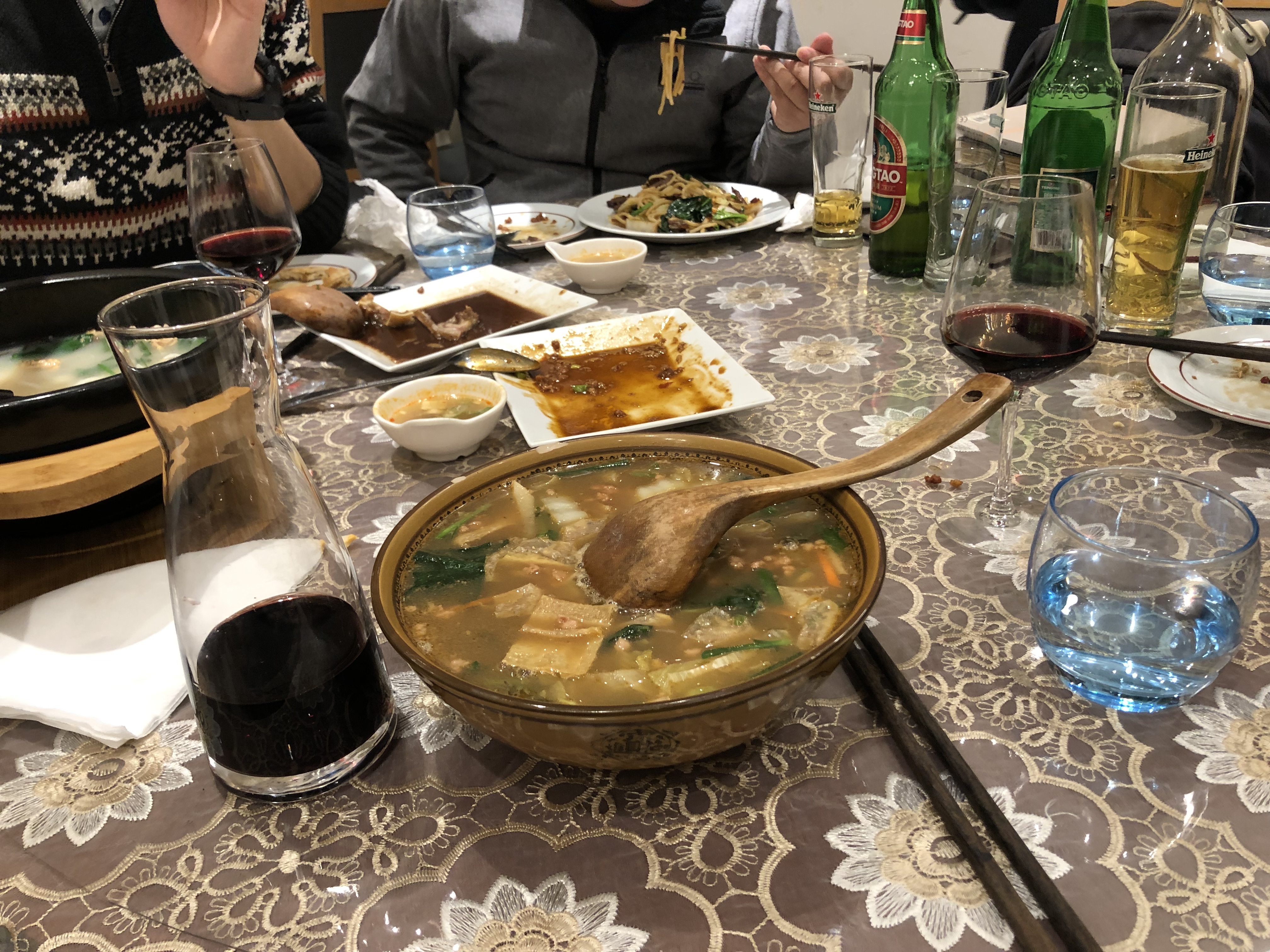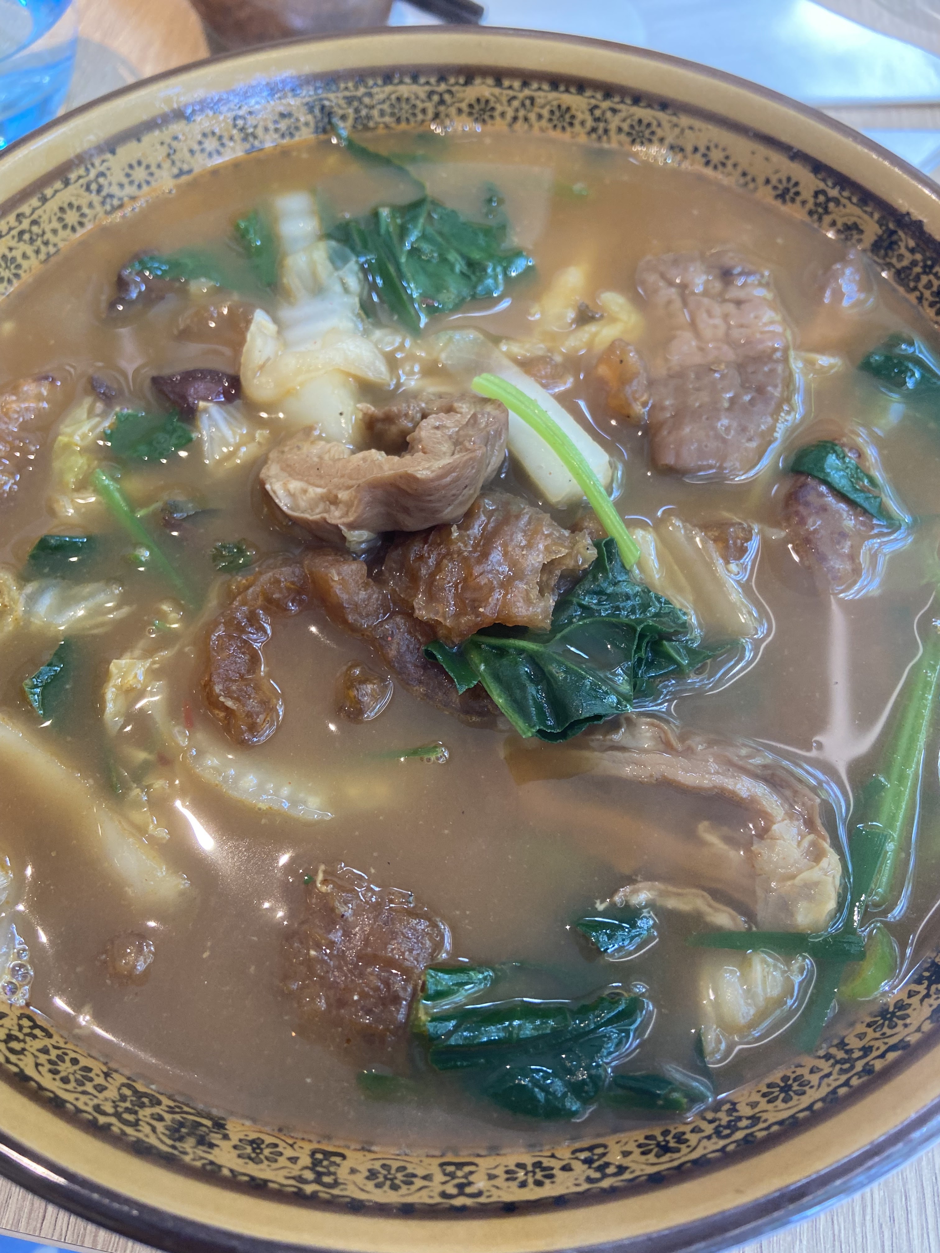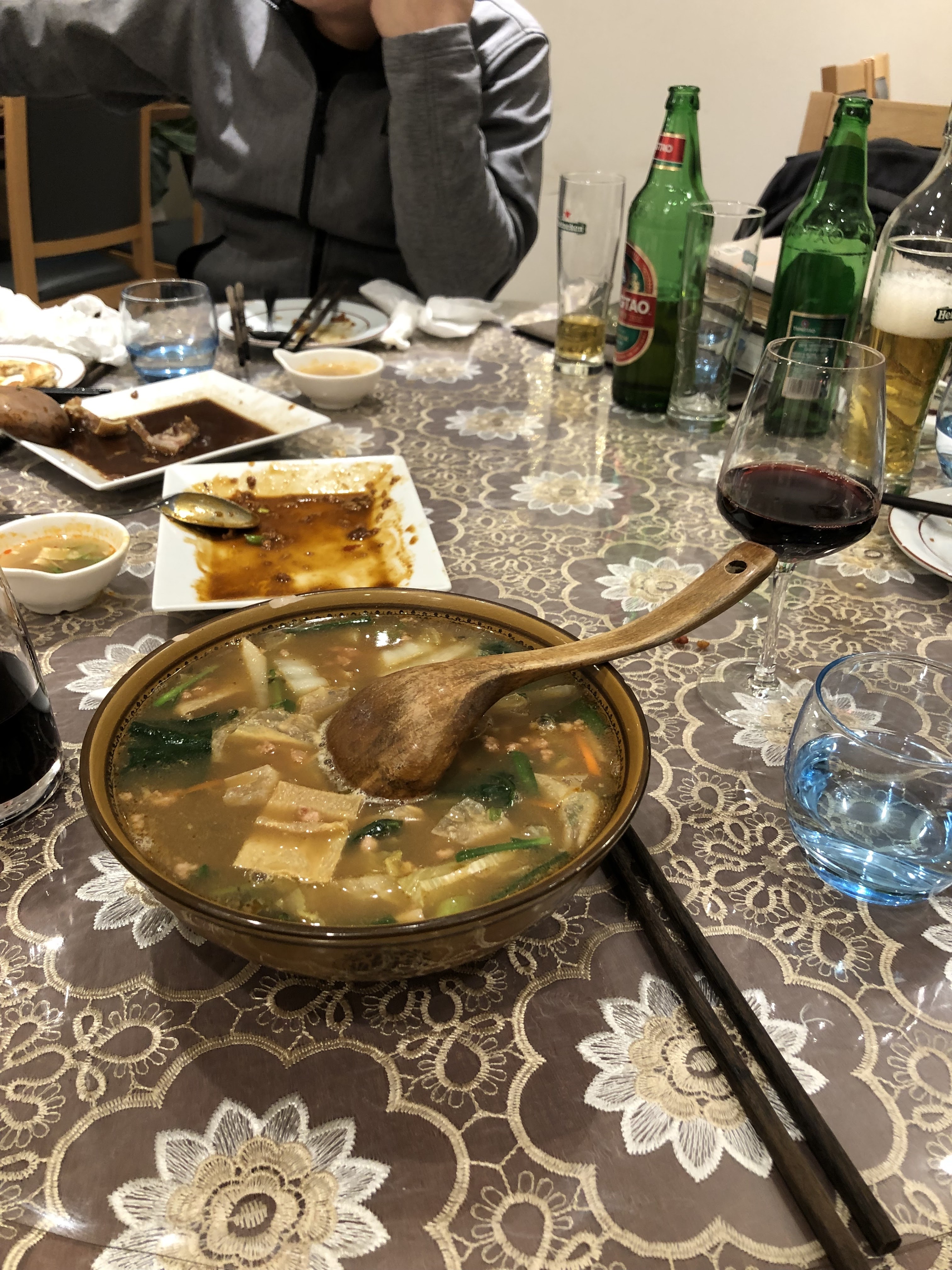 je suis allée avec des gens de la Chine qui ont manqué la cuisine chinoise chez eux 27e par personne à partager c’est une cuisine légère et qui se resemble à la cuisine sichuanais (par rapport à ce qu’ils disaient) bon tripes de porc marinées et oreilles de porc marinées la manière de manger et partager les plats ne ressemblent pas de tout la façon de manger à la française la soupe est très légère et je suis contente avec mon plat, mais la cuisine m’est parue un peu fade. je préfère les endroits vietnamiens et khmers au coin, à ces restos plus “chinoises” qui sont apparus plus recensement en France