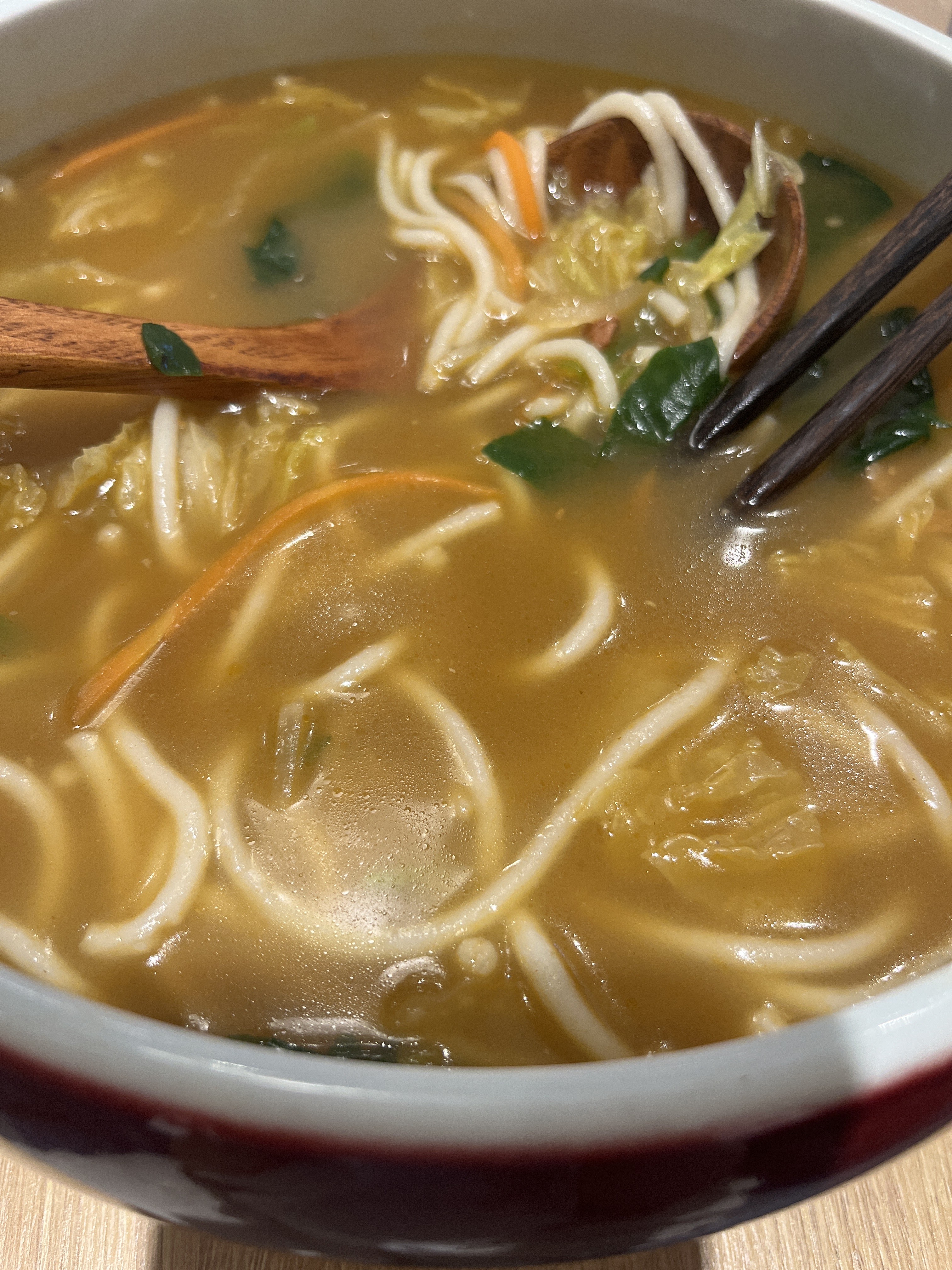 J'aime la texture des nouilles et le goût de la soupe. La soupe est léger sans ajouter trop des choses comme huile ou sel etc mais de vrai goût. La quantité est assez riche par rapport au prix. Le service est sympa, un resto propre est bien situé. C'est la dernière fois que je mange ici, je reviendrai.