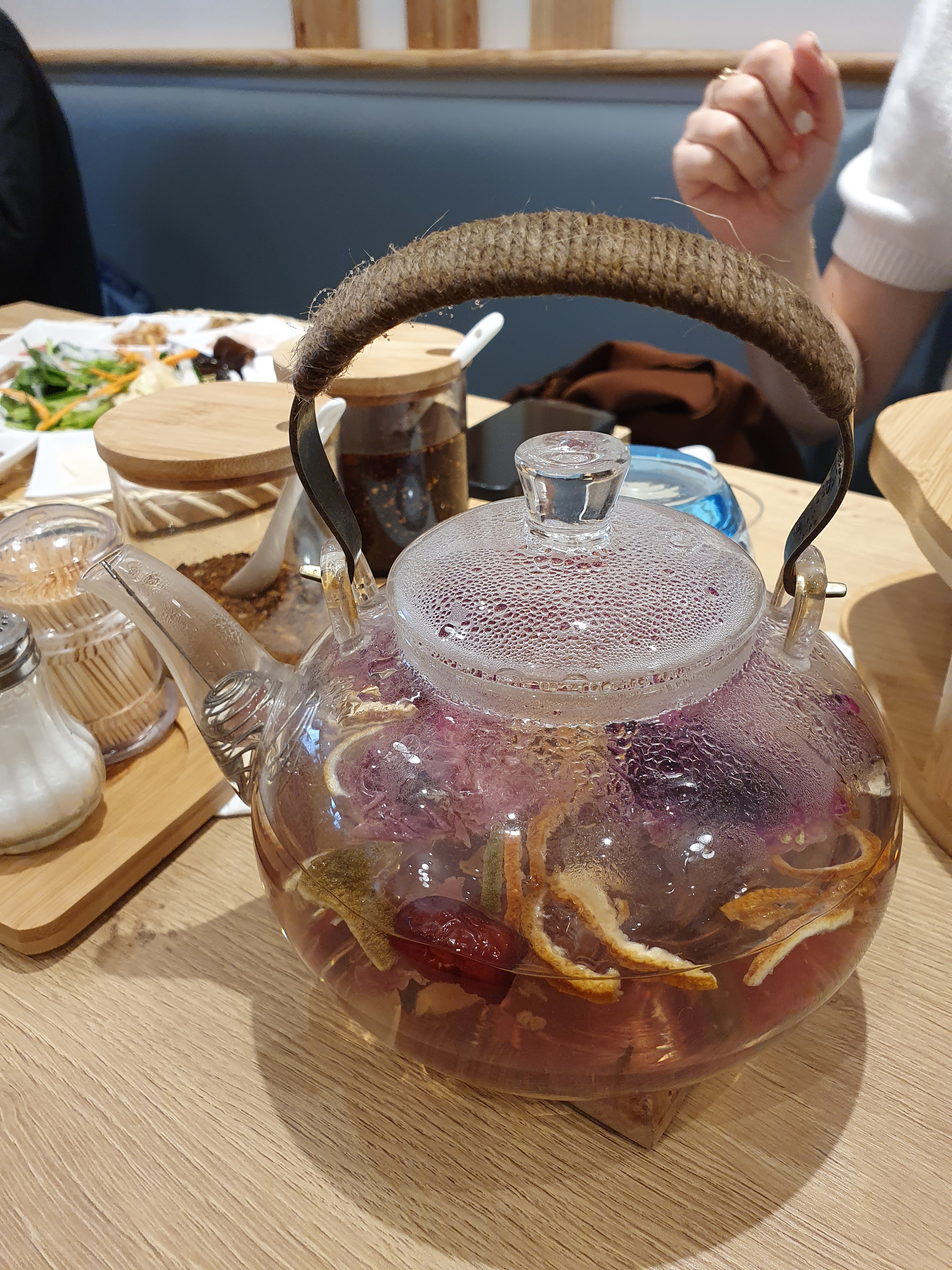 Marmite végétarienne et tofu mariné ! Très bon ! Un plus pour le choix de thé, boisson originaire du Yunnan, ainsi que le gong fu cha, rituel du thé chinois, réservé aux amateurs de thé !