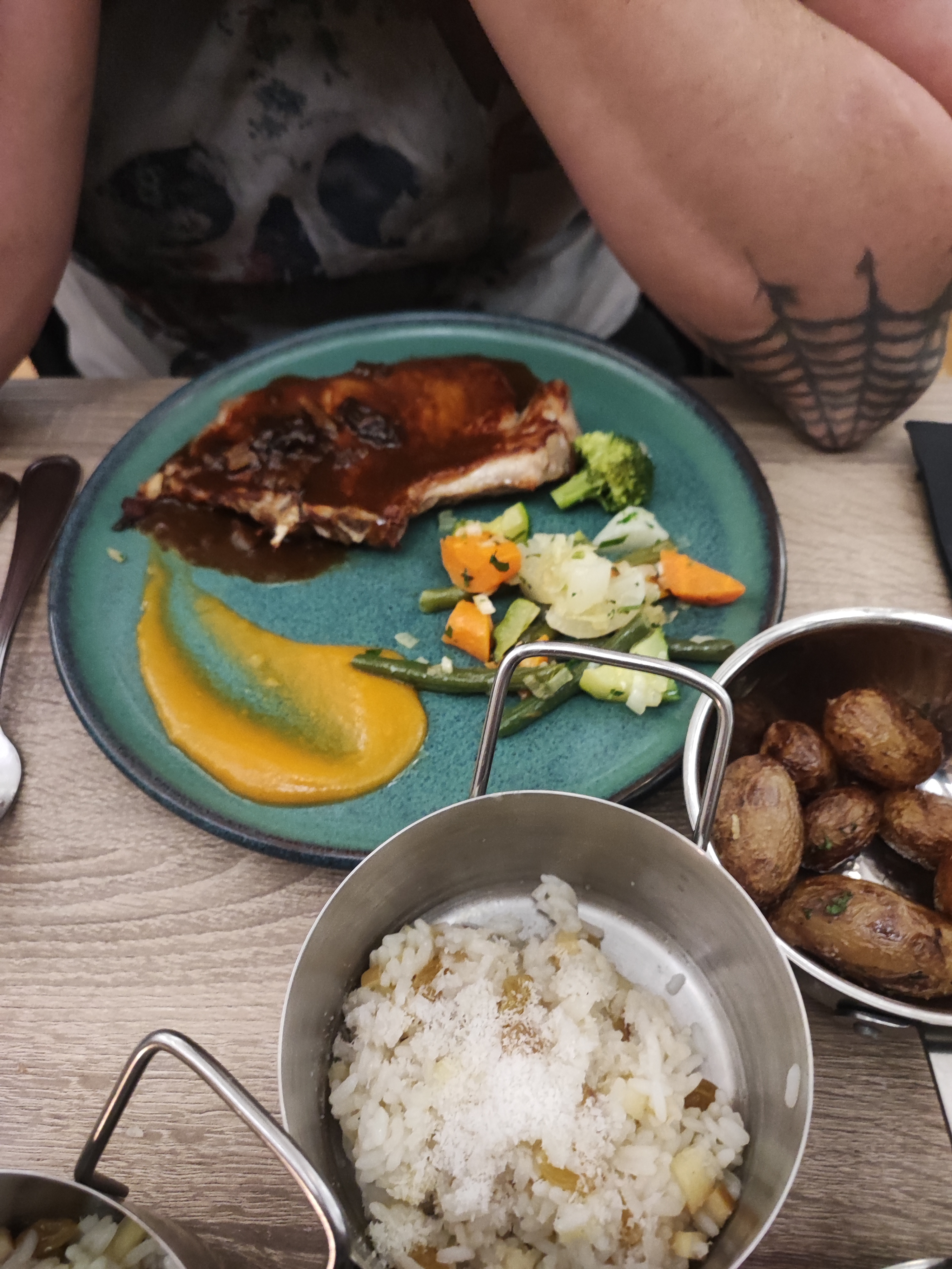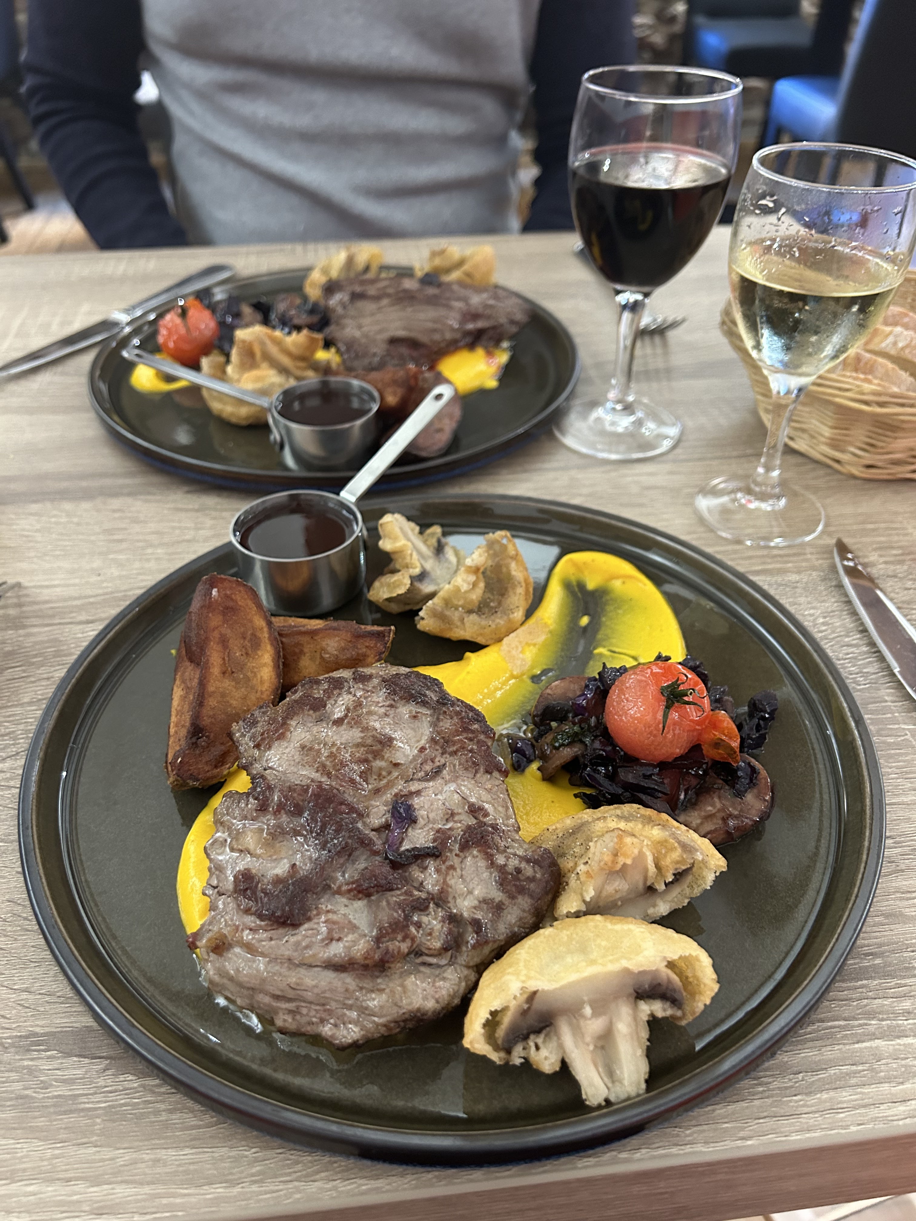 Très bonne accueille , repas de très bonne qualité la viande savoureuse est délicieuse, les épaule d’agneau au fumoir je vous le conseil et le délicieux filet de bœuf top top top et sans oublier les tapas excellent merci à l’équipe et je le conseille à tout le monde. Aller manger là-bas vous serait pas déçu😎