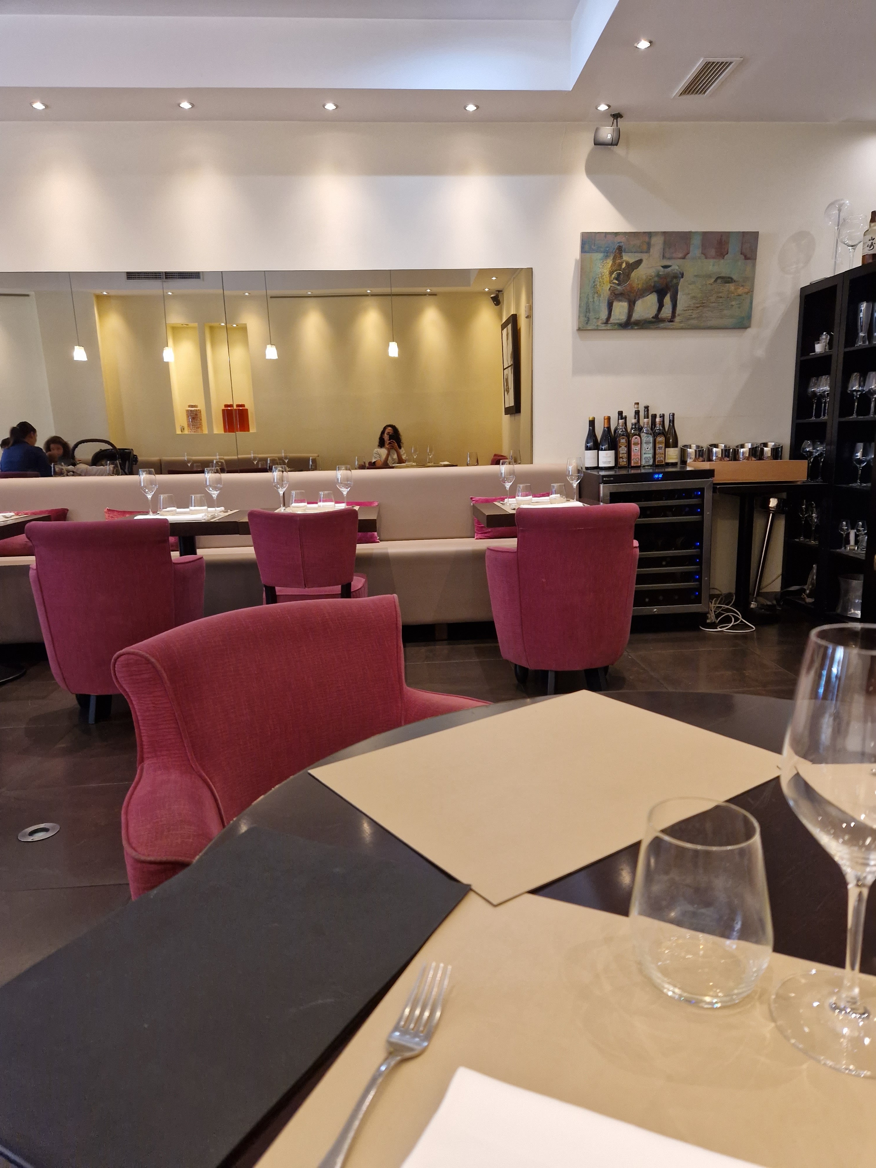 Lieu calme le menu dégustation est cher le vin est cher. Le poisson était très bon mais l'entrecôte avait le goût du vinaigre et n'est pas de la taille d une entrecôte 2cm d epaisseur n est pas suffisant.