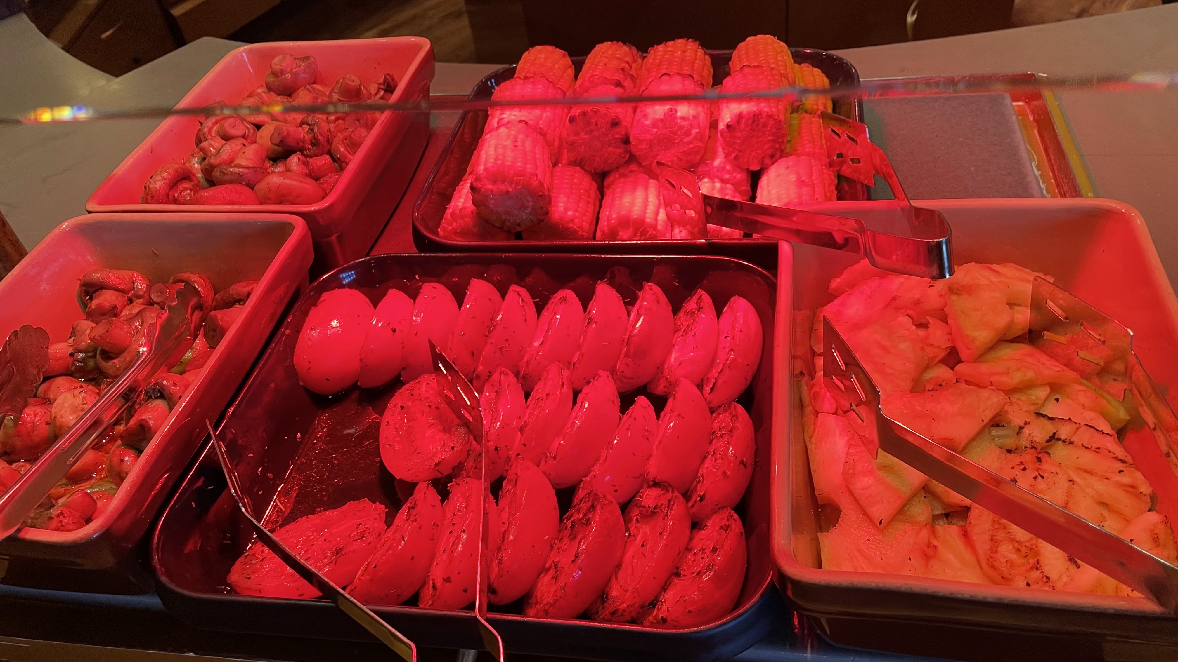 Manque d'entrées dans le style cochonnaille. Peut-être est-ce dû à la canicule des jours précédents. Sinon très bien, viande rouge excellente, et ce, à volonté.