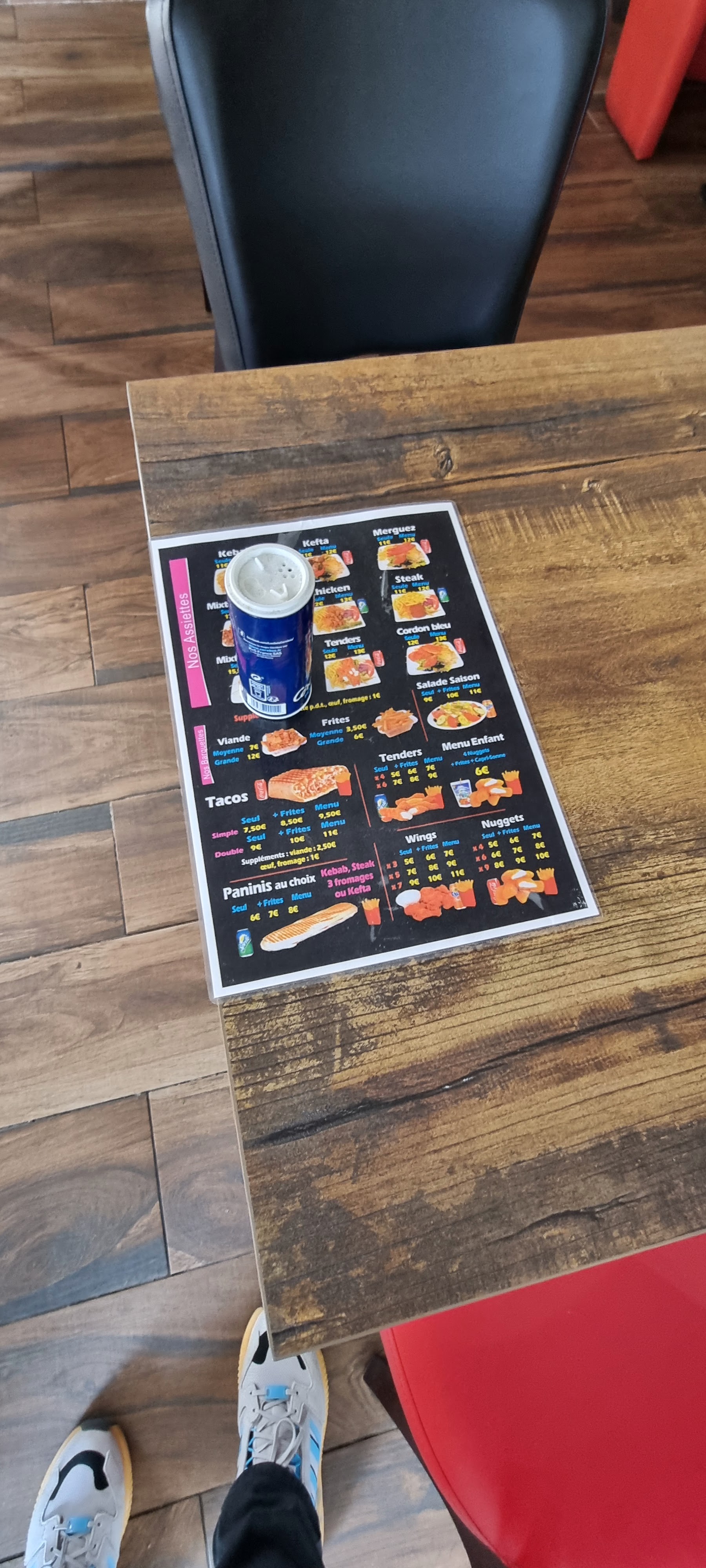 Quand je suis arrivée pas de bonjour rien, je commande donc et les prix sont assez hauts. La petite bouteille d'eau est à 1.20 !! Bref, je ne peux juger la nourriture car elle était pour une sans abri et ses enfants mais la personne aux cuisine m'a engueulée car il avait mal compris la commande. Monsieur je suis malentendante ! Idem je l'ai vu ne pas se laver les mains entre deux commandes différentes... Le restaurant n'est pas très propre petit problème d'hygiène. Les aliments dont les steacks font peines à voir. Je n'y avais jamais mis les pieds eh bien je ne pense pas les y remettre. Globalement je déconseille le prix est vraiment trop haut pour du si bas de gamme.