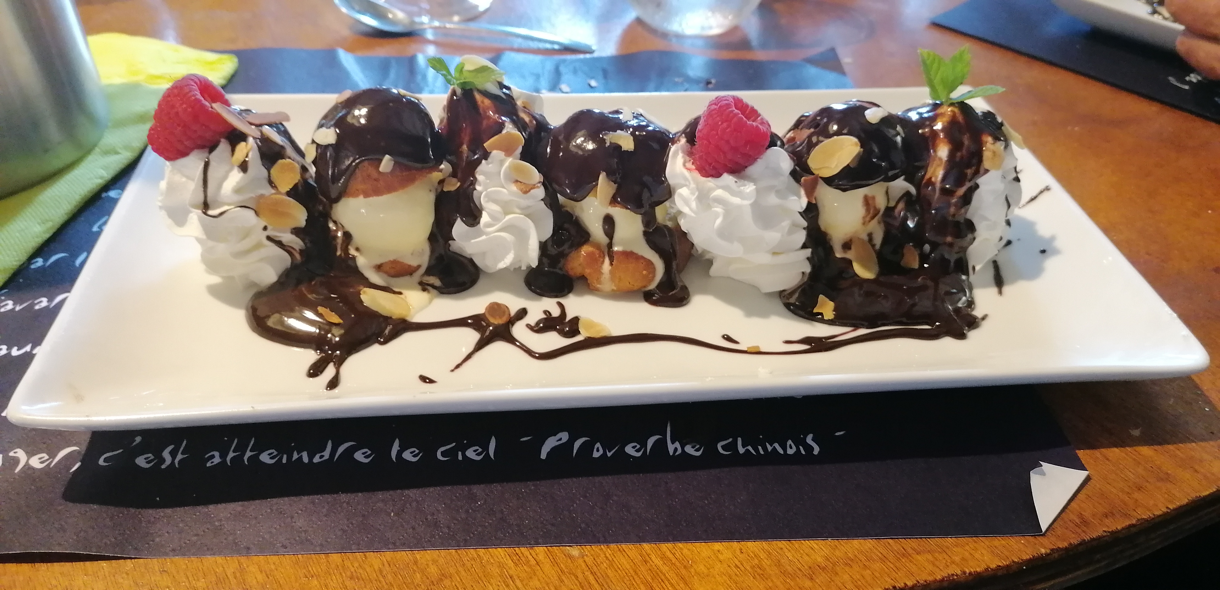 Fidèle à eux même innovations au dessert : 'profiterole à notre façon'... XXL... Mais en se forçant un peu c'a passait très bien. Toujours aussi recommandable.