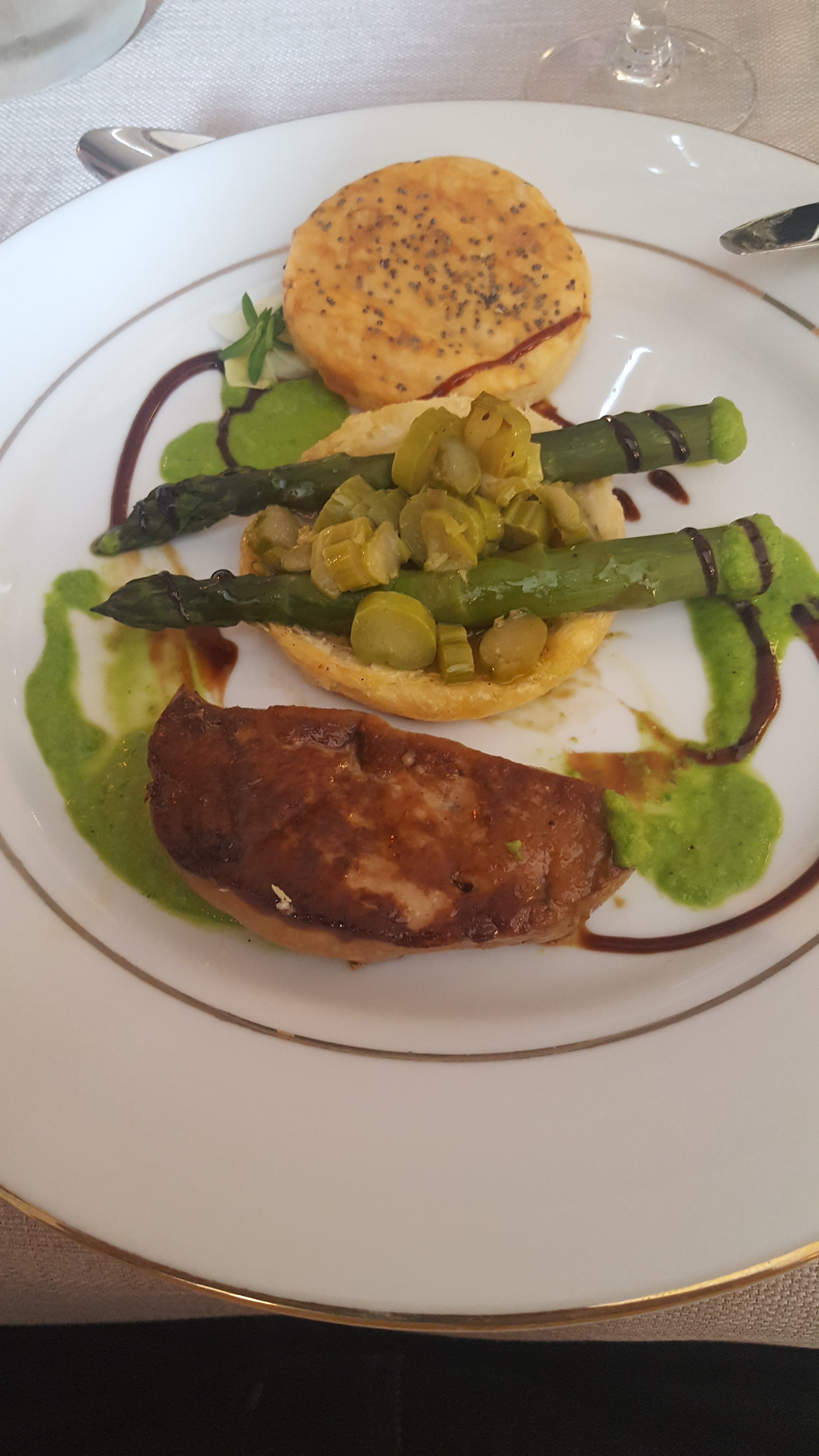 De l'entrée au dessert pas de surprise.tout est excellent.service rapide malgré une salle comble ....3 petites mises en bouche au départ.le chef vient s'enquérir de notre satisfaction....de la restauration comme on souhaiterait en avoir plus souvent ; pour un prix de 39 euro le menu de 3 plats.brioche tiède de foie gras aux abricots.petite tarte fine de et Jacques.carre de veau au floc de Gascogne.et moelleux aux fruits rouge Le tout servi avec un petit rosé frais du coin ;une belle façon de marquer la fête des pères.