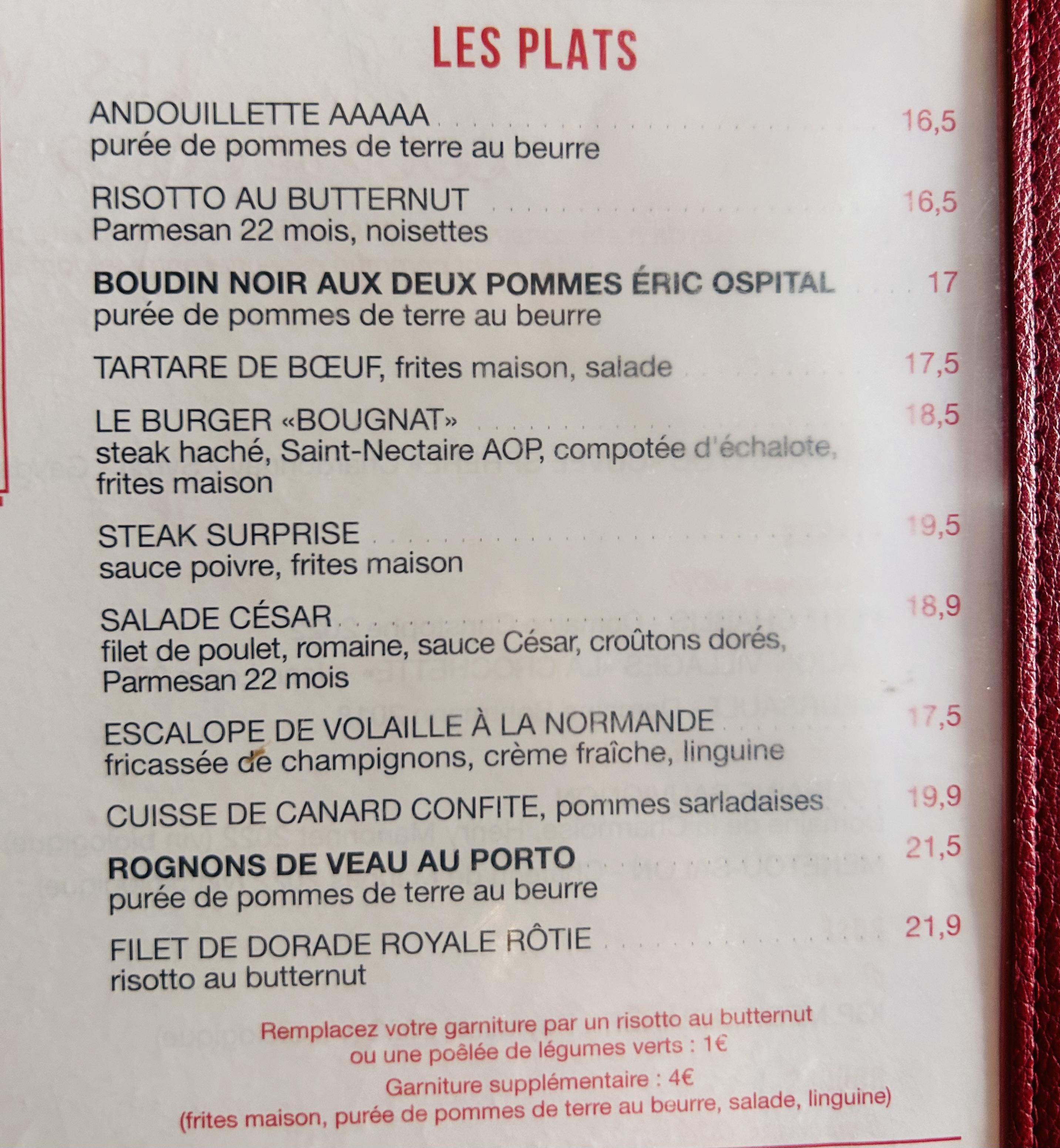 Je venais pour l exceptionnel onglet. Quelle déception d apprendre que la direction l a enlevé pour un vulgaire steak sans intérêt. Tout cela pour gagner plus d argent. Je préfère payer plus cher pour la qualité que 18 euros un steak sans goût. Le pire est que mer le foie de veau a disparu. Honteux Je ne viendrais plus. Sauf si l onglet réapparaît a la carte, car le reste est sans intérêt.