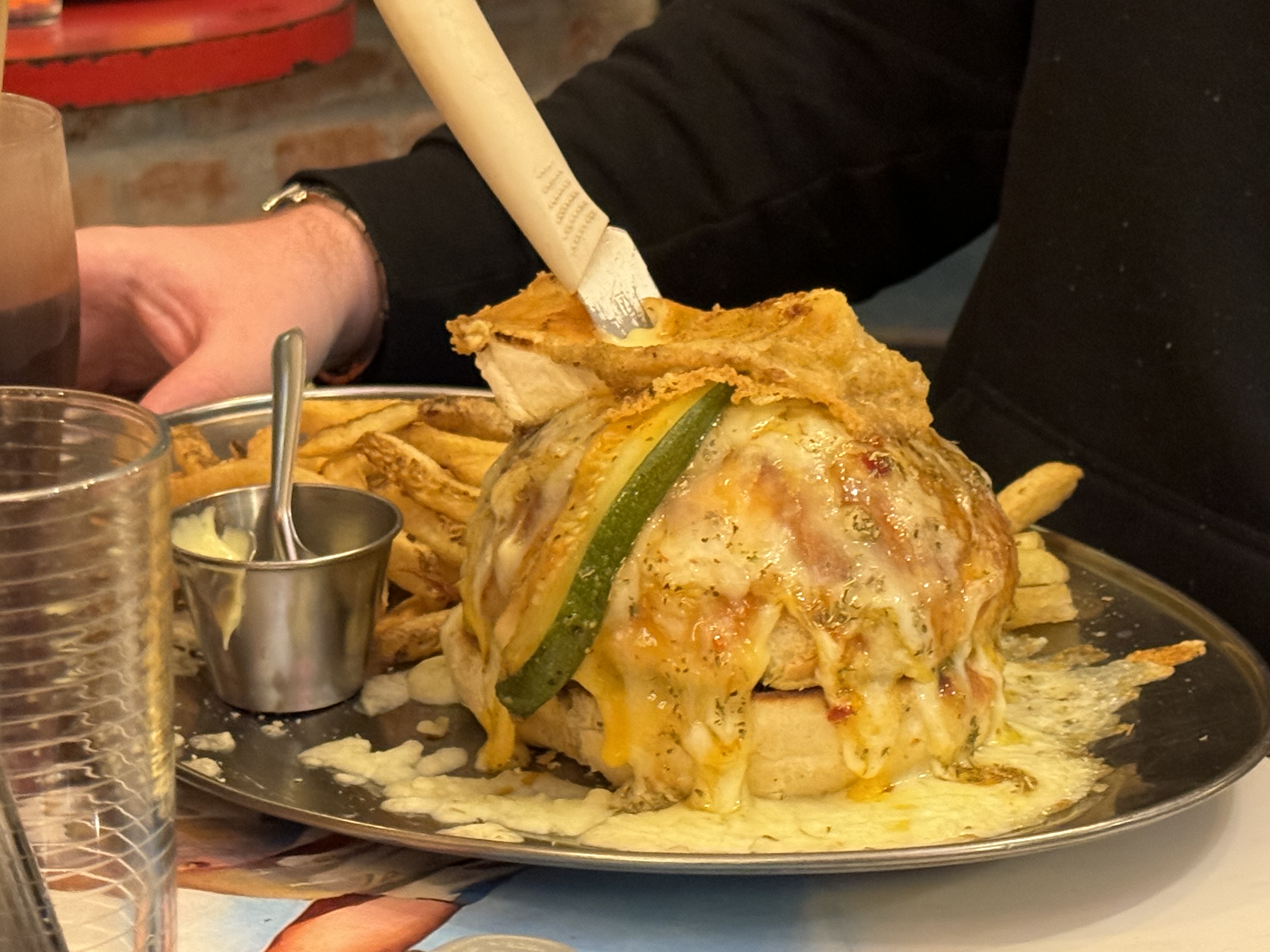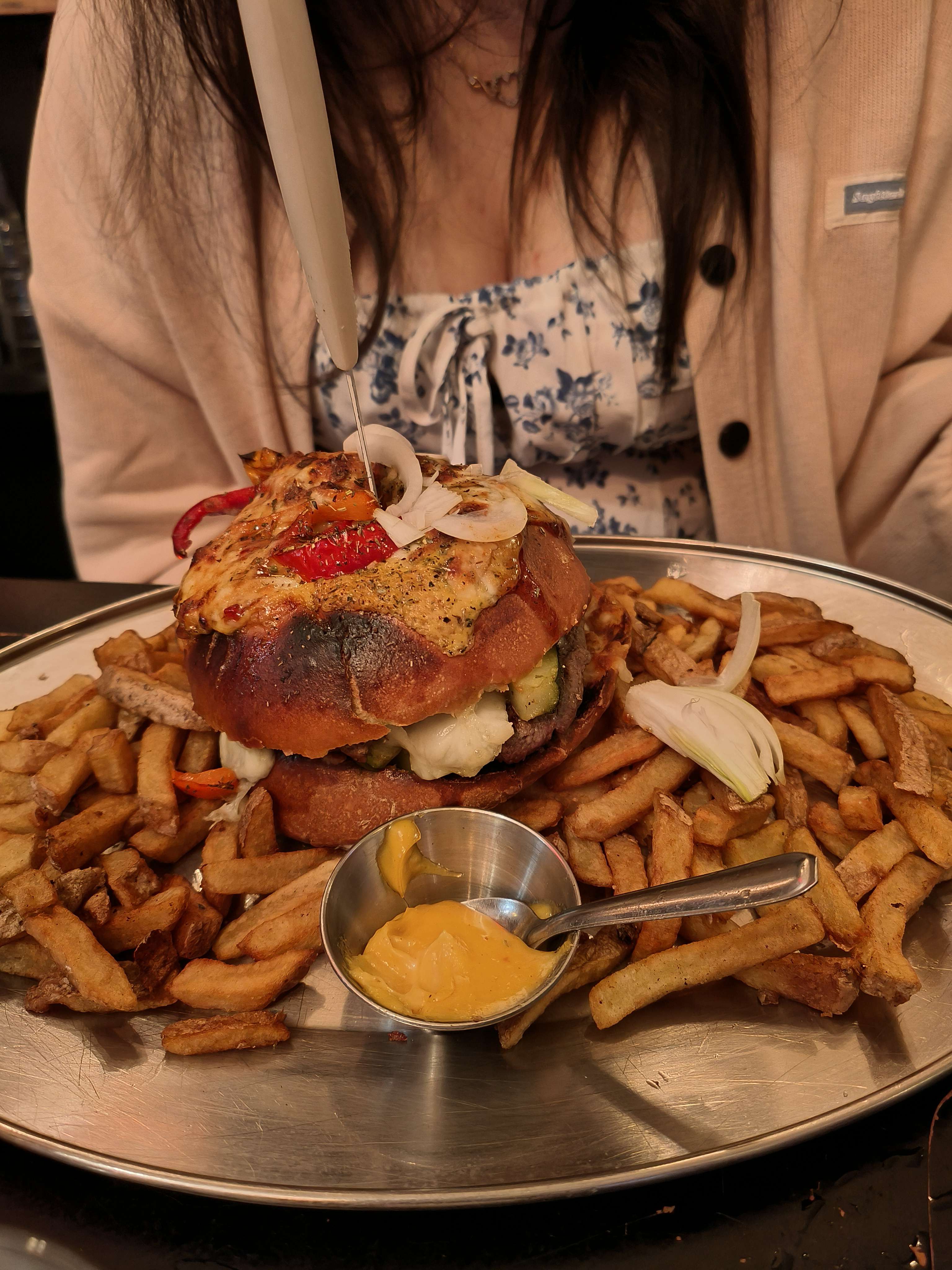 Il faut arriver avec une grosse faim, mais j’y ai mangé les meilleurs burgers de ma vie. La viande et les frites sont excellentes. La serveuse a une super énergie !