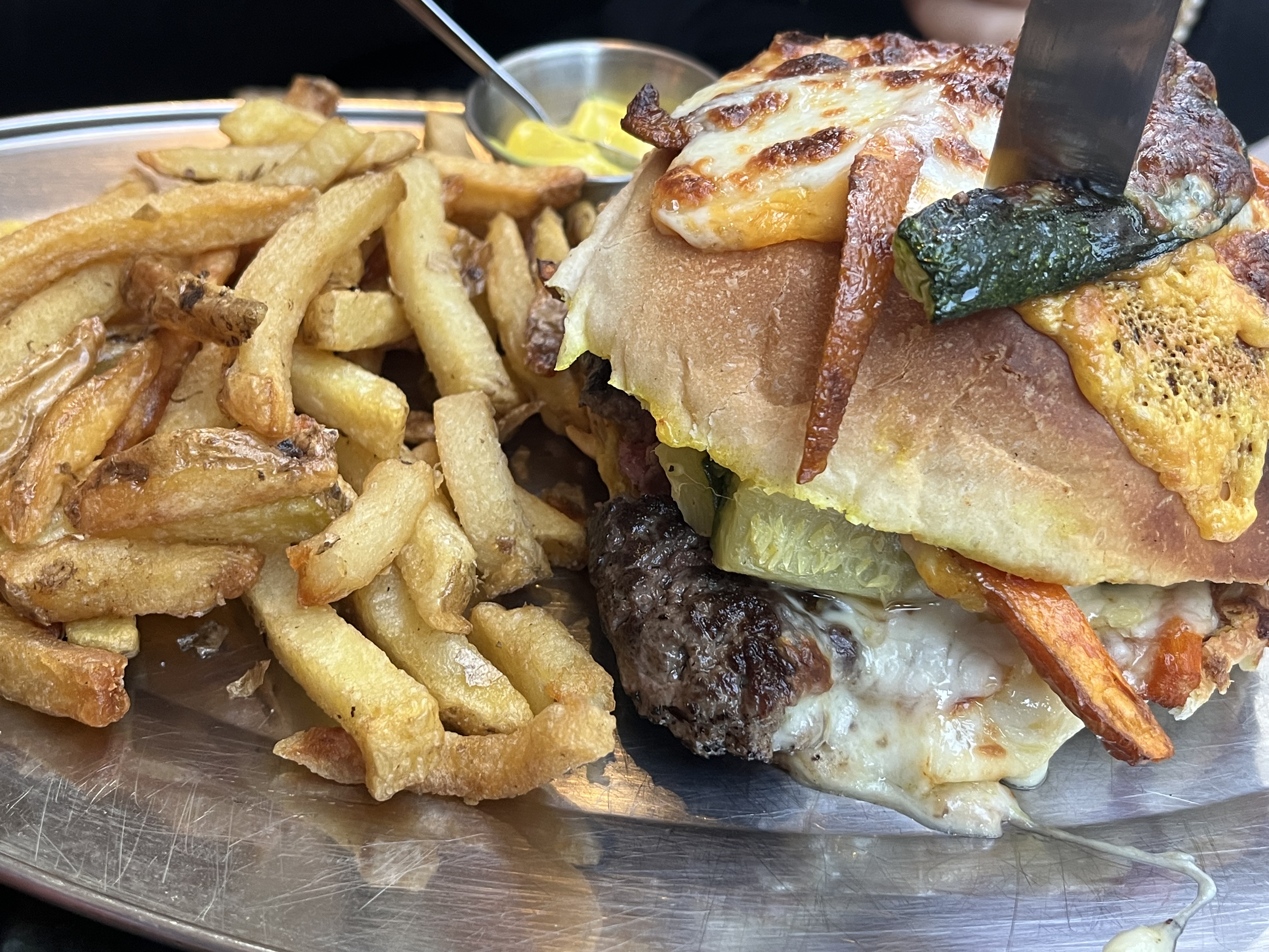 Burger excellent et copieux ! On en a clairement pour son argent. Ambiance très conviviale avec le patron très sympa qui nous a même offert des shots