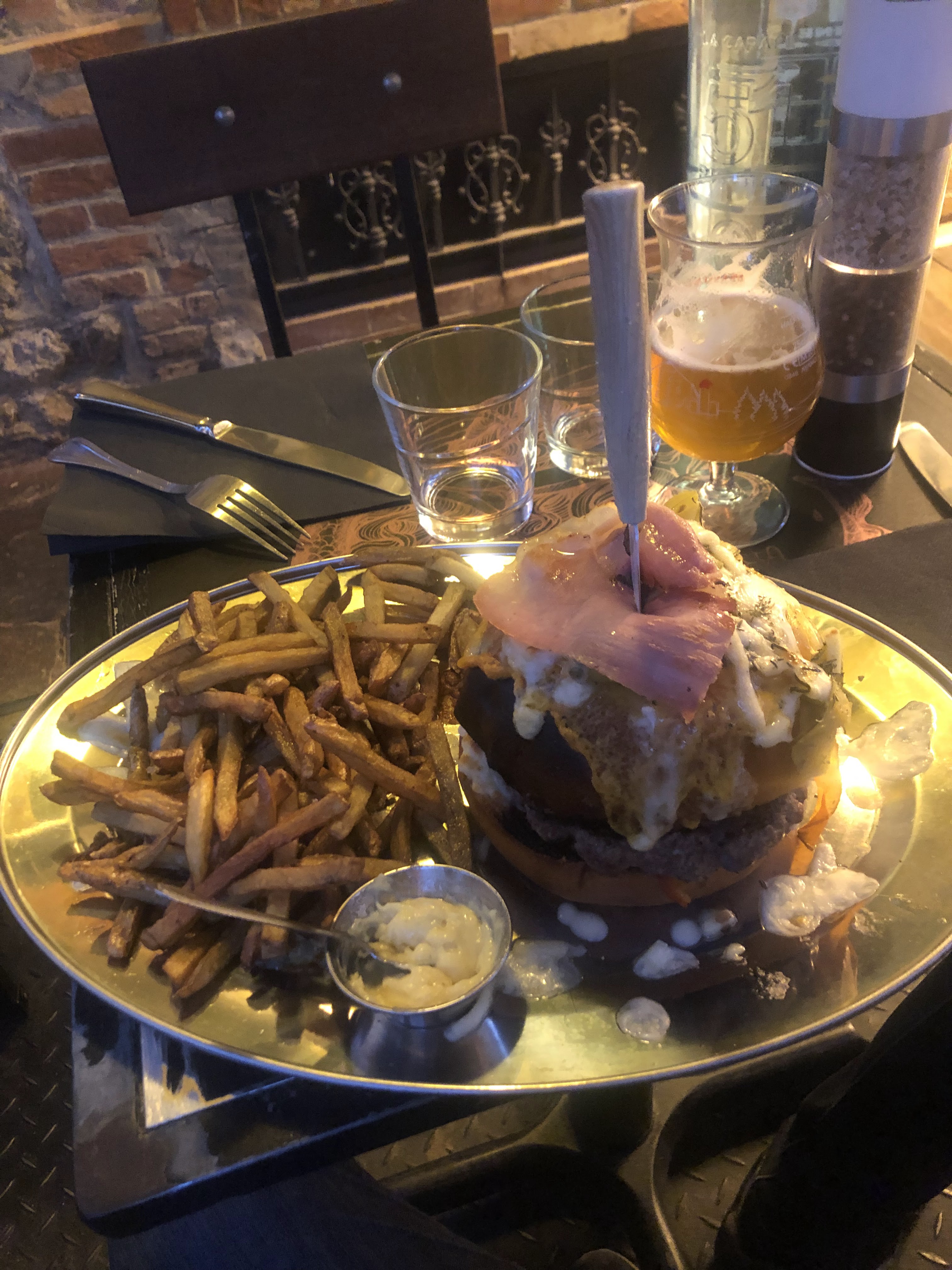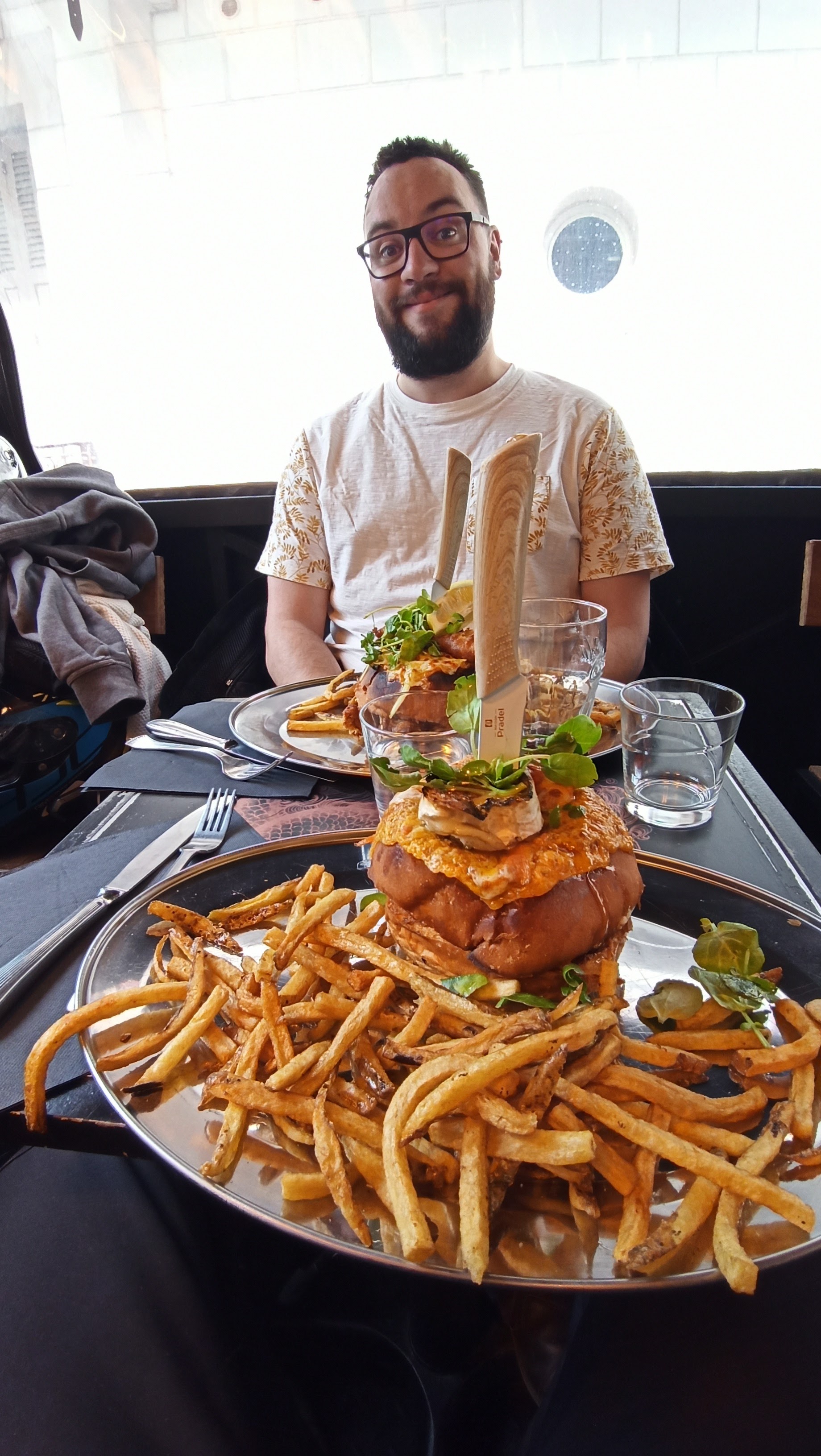 Un conseil : venez en ayant un immense appétit !! Le service est à la hauteur de la cuisine, c’est authentique, 100% fait maison (ça se sent) et extrêmement bon et original. Mais alors… faut être bon mangeur car les portions sont énormes! 😅 le pain burger est super bon, et la petite touche de légumes grillés apporte un vrai + légèrement déculpabilisant… frites super bonnes, on aurait aimé tester les desserts mais il aurait fallu faire appel à une extension d’estomac! Bravo Monsieur le chef, il est rare de manger un vrai bon burger !