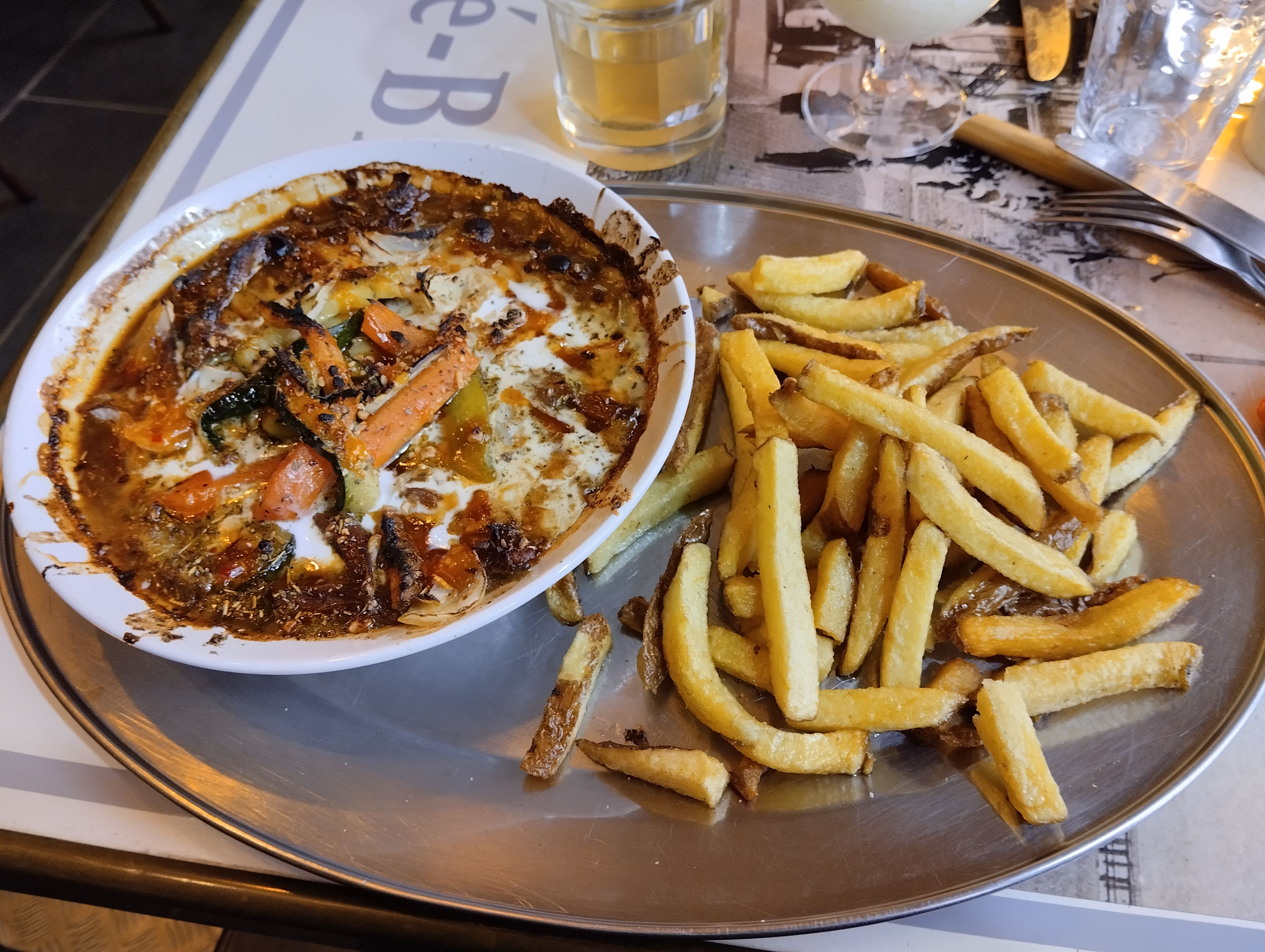 Au top. Seul en cuisine et une seule personne en salle, avec l’affluence, une gestion des tables parfaite ! Très indulgent sur le service et la qualité, très pro. Et merci pour le petit digestif offert ! Les moules au camembert un vrai délice ! N’hésite pas à y aller !