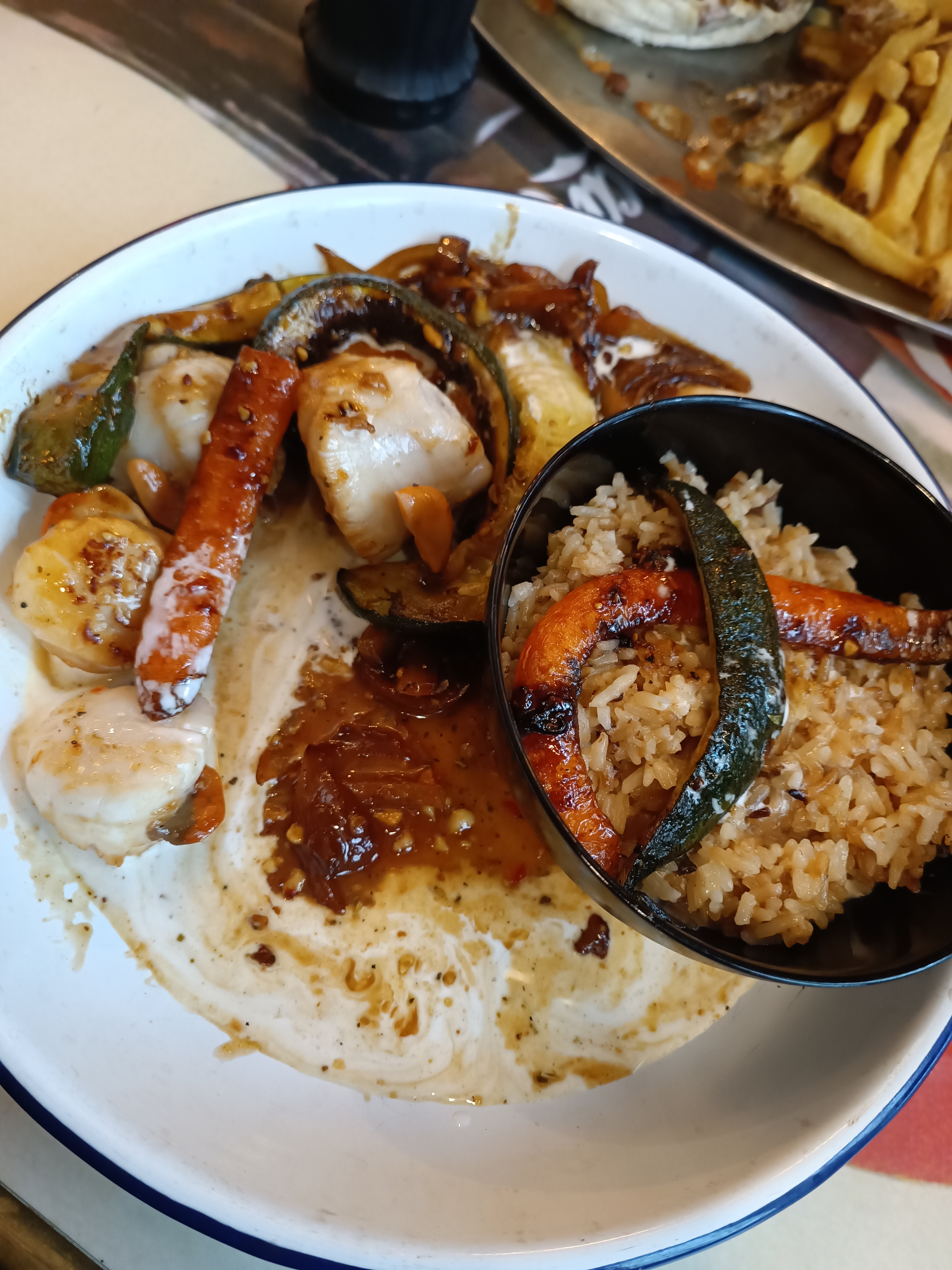 Très bien servi, portion généreuse et de très belles saveurs, ha oui mojito chargé je recommande. Le propriétaire est très gentil merci ce ptit rhum gingembre