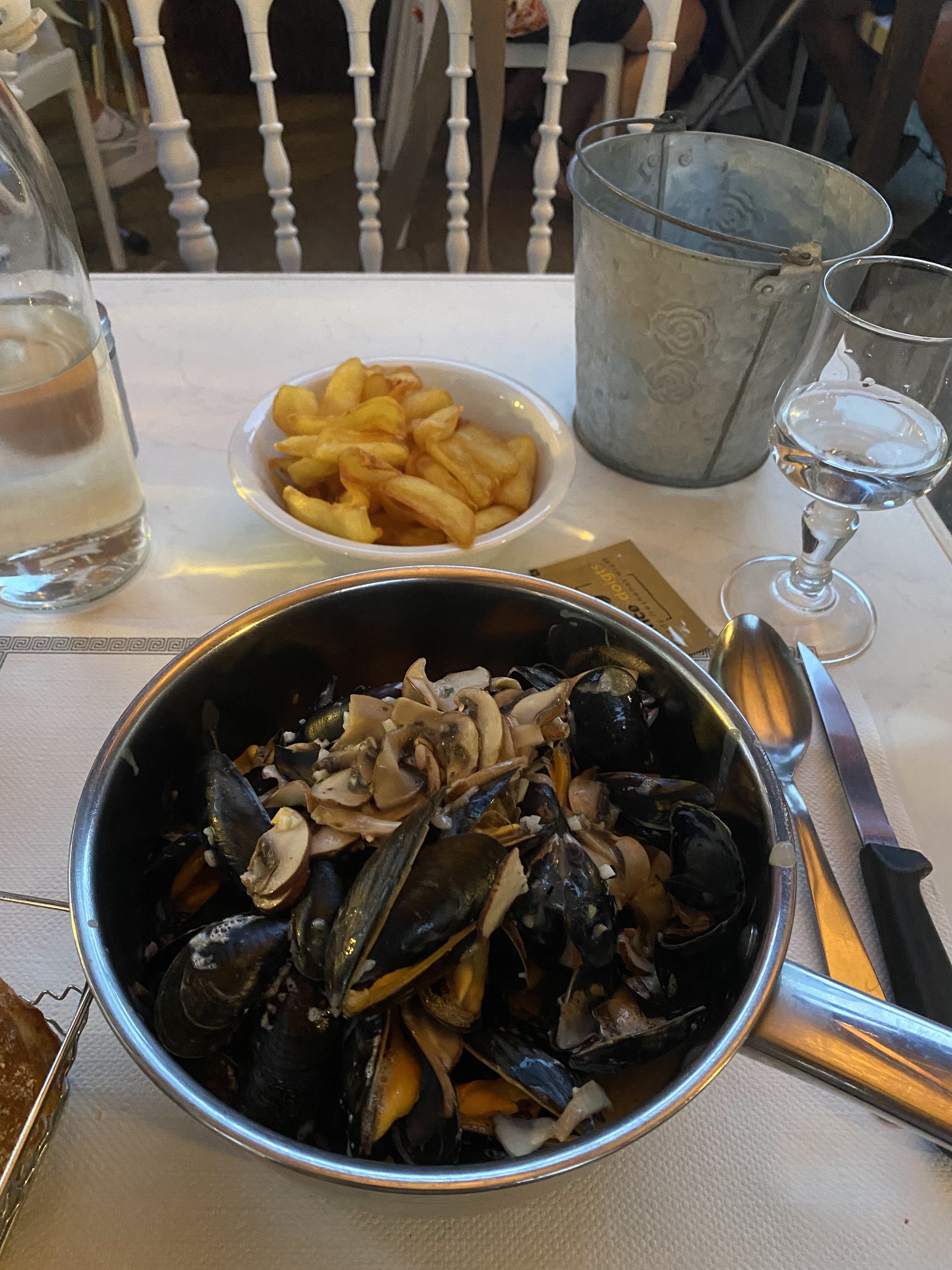 Super restaurant au cadre extérieur bien sympa moitié pergolas moitié parasols avec de la petite déco très enjouée Les moules sont bien bonnes, le prix reste correct. Merci pour l’accueil sympathique !