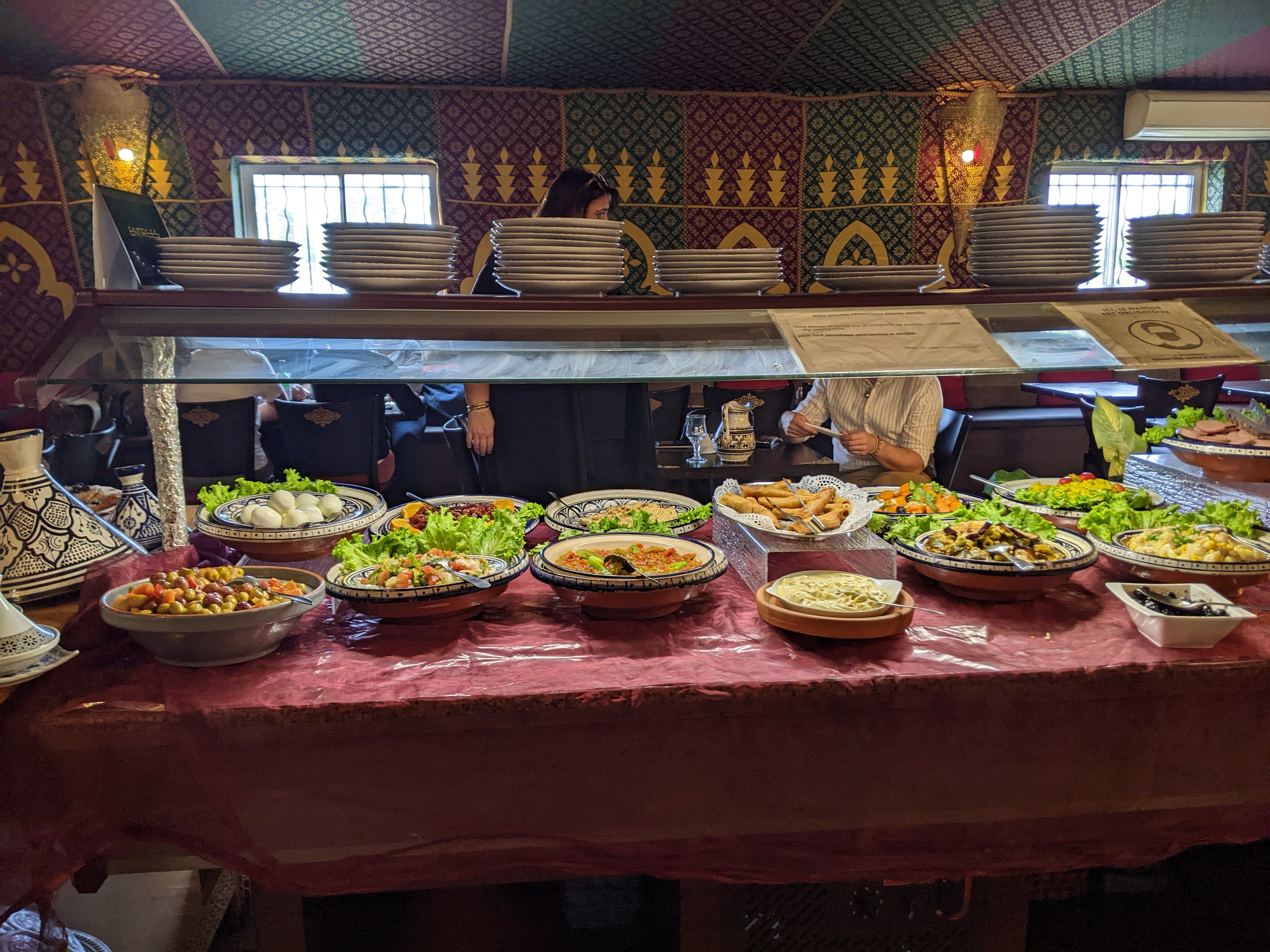 J'ai tout de suite vu que j'allais me régaler. Le buffet est bien présenté, les senteurs annoncent la couleur. Des entrées aux desserts, en passant par les tajines, tout était très bon. Le personnel et le gérant sont sympathiques...(2019) Toujours aussi bon (08/2021), et et ce n'est pas l'usine comme dans certains restaurants de ce type...☺