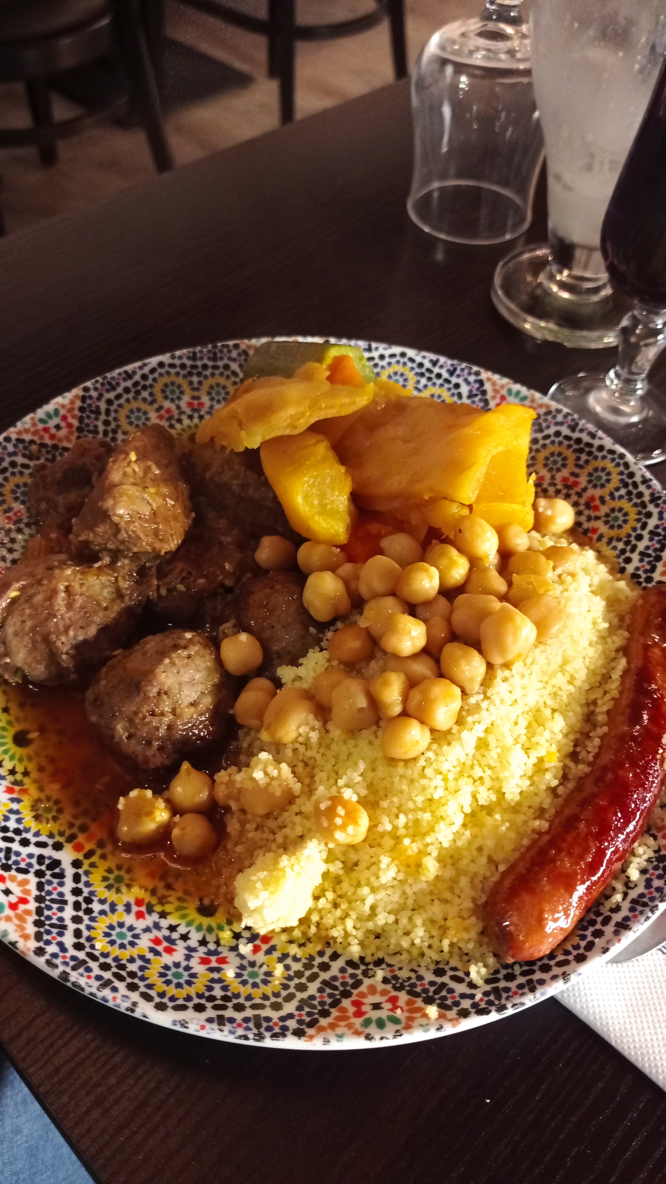 Coucous relevé comme il faut. Serveur agréable. Le thé a la menthe est un délice!!!. J y retournerai volontiers et le conseil aussi