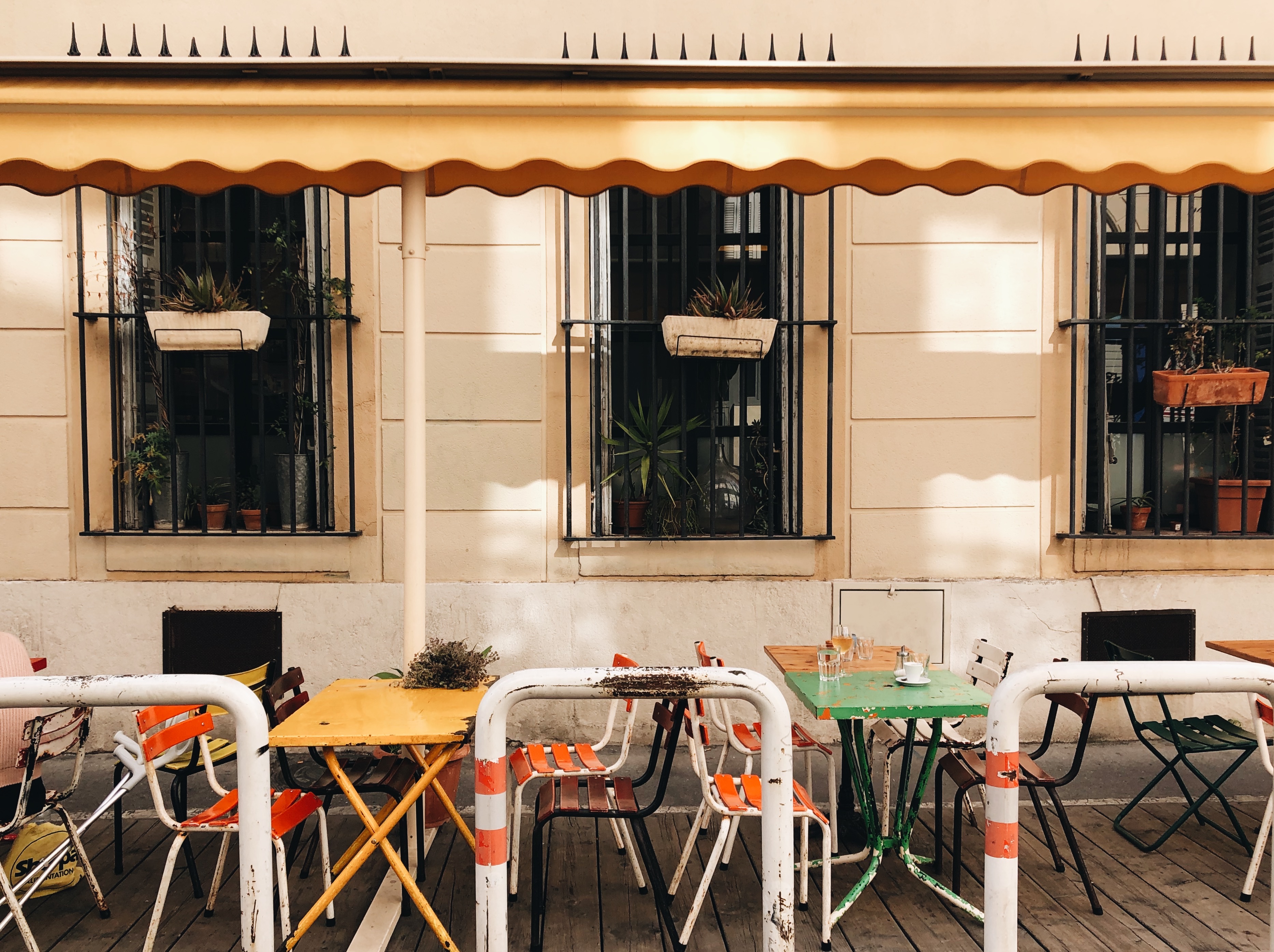 Dehors ou dedans c'est convivial, animé. Mobilier simple pour une cuisine raffinée et originale. Beaucoup de saveurs dans leur aubergine croustillante par exemple. Service chaleureux et avisé sur leur carte de vins pas ordinaires. Je recommande