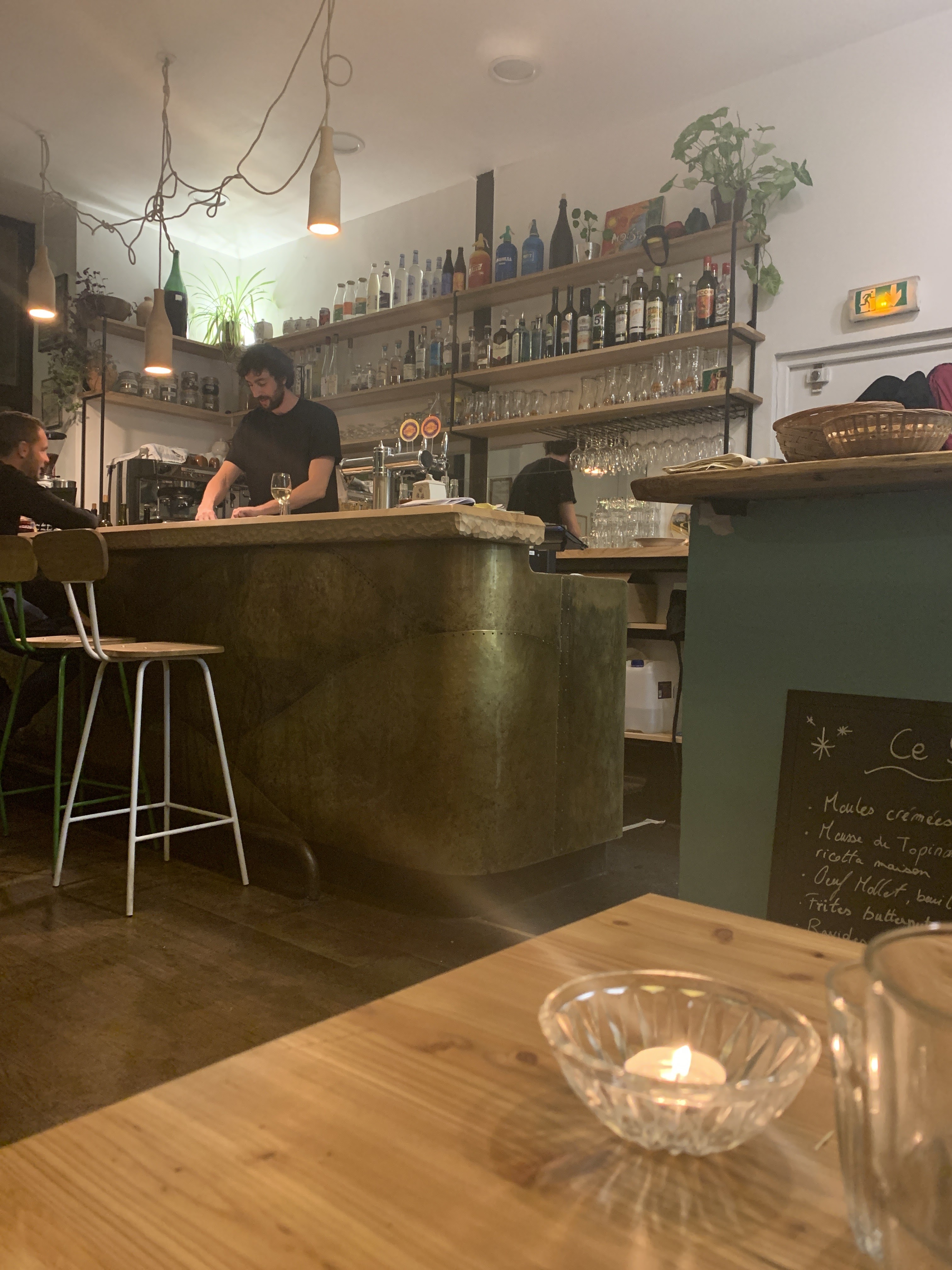 Un bistrot de quartier comme on aimerait en avoir dans chaque qartier. La qualité des produits, l'originalité des plats, le changement de carte, l'interet pr les vins natures, l'ambiance font que tu y viens et y reviens comme un bistrot de quartier ! Love you 😊