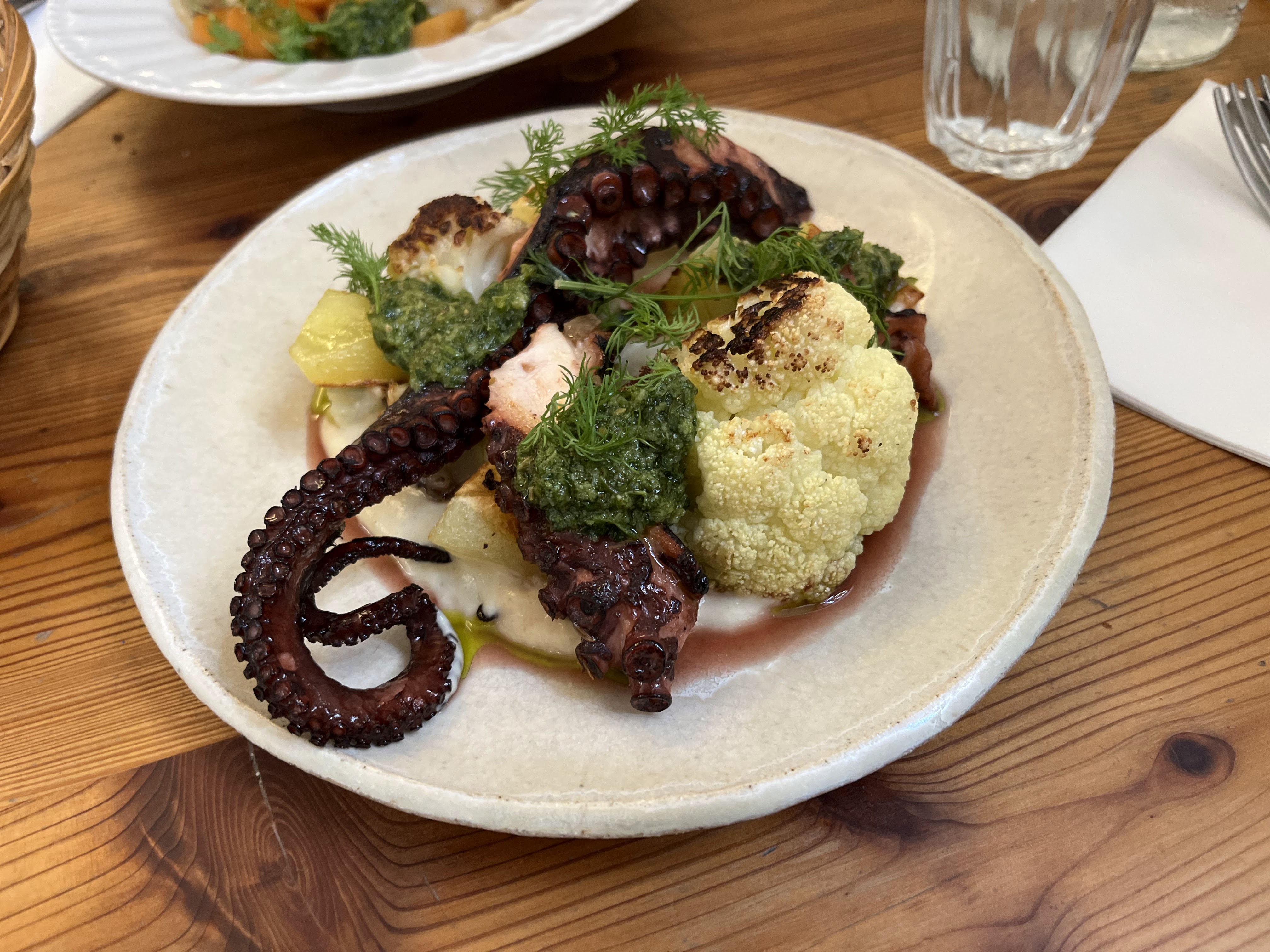 Petit restaurant avec une partie interne et externe à l'écart des touristes. La nourriture est très bonne, présente des combinaisons intéressantes avec des produits de qualité. La carte change tous les jours donc les produits utilisés sont frais. Une grande attention est portée aux ingrédients et à leur origine. Le vin est également très bon ! J'éviterais le café si vous êtes habitué au café italien Le seul défaut de mon expérience ici était le service car, malgré avoir réservé et appelé pour m'informer que j'arriverais un peu en retard, ils ont réussi à perdre ma réservation, par conséquent, j'ai dû passer une partie de mon déjeuner dans la zone interne. Pour le reste, les serveurs devraient être un peu plus instruits afin de transmettre aux clients l'amour et la passion que les chefs mettent dans les plats. En tout cas j'y retournerais, fortement recommandé