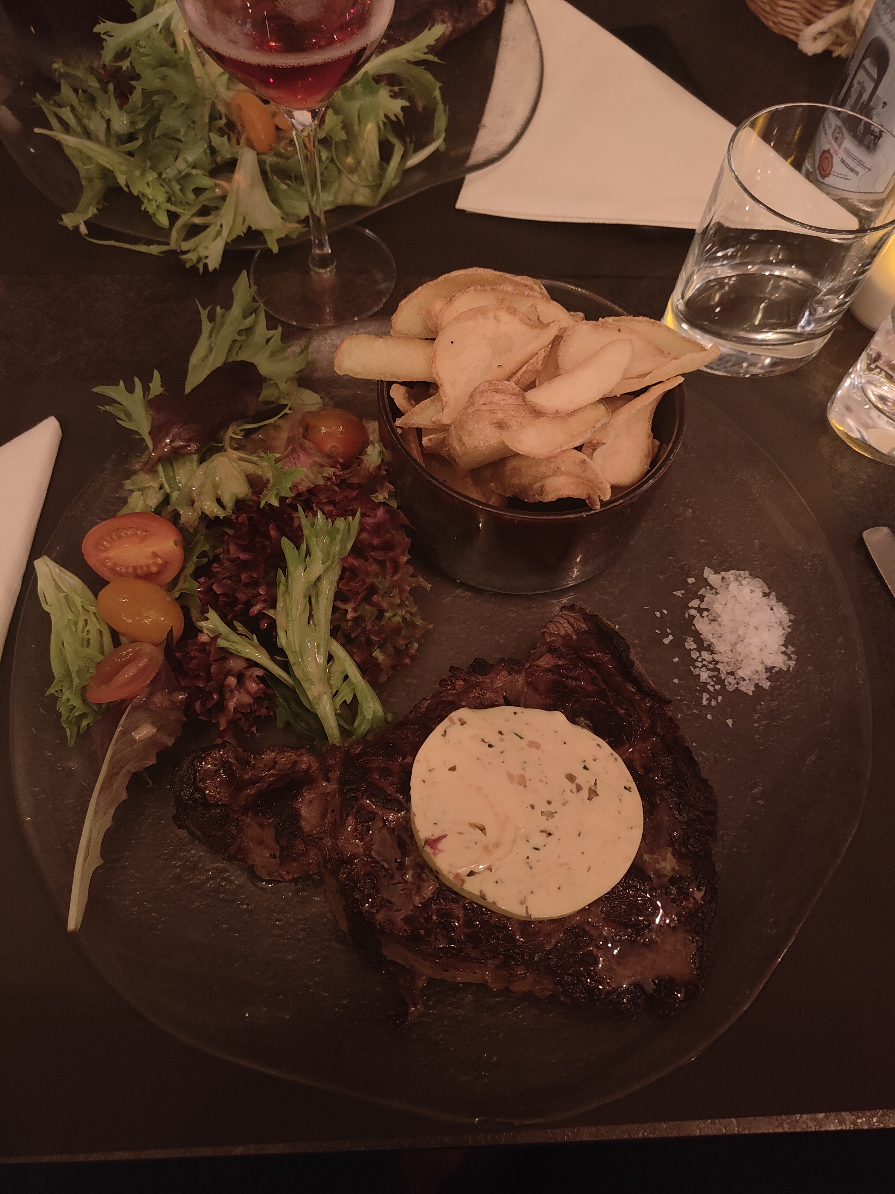 Repas très apprécié, l'entrecôte était vraiment très bonne ! Salle du bas pleine et un peu bruyante malheureusement !