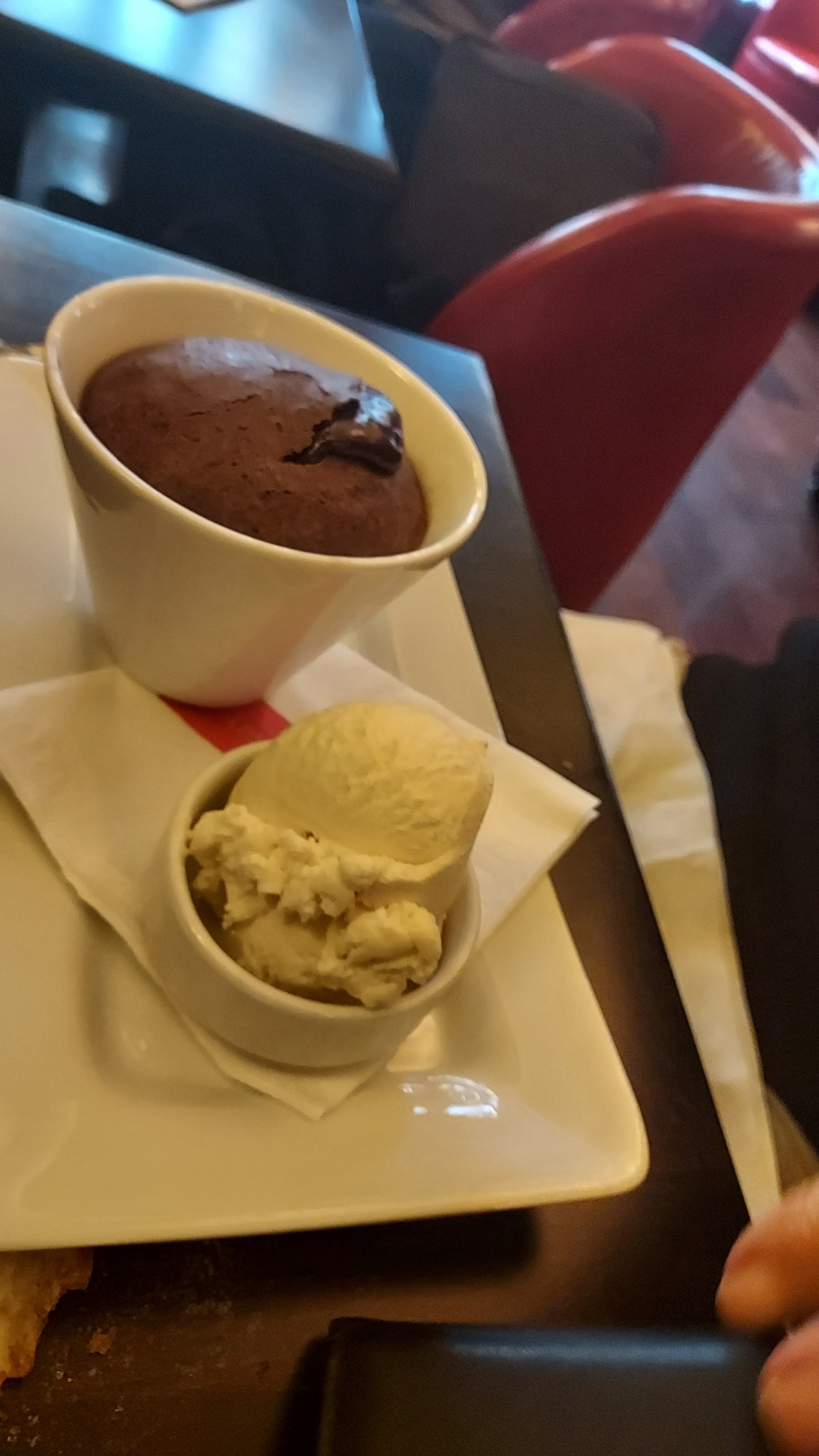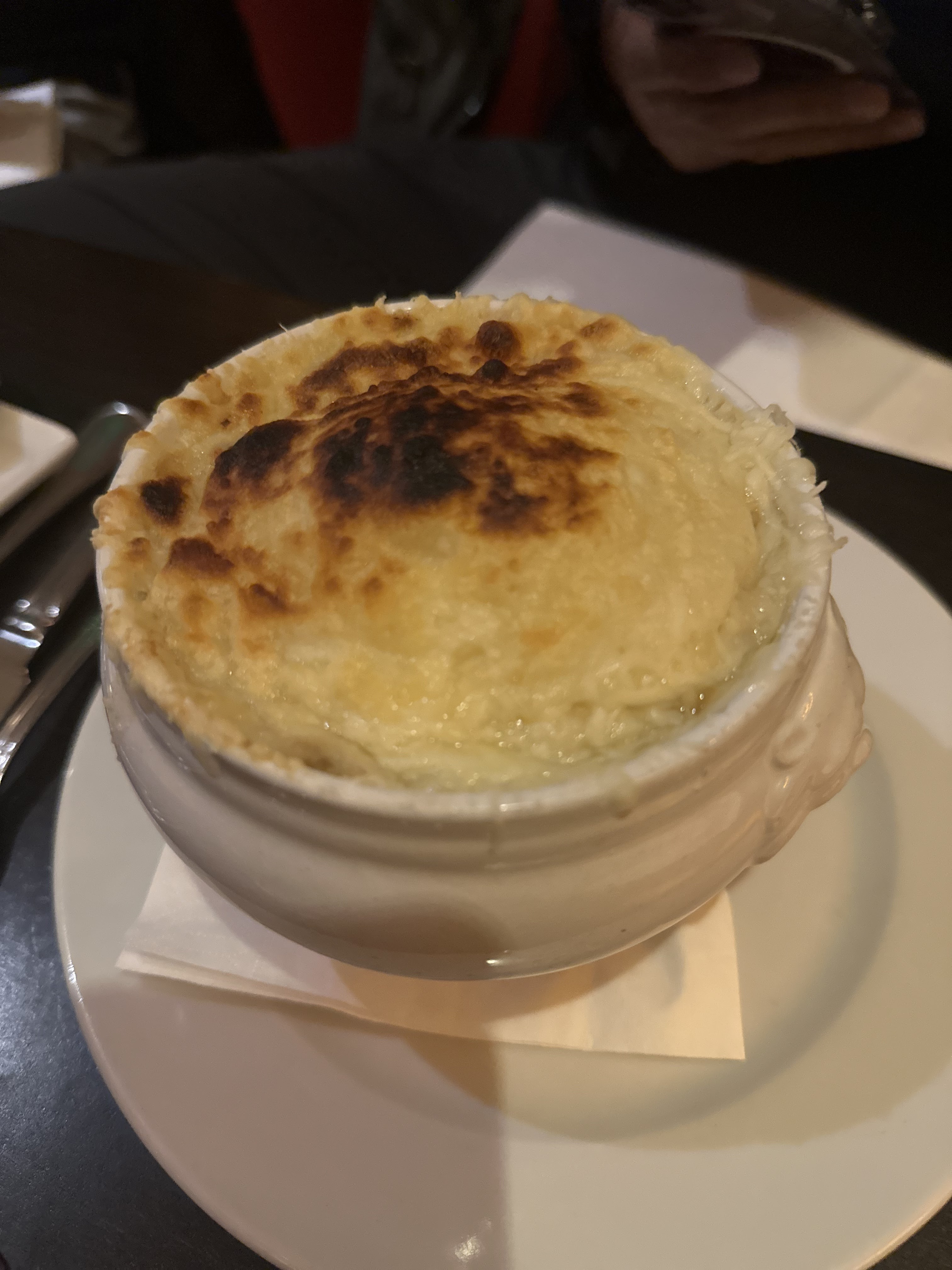 Notre serveur Steve a recommandé certaines choses, leur soupe à l'oignon française était incroyable. Le gâteau de lave avec glace aux amandes était également incroyable !