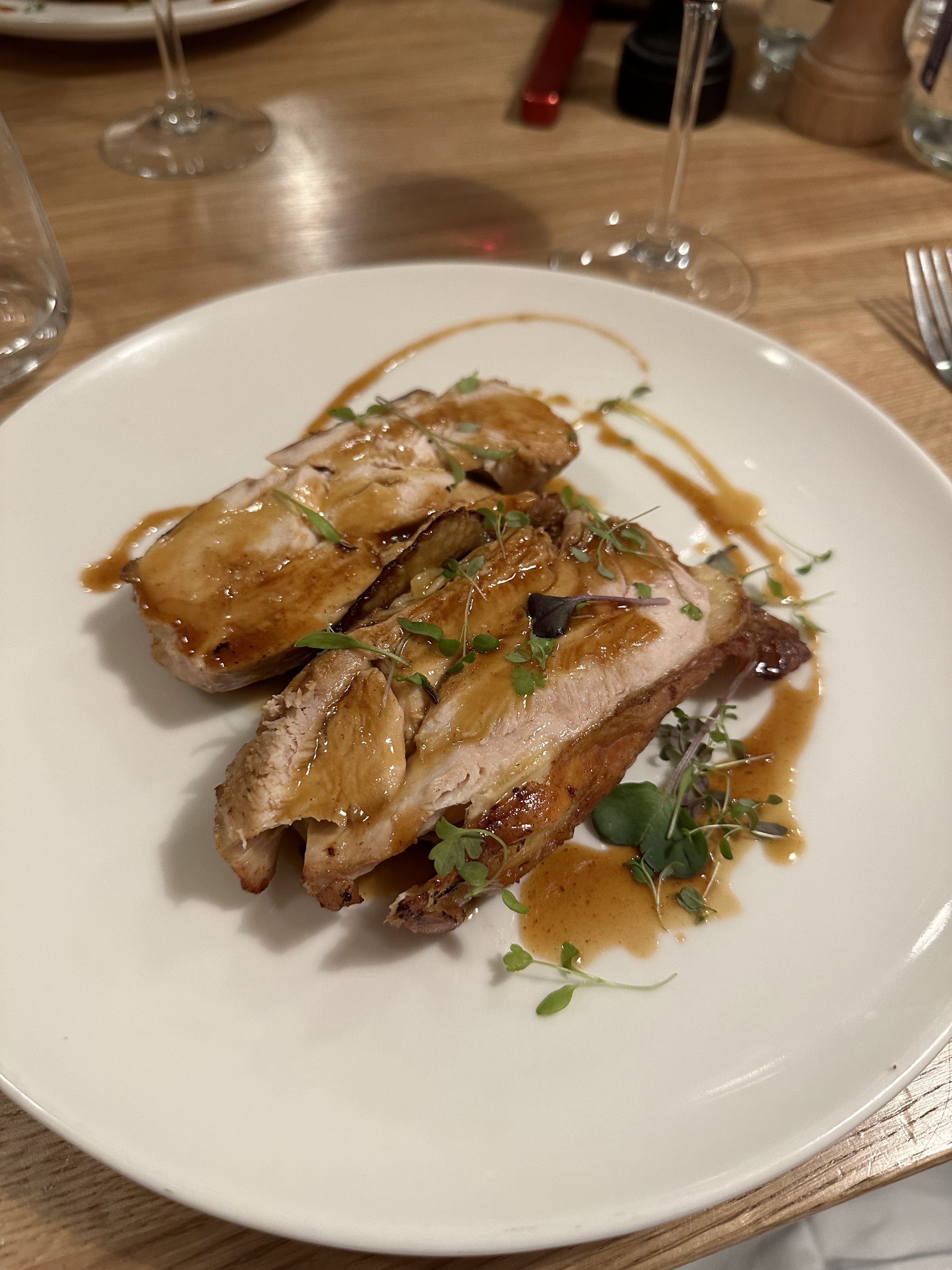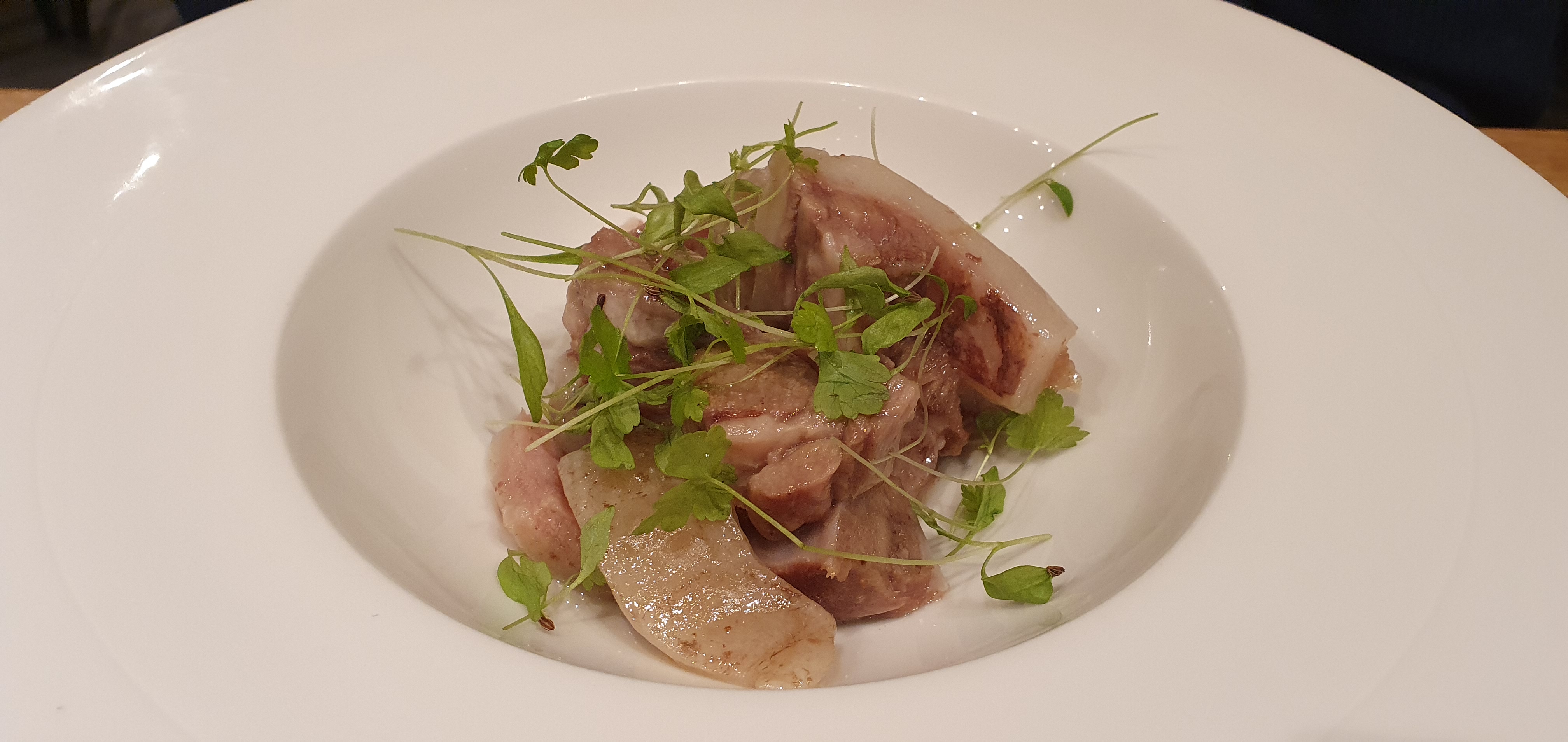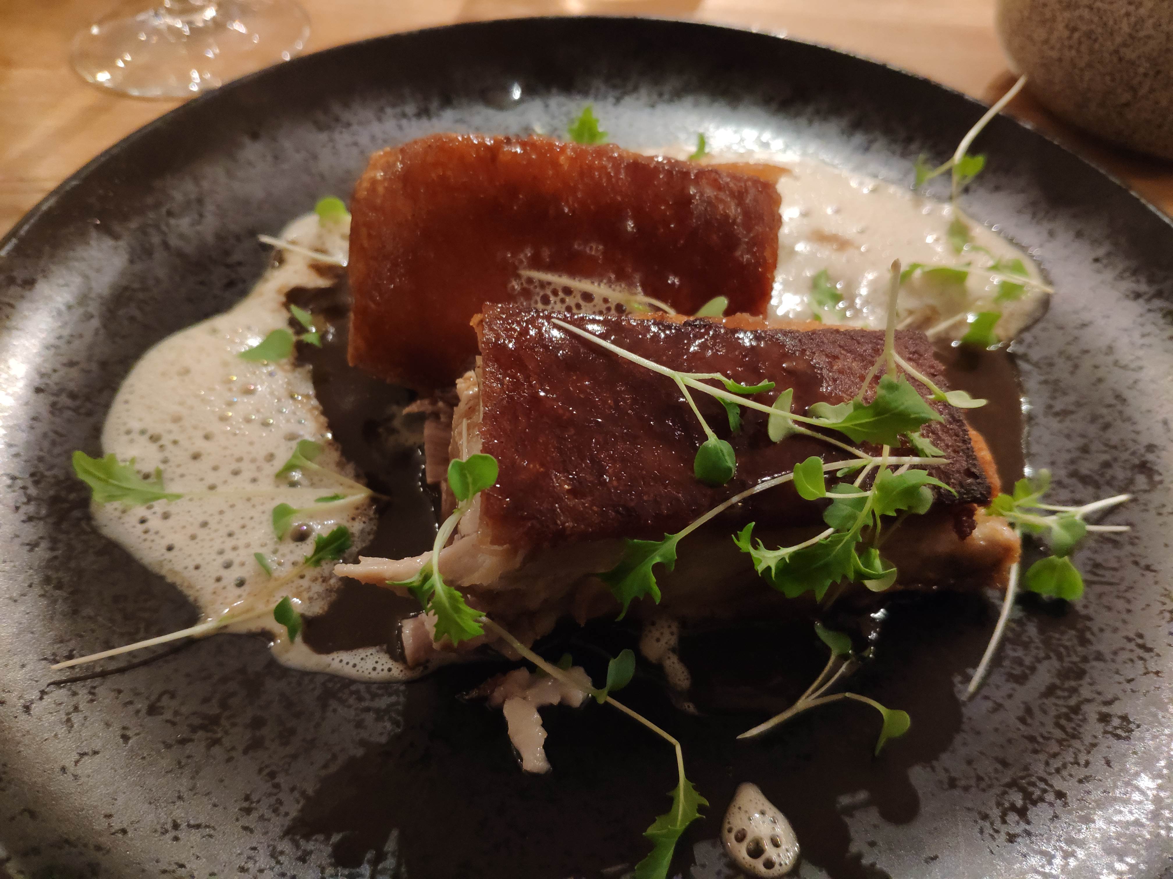 Très satisfait de la nourriture et du service. Également situé dans une jolie rue latérale. La poitrine de porc croustillante était faite à la perfection. A accompagner d'un risotto aux truffes en accompagnement. J'ai raté des entrées passionnantes. Il faudra opter pour la moelle osseuse la prochaine fois !