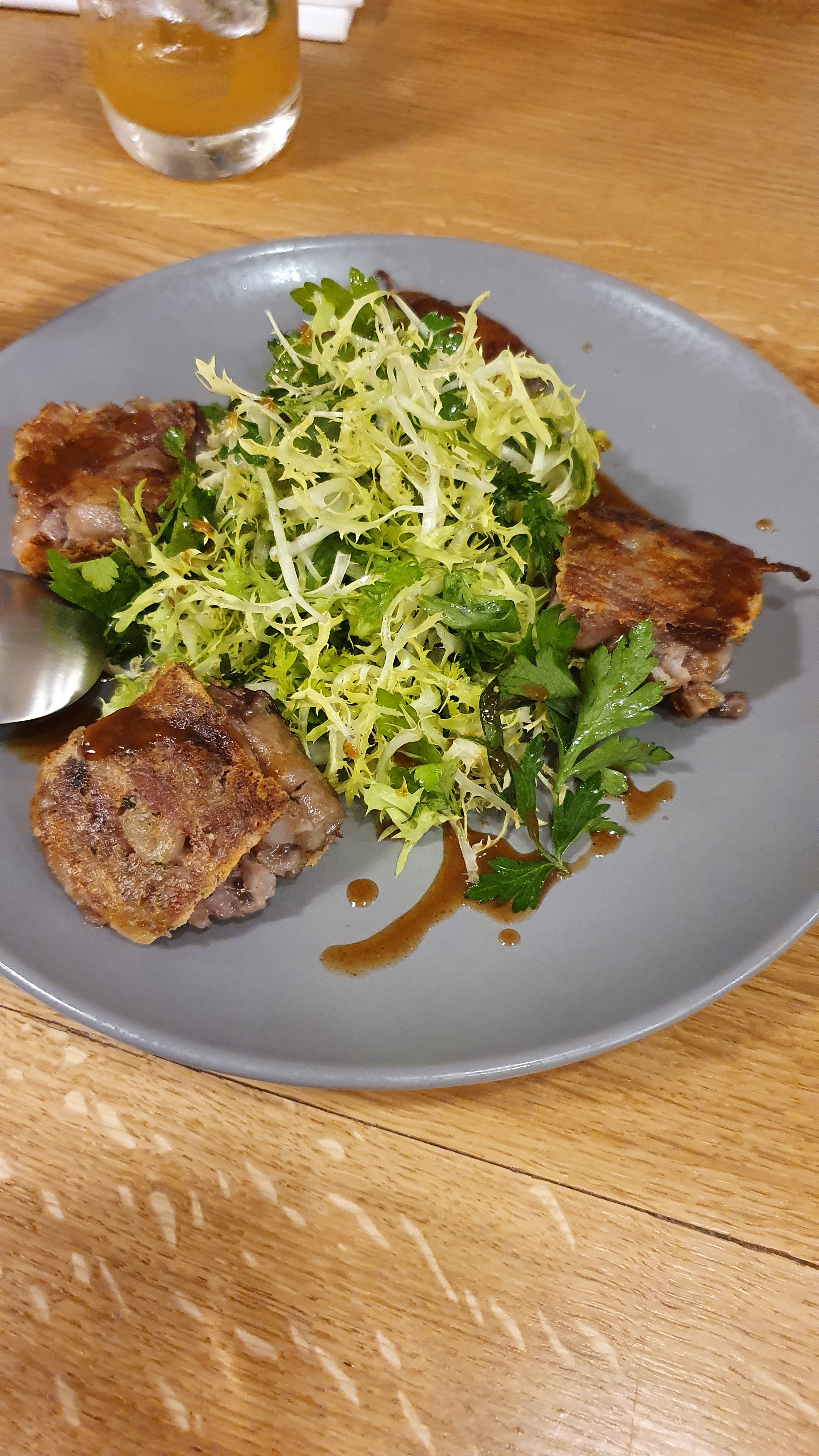 Terrine, jarret d'agneau et vin, le tout très bon.