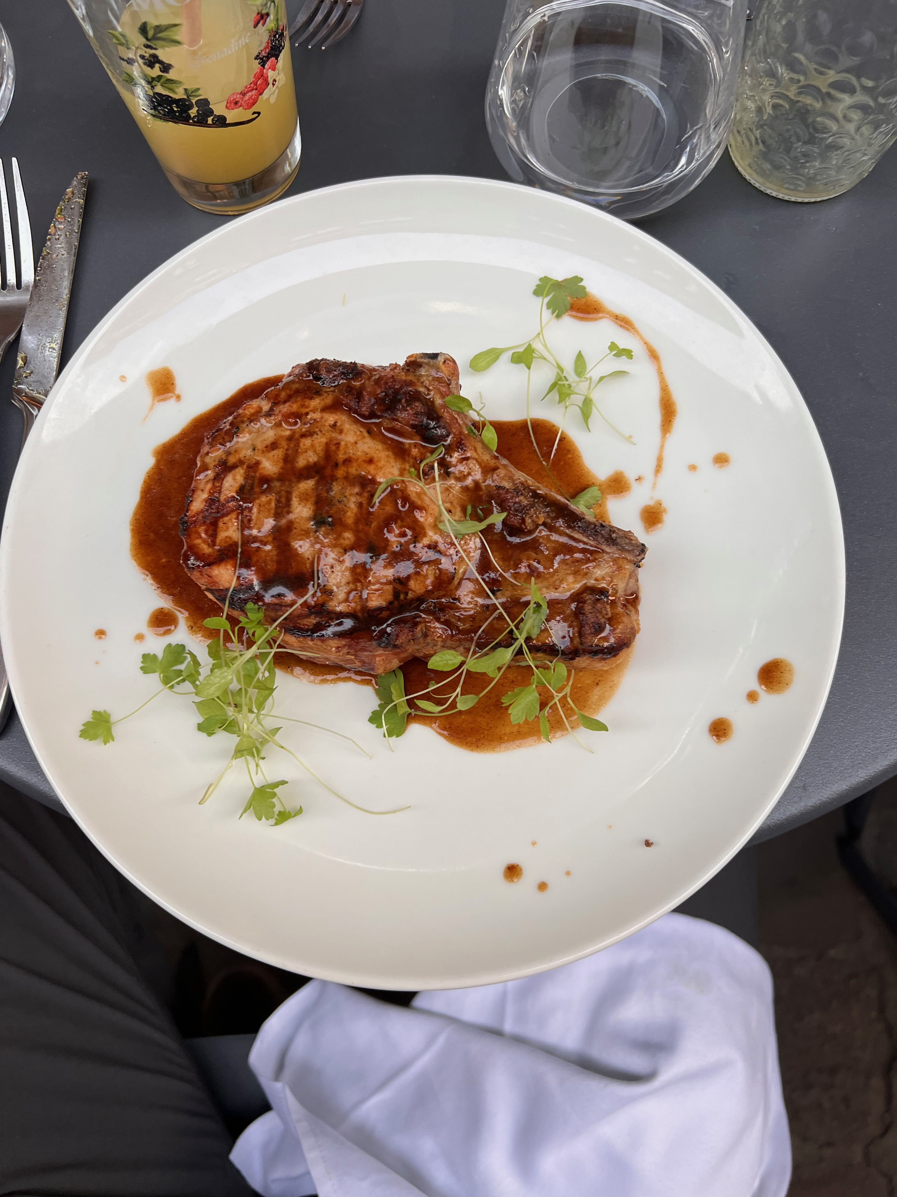 Petit menu avec de bons choix. La côtelette de porc était parfaitement cuite. L'apéritif à la moelle osseuse était incroyable. Excellente sélection de vins.