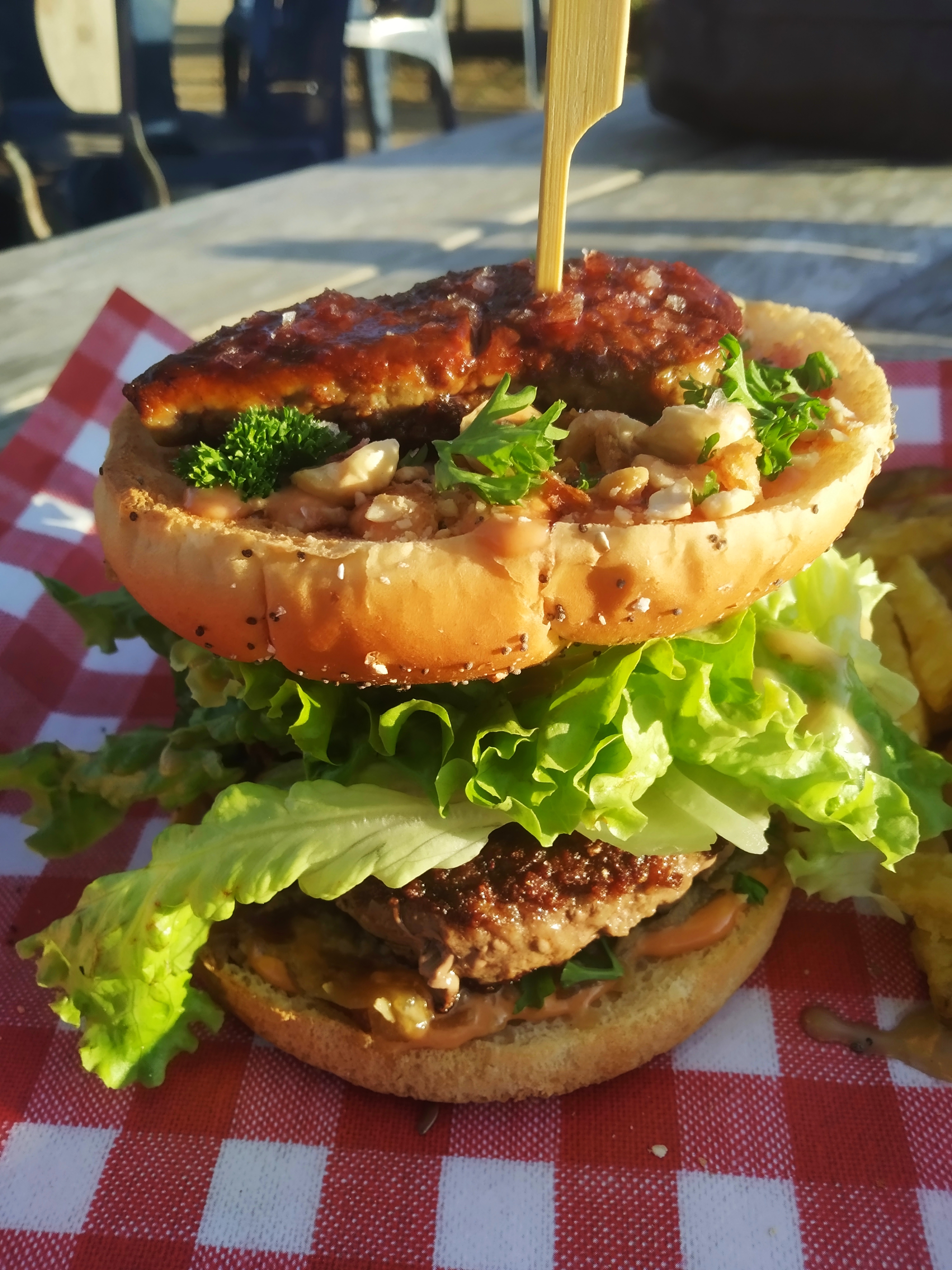 Endroit très agréable, très proche plage et parking Les cheese burgers sont bons avec un steak épais Les frites sont bonnes et les portions très correctes Le jus de fruit frais était très bon (pomme citron et gingembre) Différents jeux disponibles (pétanque etc) et différentes tables (bateau etc ). C’est vrai que le ticket est un peu cher mais, au moins, on ne sent pas arnaqué