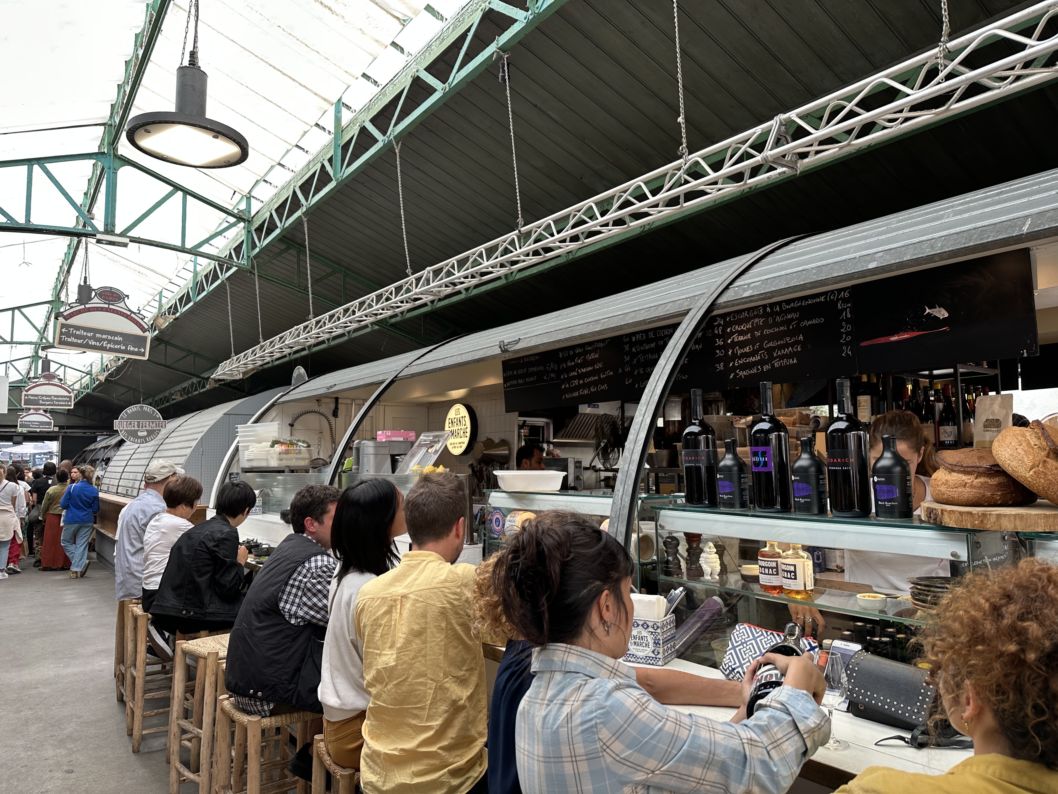Ce restaurant sur une place de marché couverte propose une cuisine et des vins absolument délicieux et un service nonchalant et amical. La nourriture est de haut niveau, vous pouvez partager les plats ou commander les vôtres. L'atmosphère du marché ajoute à l'expérience. Merveilleux 🤩