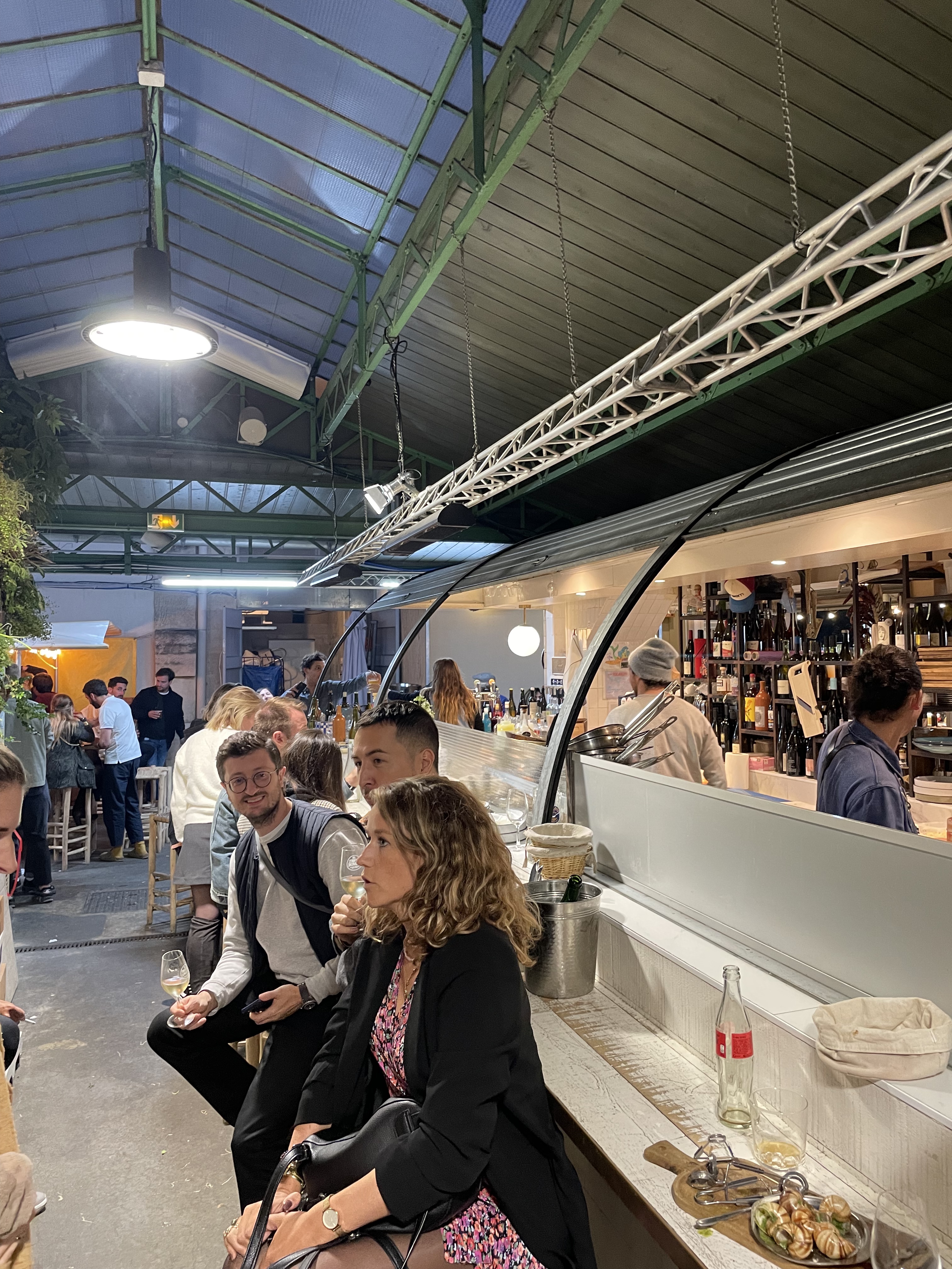 Nous avons passé un merveilleux dîner ici lors de notre visite à Paris en juin. Plats très créatifs, nourriture délicieuse et service exceptionnel. Nous avons partagé un plat de moules, un plat de girolles et une entrée de lotte. Tous étaient excellents, mais la lotte était vraiment fantastique. Ils ont une belle carte de vins naturels et le personnel nous a proposé différentes options à essayer avec nos plats. J'ai tellement aimé les choix de vins que j'essaie de les trouver aux États-Unis depuis notre retour (et je ne suis pas quelqu'un qui recherche généralement du vin naturel). J'ai vu des critiques négatives portant sur le prix, le service et le cadre/ambiance. Pour le service, je ne peux parler que de mon expérience, qui a été merveilleuse. Personnel sympa et drôle mais aussi compétent et très serviable. En termes de prix, la tendance était élevée par rapport aux autres arrêts, mais venant d'une grande zone métropolitaine des États-Unis, cela ne semblait pas fou. Je pensais aussi que c'était certains des plats les plus créatifs que nous avions et que la qualité était excellente. Concernant l'ambiance, il faut s'attendre à un décor extérieur dans un grand marché couvert. Les tabourets sont un peu bancaux et l'espace est un peu étroit, mais cela ne me dérangeait pas. J'ai apprécié l'ambiance et la musique. En termes simples, l'un de nos meilleurs repas à Paris, une expérience sympa, j'ai adoré le vin et j'ai adoré le personnel. J'y retournerais absolument.