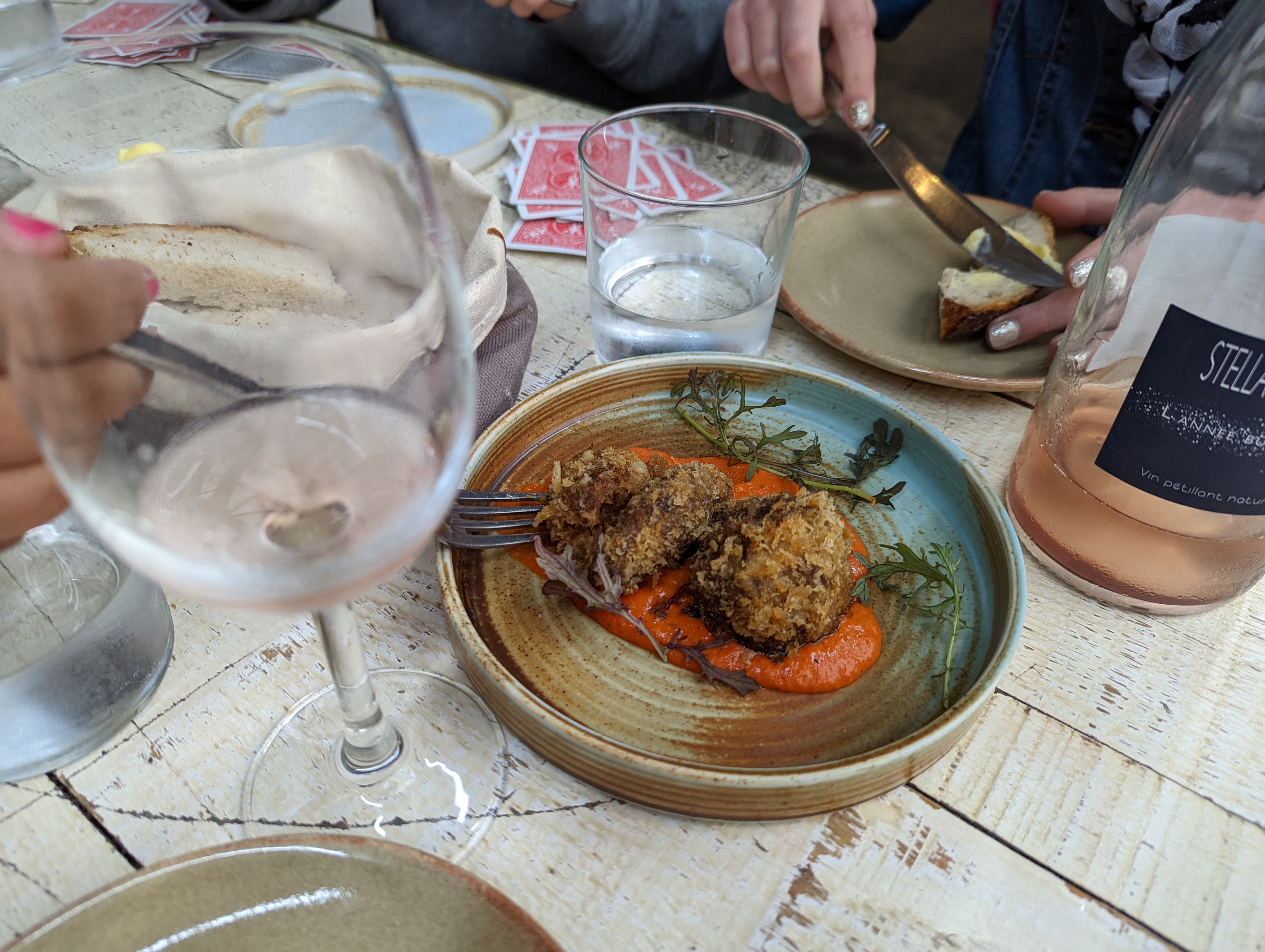 Instagram et les touristes ont eu l’âme de cet endroit … ok tu paye sûrement cher ton loyer parceque tu es dans le marais … mais à 18euros la terrine de cochon que tu ne fais pas toi même ou 8eu LA croquettes arrêtez de vous farcir la tête du monde. Je n’ai même pas regardez la carte des vin … pour avoir un nature du Languedoc à 12eu le verre non merci. Je ne m’étendrais pas sur le service abominable … vous faites honte à la profession.