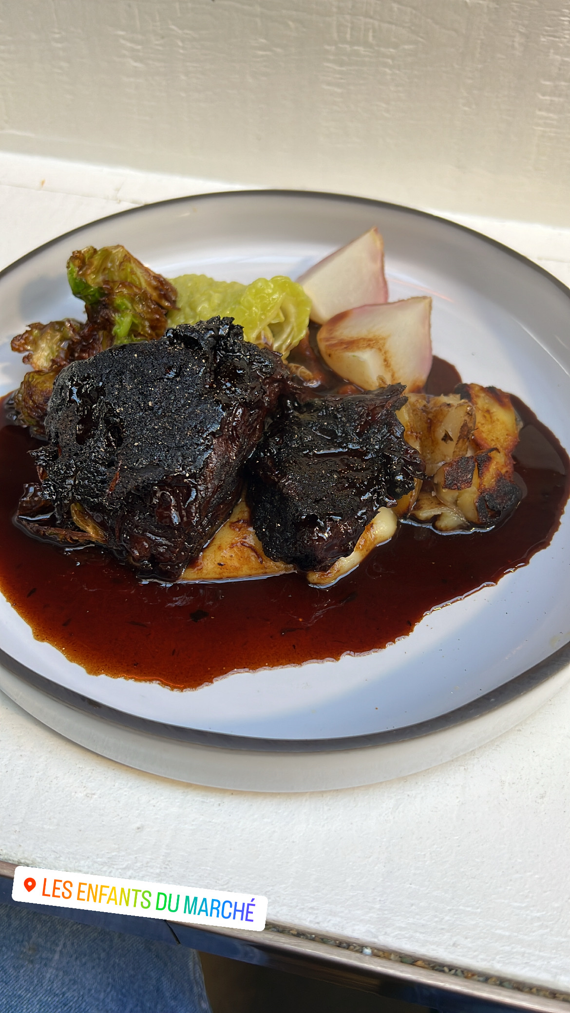 Nous allons aux enfants du marché depuis son ouverture, une découverte par hasard un jour d’automne. Nous avons vu ce lieu se créer, grandir et gagner en notoriété. En fait, tout est super bon. Les produits sélectionnés sont dingues. Nous avons toujours adorés les plats commandés. Certains diront que pour manger dehors sur un tabouret c’est un peu abusé… mais cela fait parti du concept et je ne peux pas imaginer les enfants du marché dans un lieu conventionnel. Ça va avec. Donc faites vous plaisir. En plein hiver, prenez un petit plaid et un bon vin vivant qui réchauffe. Mention spéciale au super taulier Mickael qui nous a toujours réservé le meilleur accueil. En plus, ça tombe bien, certains de ses produits sont sourcés chez des potes… donc nous sommes ici un peu en famille. Pour le dernier récent déjeuner : crudo dorade et ventreche, porc noir à couper le souffle, mousse au chocolat avec réduction de porto… encore un régal !