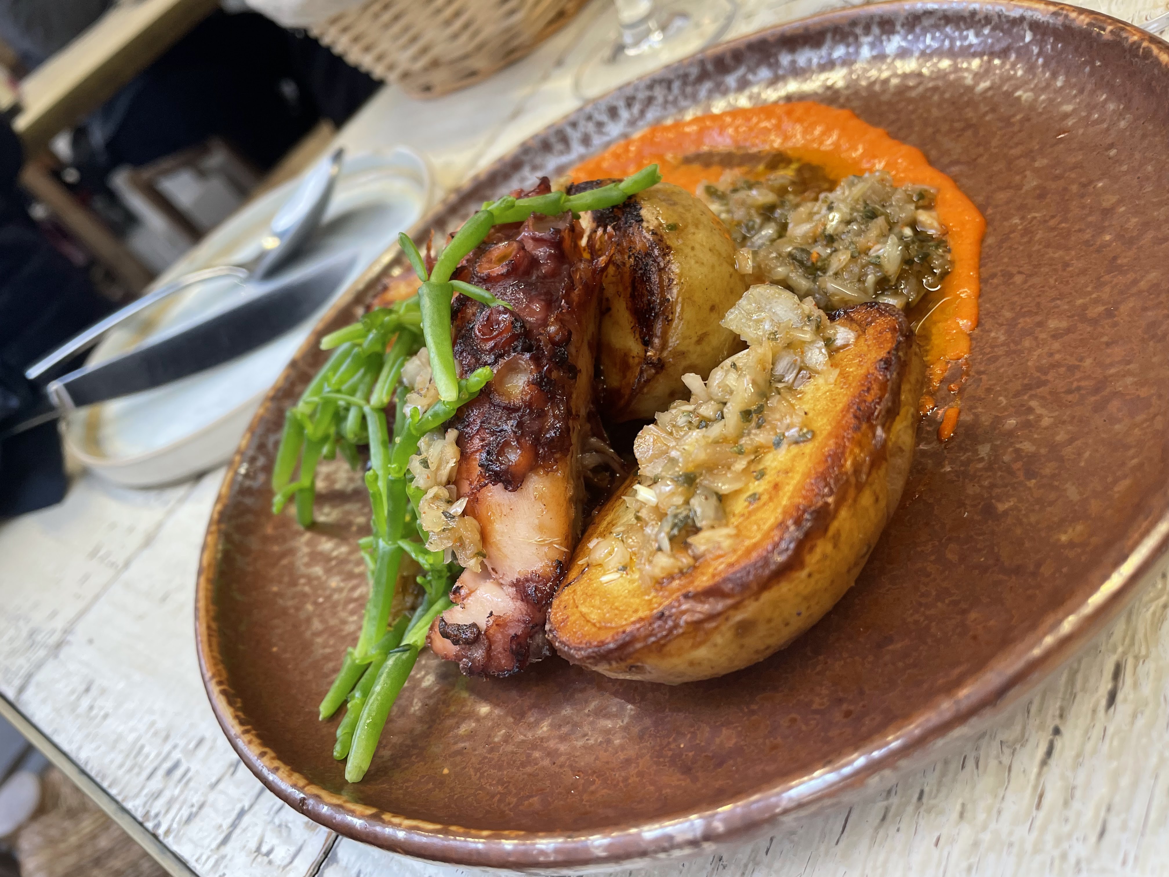 Mon dieu, la nourriture ici était spectaculaire. Nous avons eu les pétoncles et le poulpe grillé entre deux et ils étaient tout simplement incroyables. Probablement l'un des meilleurs repas que j'ai jamais mangé, sans blague. Cher mais ça vaut vraiment le coup car c'est la qualité d'un restaurant, sinon mieux !
