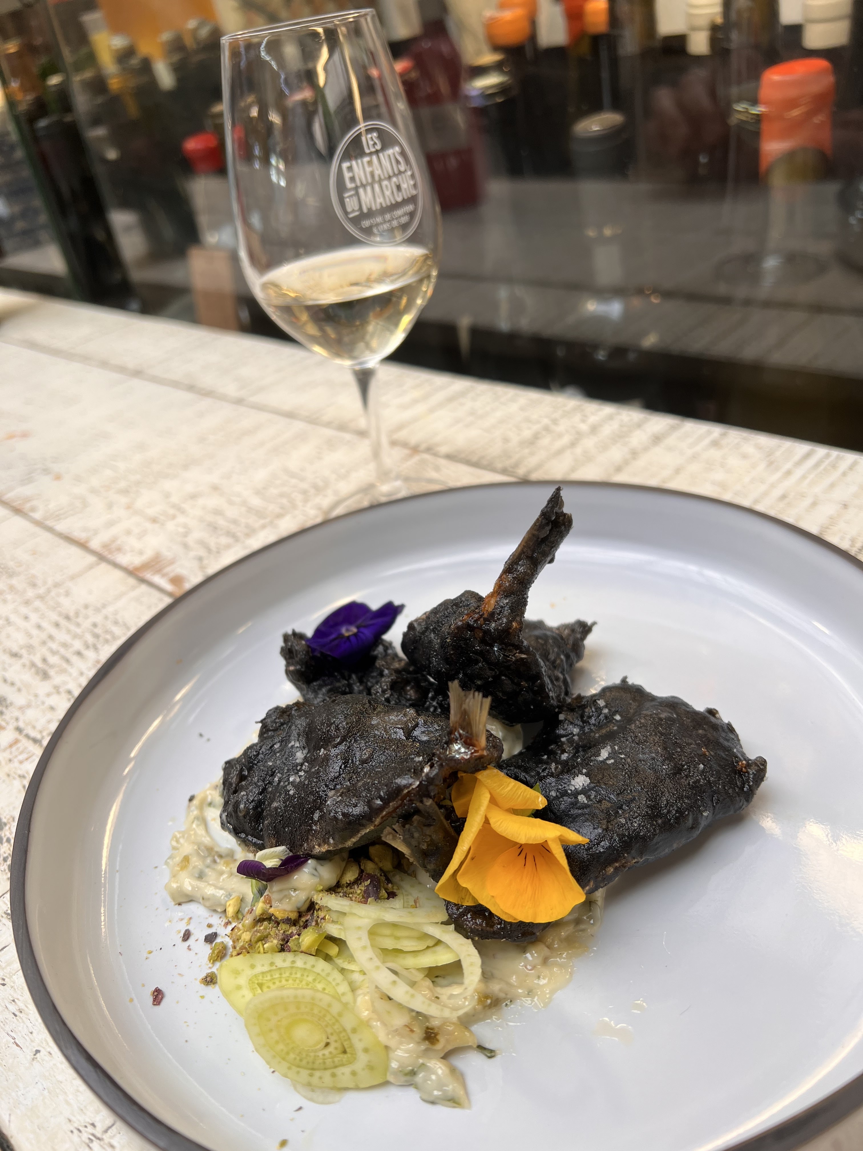 Nous sommes tombés sur ce joyau après avoir partagé un incroyable sandwich chez @chezalainmiammiam. Les fruits de mer du marché avaient retenu notre attention. Les Enfants du Marché ont eu les pétoncles les plus étonnants que j’ai mangé depuis des années avec un petit côté de fouet céleri-rave-gingembre. Cela a si bien commencé que nous avons commandé du poulpe grillé, des huîtres fraîches de Bretagne et du foie gras. Le vin aussi bien sûr. Et un gâteau au chocolat fondu. Pas mal pour un après-midi froid et pluvieux.