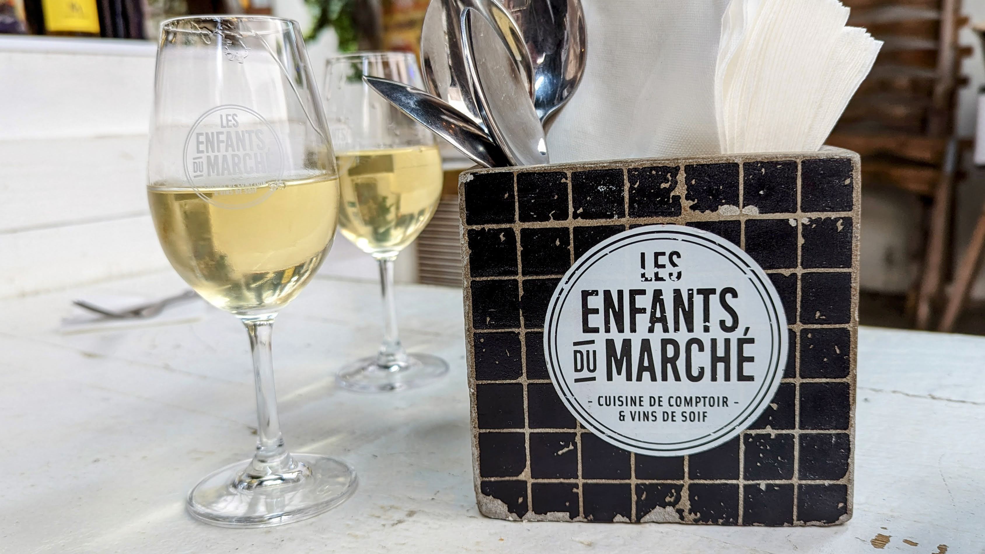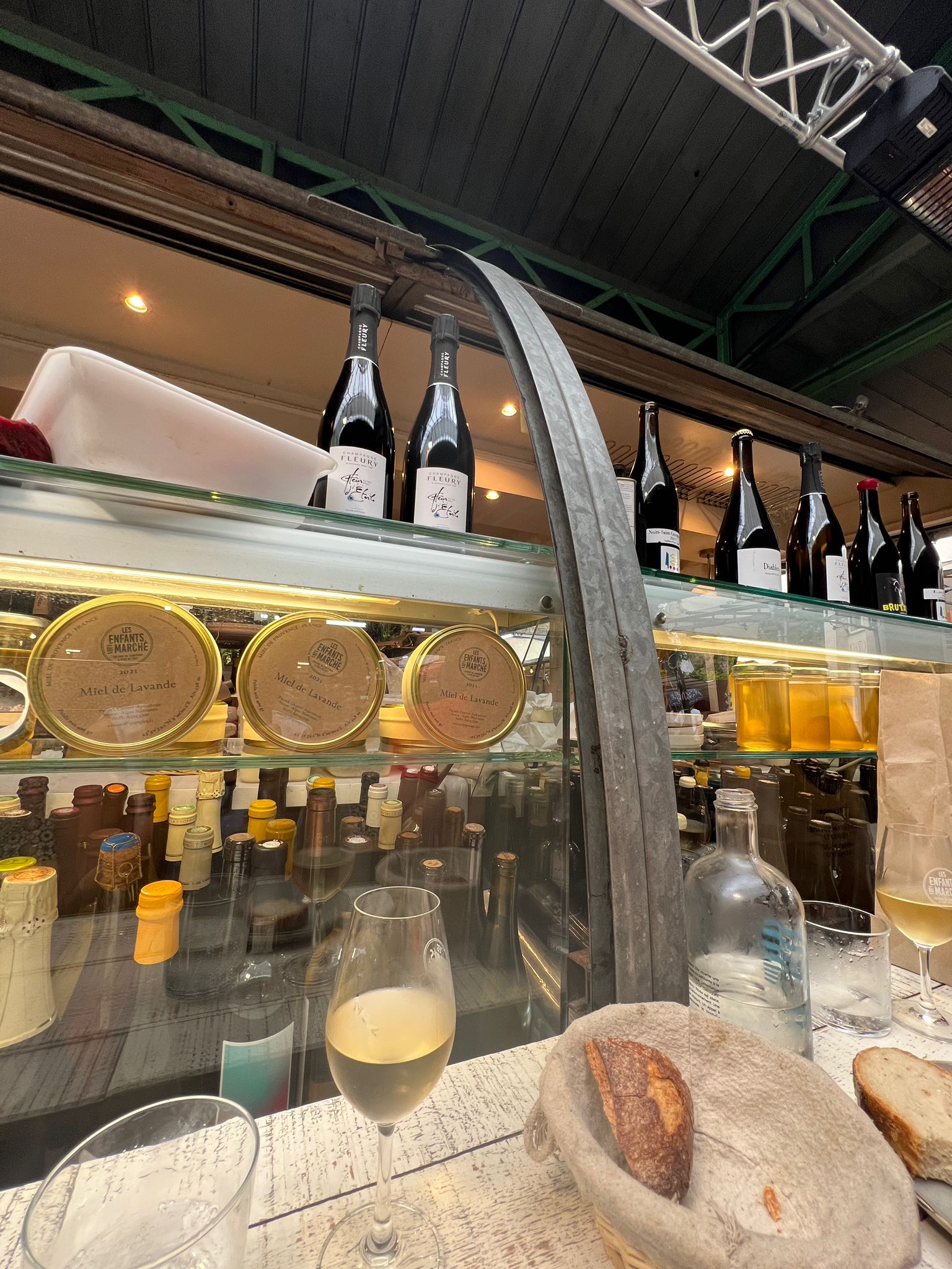 En passage à Paris à la fin août, nous nous sommes présentés au comptoir des Enfants du marché sans grandes attentes, mais nous avons eu droit à un repas exceptionnel! Presque problématique, car la barre a été si haute que tous les autres restaurants suivants (même des étoilés) nous ont déçus après ce repas immense. Ici les plats sont au coeur de l'expérience; si vous ne pouvez pas supporter d'être assis sur un tabouret et d'être littéralement attablé à un comptoir, si les ambiances à la bonne convivialité et sans prétention ne sont pas votre fort, ce restaurant n'est pas pour vous! Mais si vous venez pour passer un bon moment et pour bien manger, accourez à cet endroit! Oui, RUN don't walk!. Tous les plats que nous avons essayé étaient magiquement savoureux, des associations d'aliments auxquelles nous n'aurions pas pensé et qui faisaient pleinement sens au palais. C'était régressif et délicieusement bon! Et une excellente sélection de vins naturels et de macérations servie au verre. Point bonus au serveur qui a assurer un service courtois et amical même s'il avait un peu de difficulté avec notre accent québécois. Vraiment un must comme restaurant!