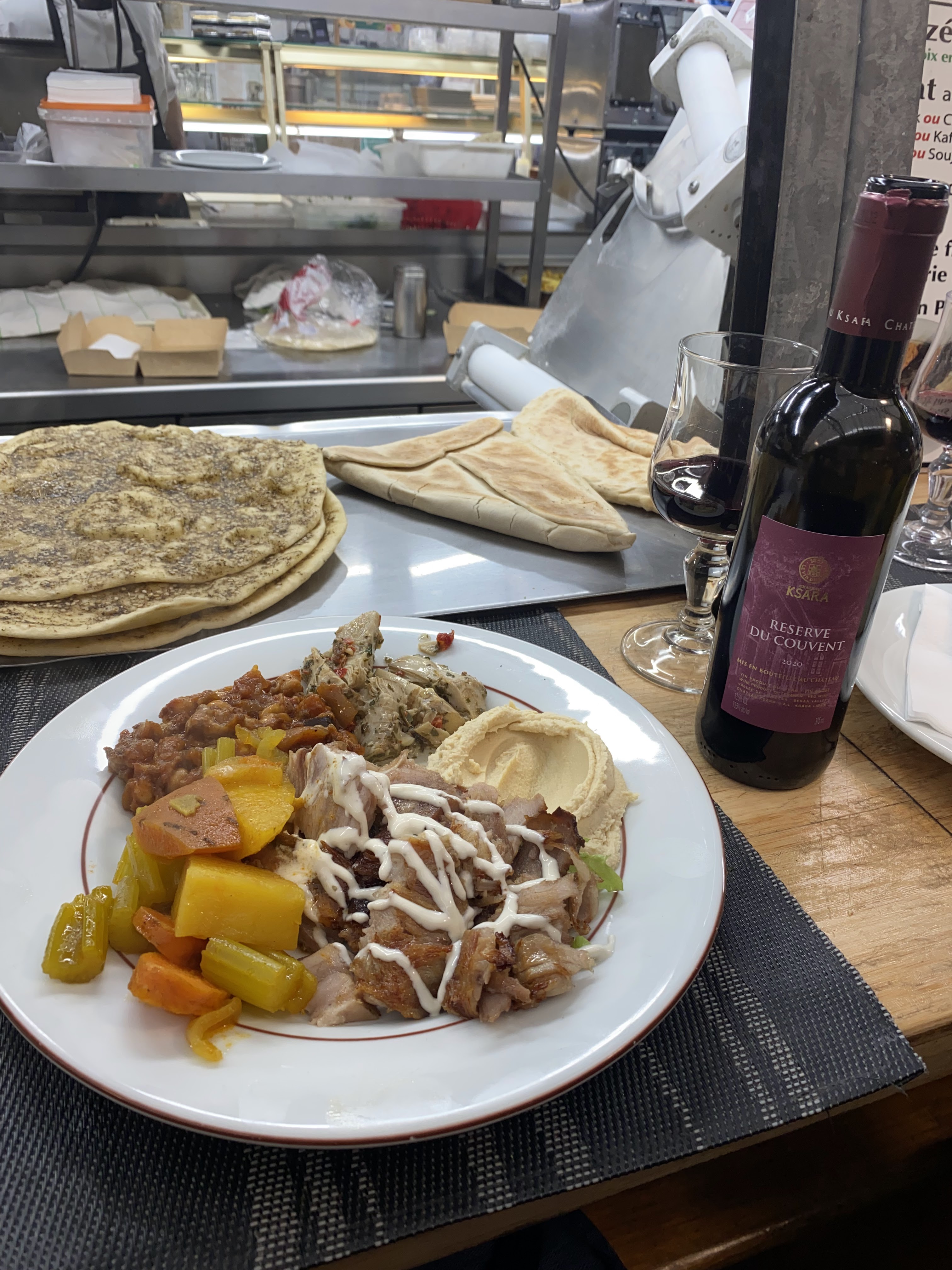 Aire de restauration bondée mais très agréable avec beaucoup de choix. Nous avons choisi les Libanais et ils étaient très sympathiques et servaient de bons repas. Nous avons choisi le vin rouge libanais qui était très bon. Le propriétaire est un homme sympathique et poli